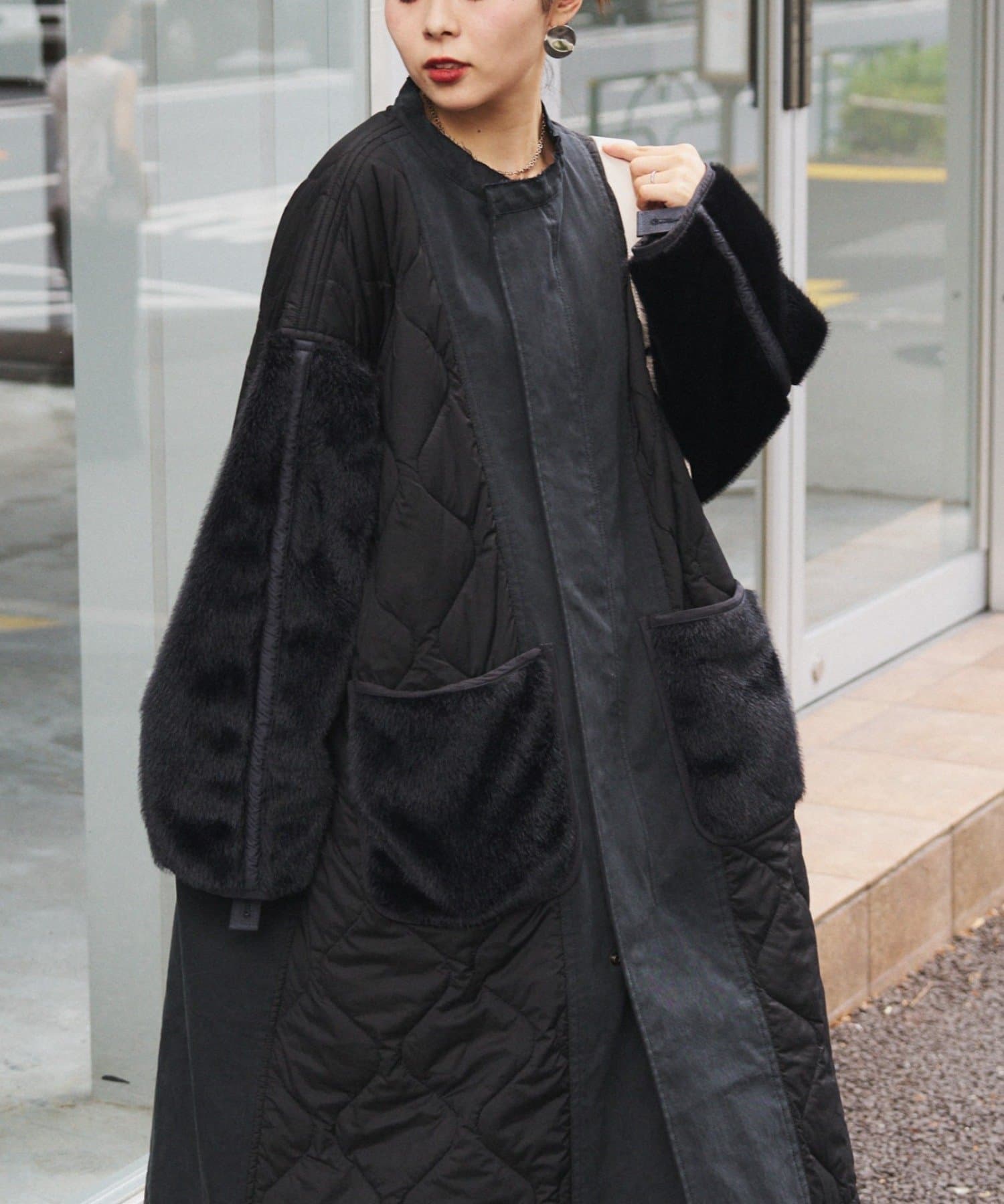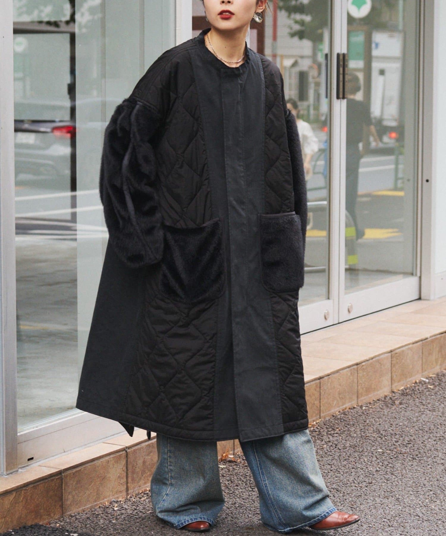 異素材MIXキルティングコート。街で差がつく、個性をまとう一着