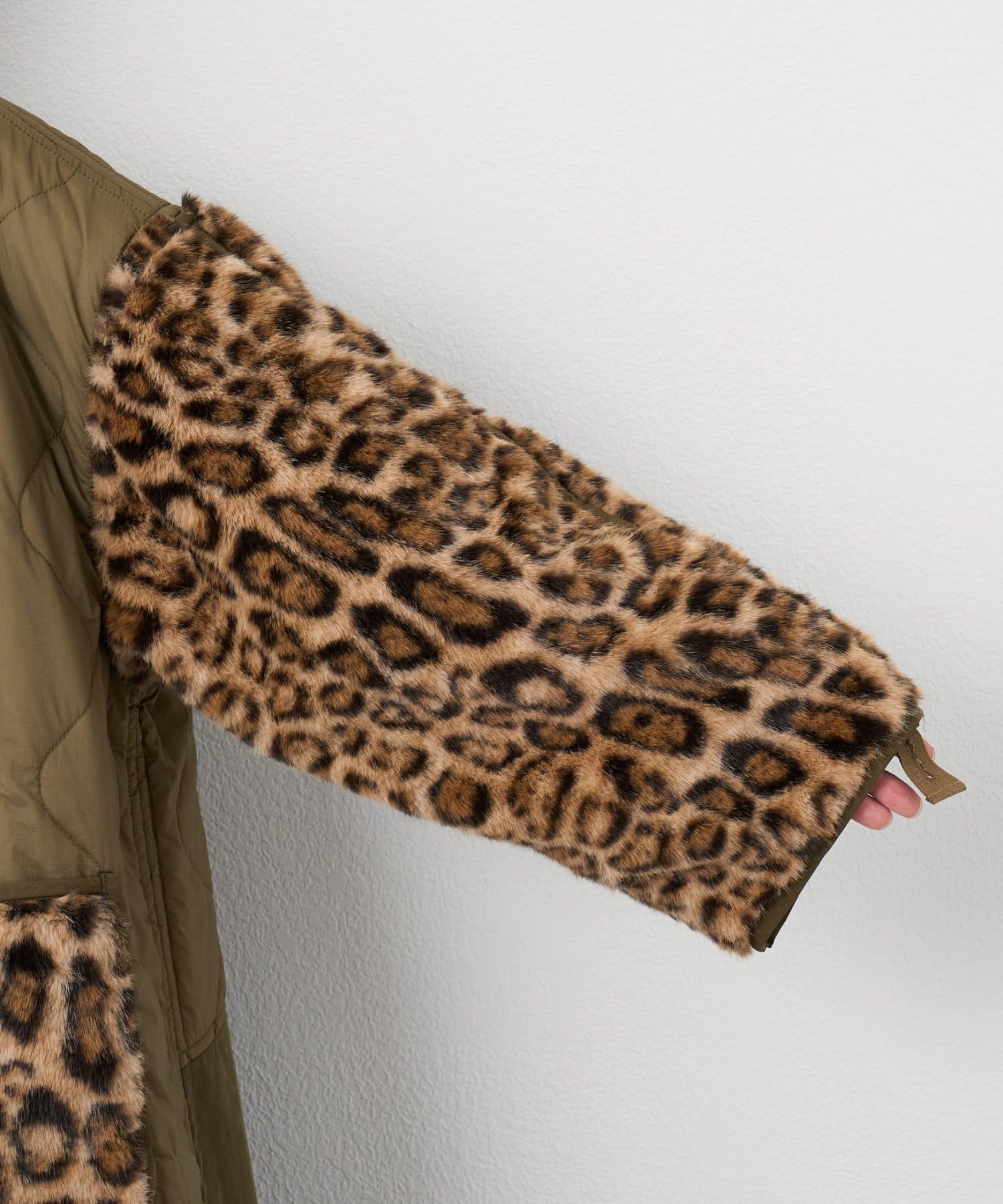 フロント部分の配色と、レオパード柄のポケット&スリーブが、他にはない個性を演出します。