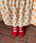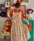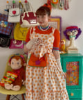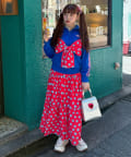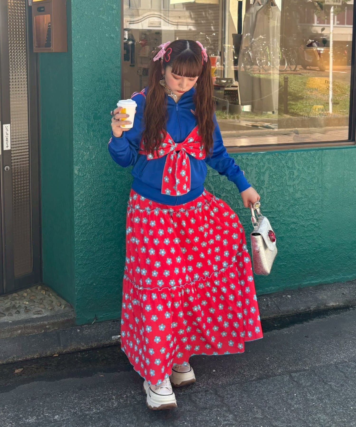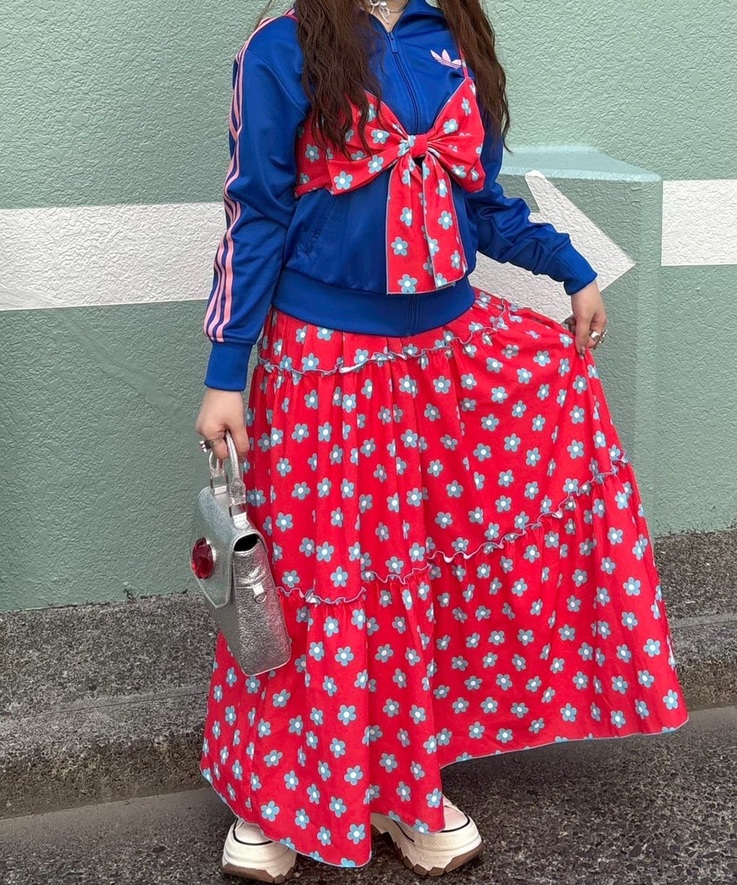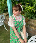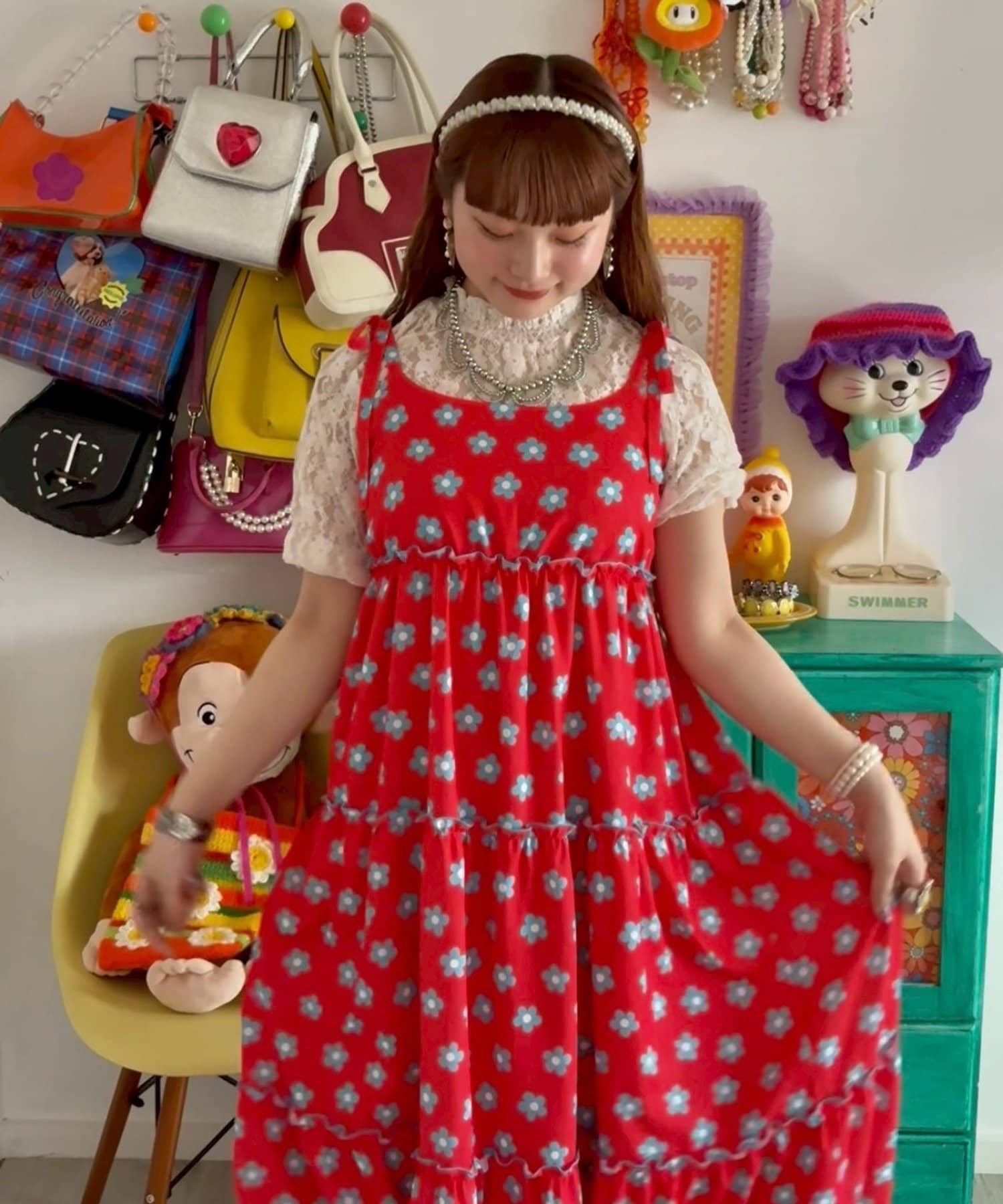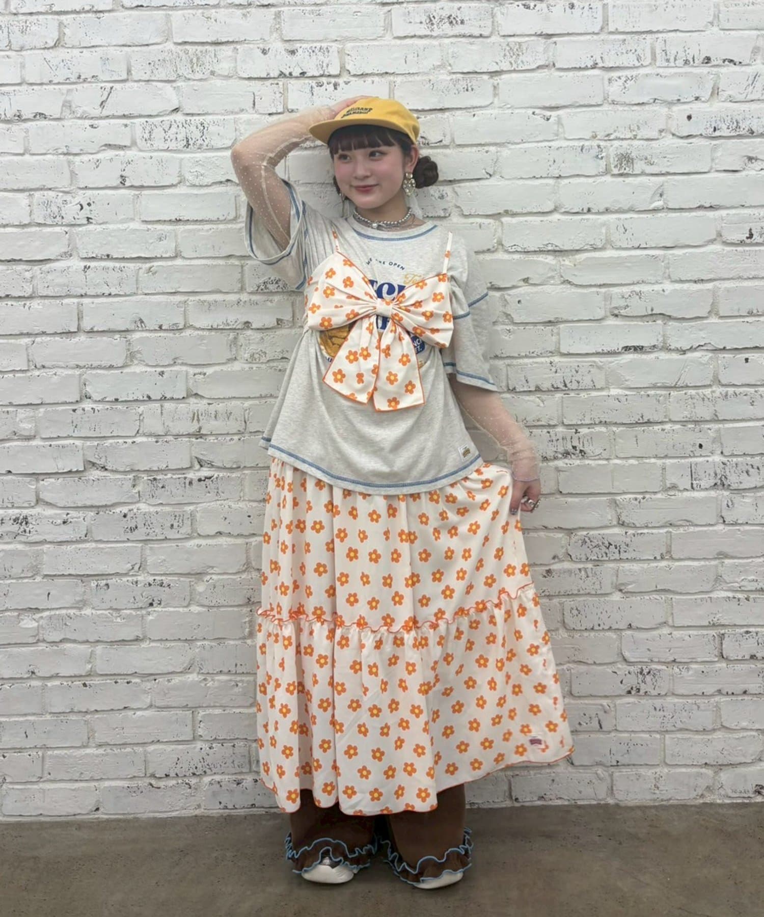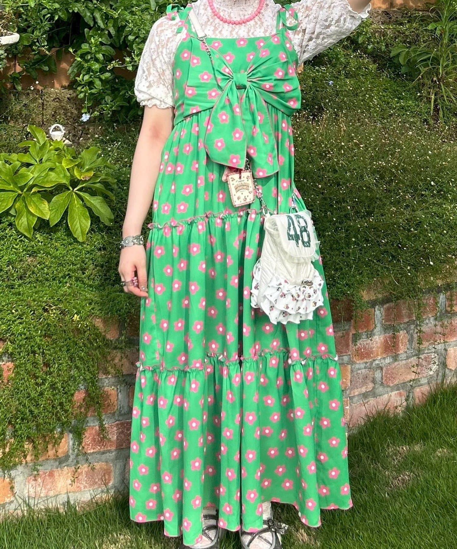 レトロポップな花柄に胸元の大きなリボンがポイントに!
