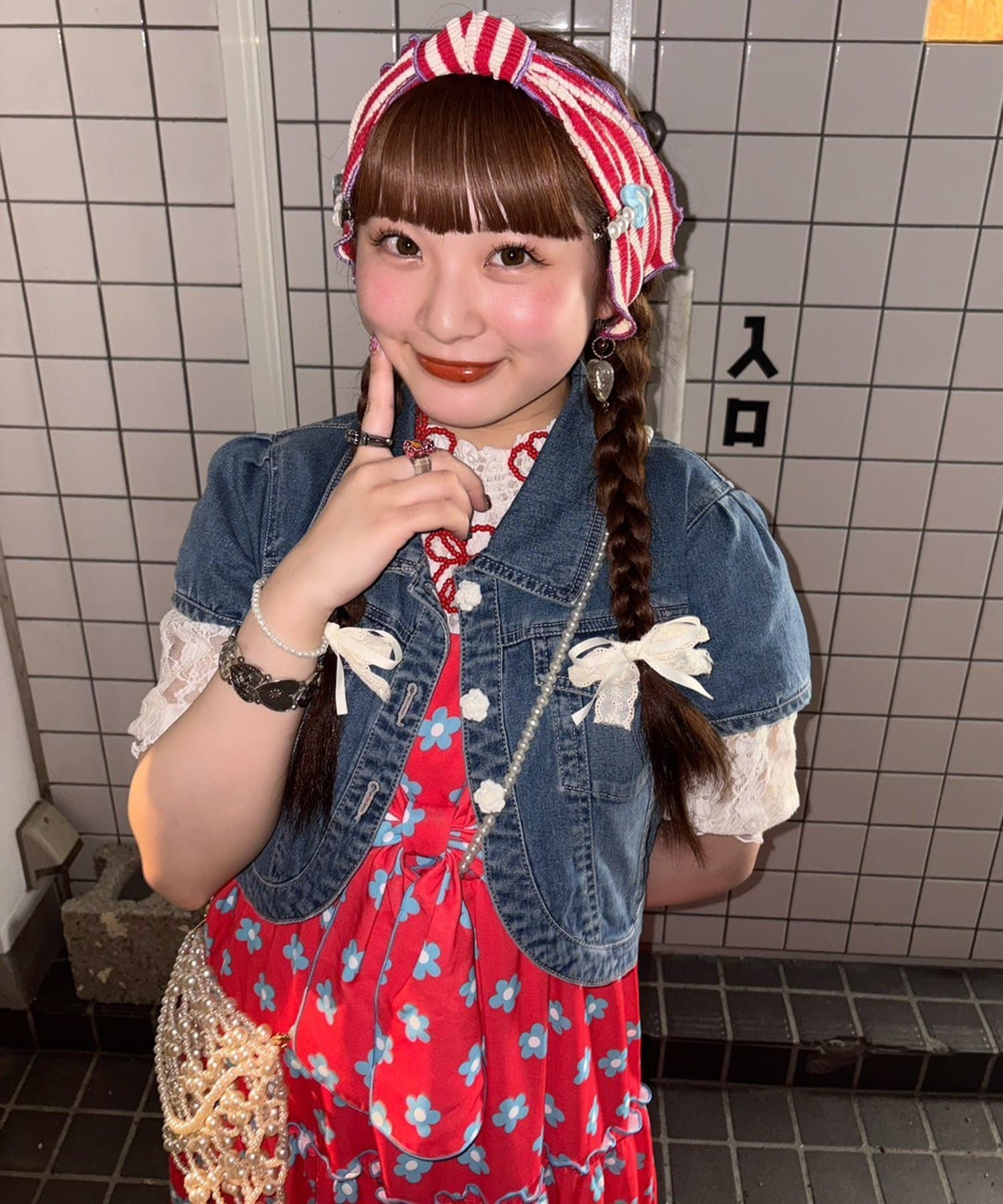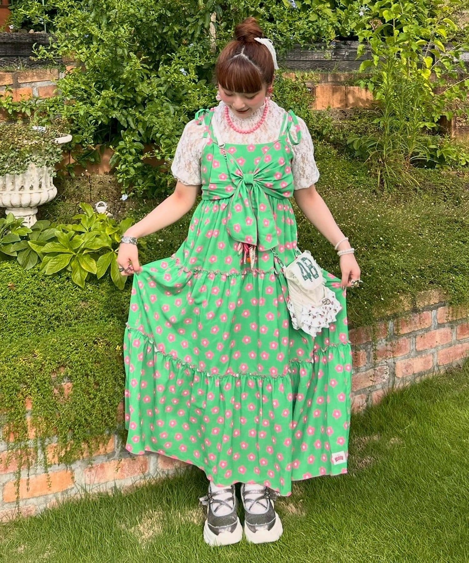 胸元のリボンはビスチェになっているので、ワンピースと別々に着こなしたり、
