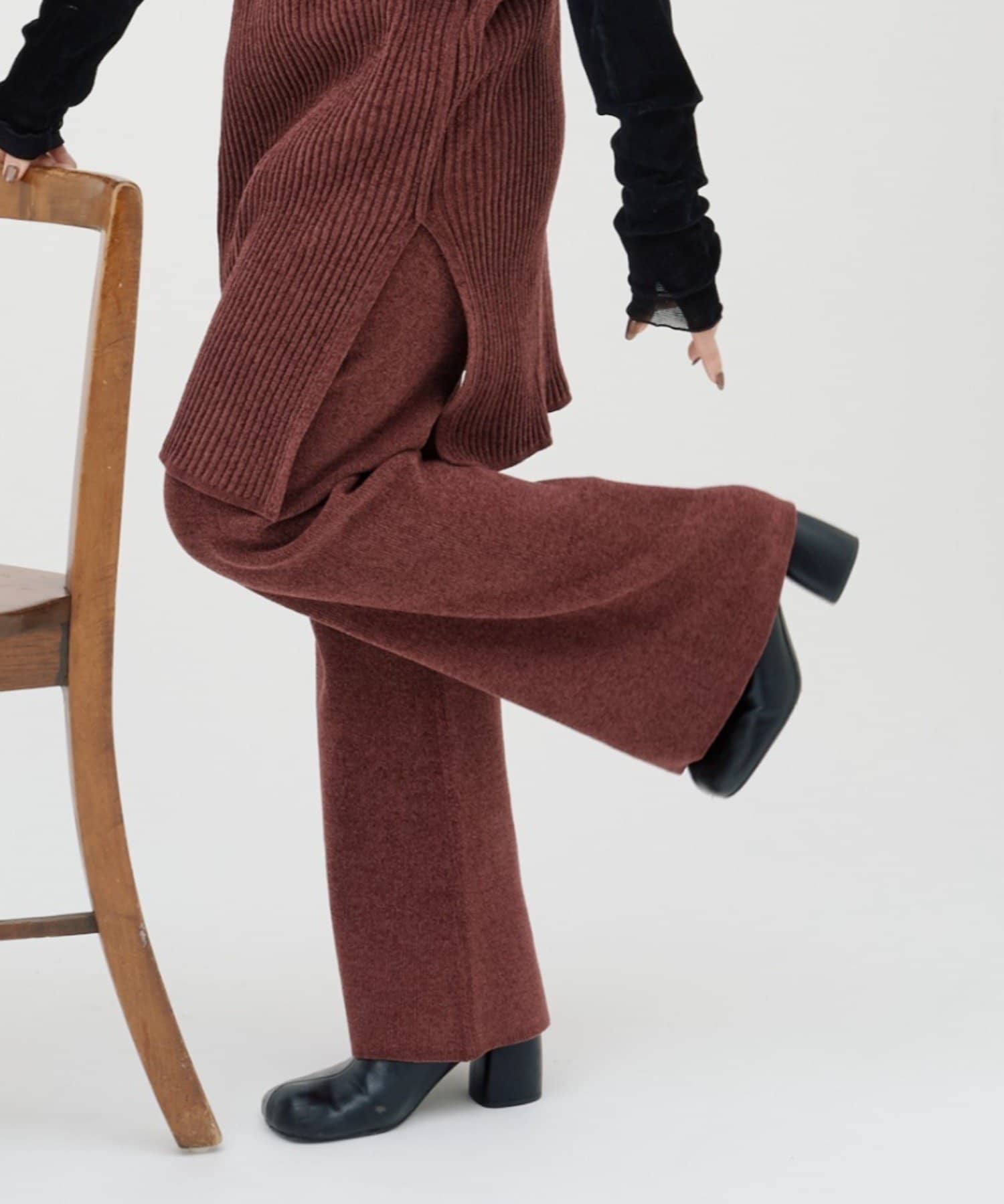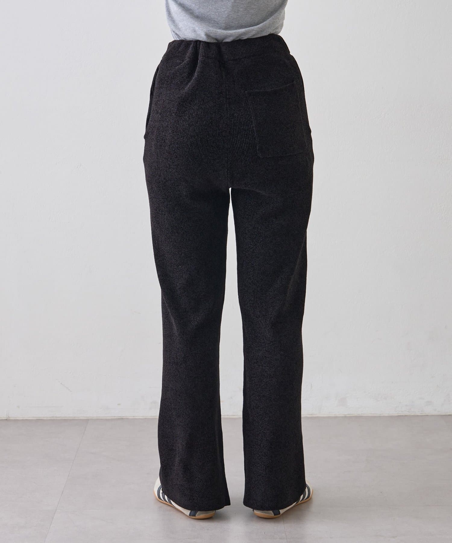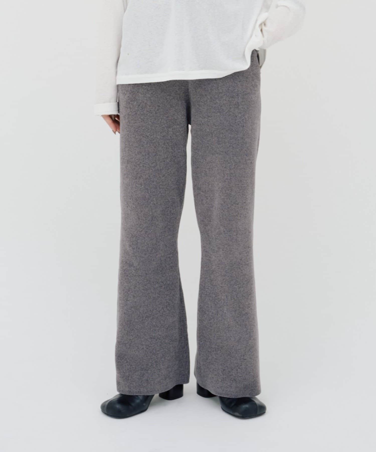 暖かみのあるニット素材を使用した、リラックス感漂うフレアパンツ。