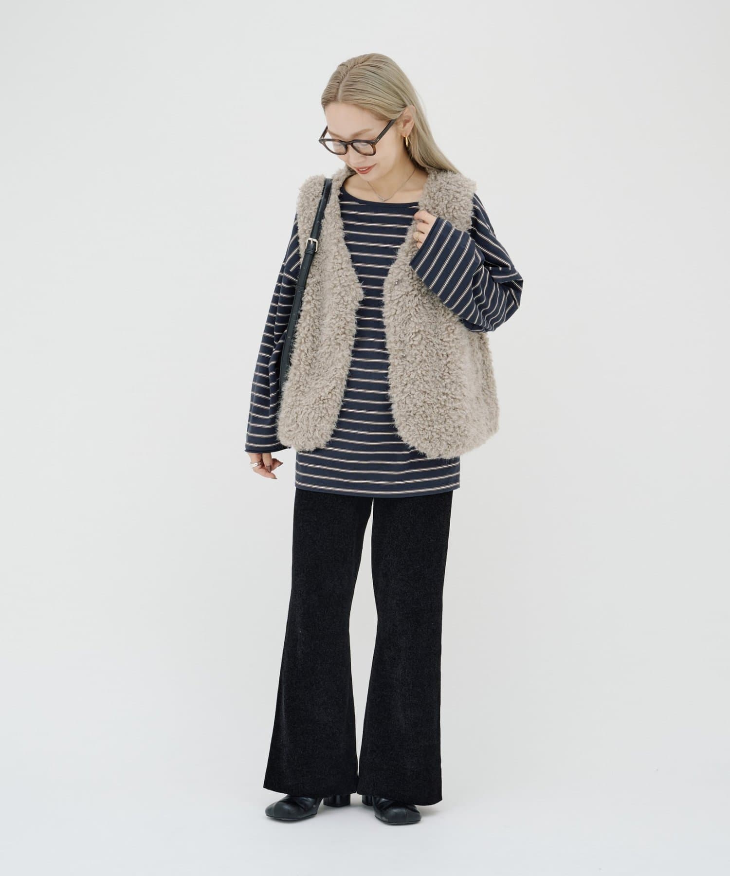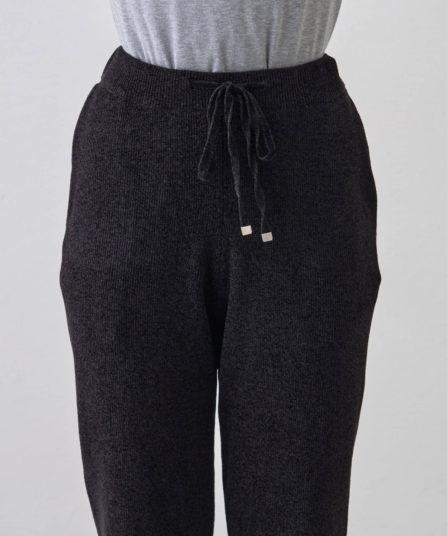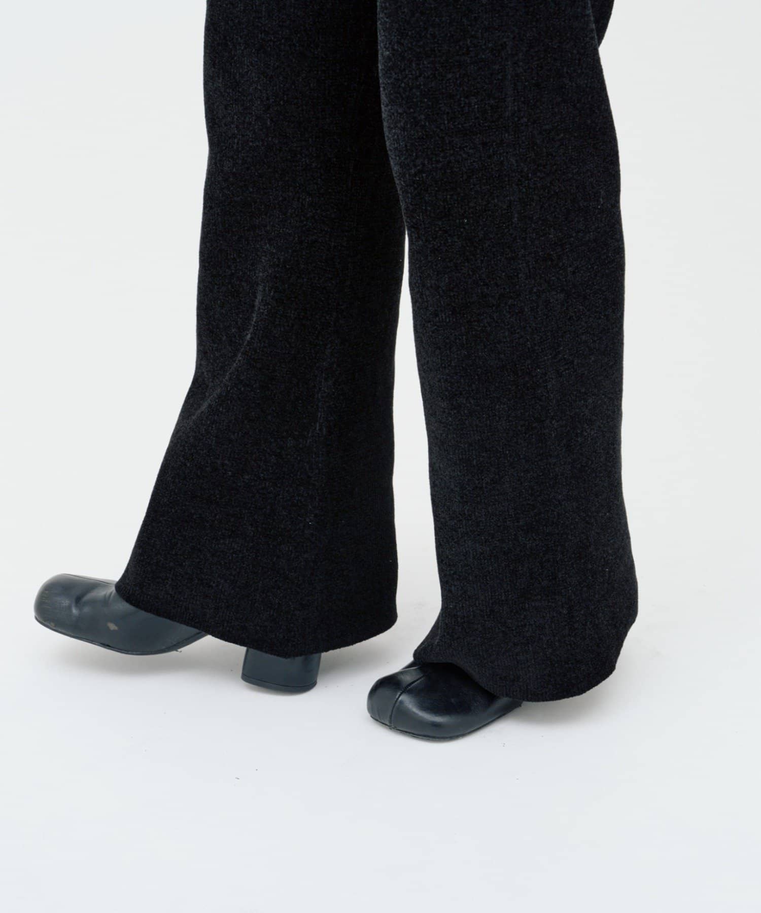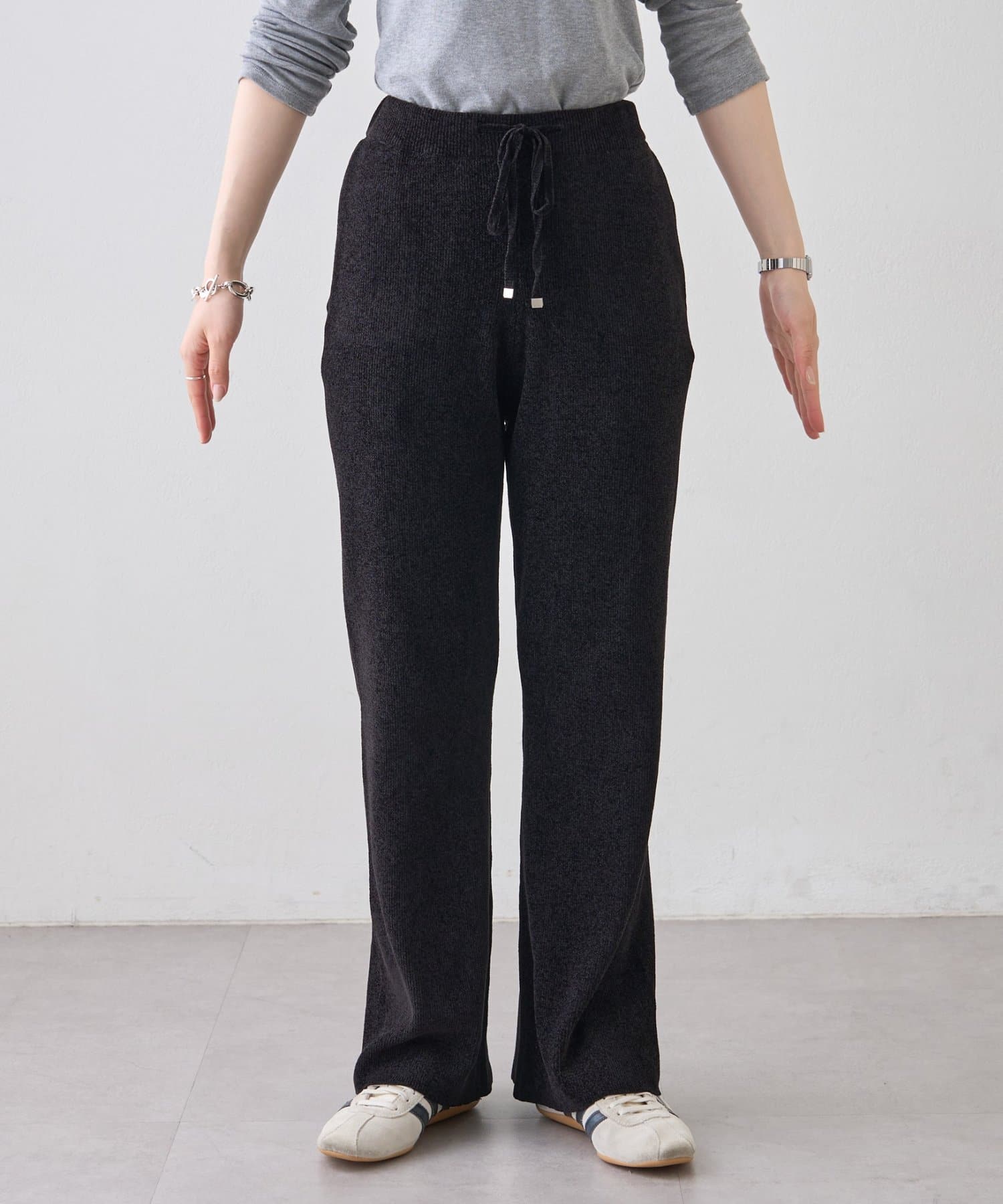 暖かみのあるニット素材を使用した、リラックス感漂うフレアパンツ。