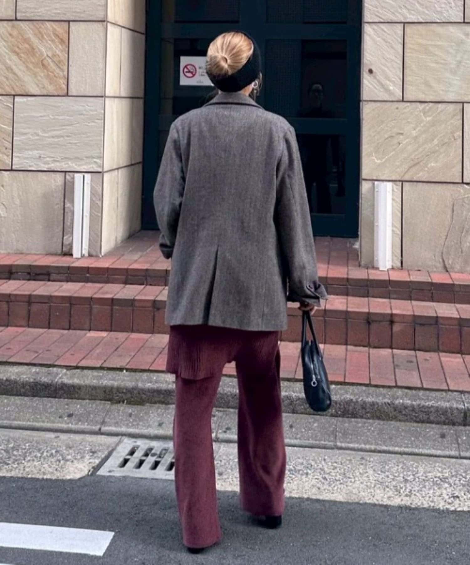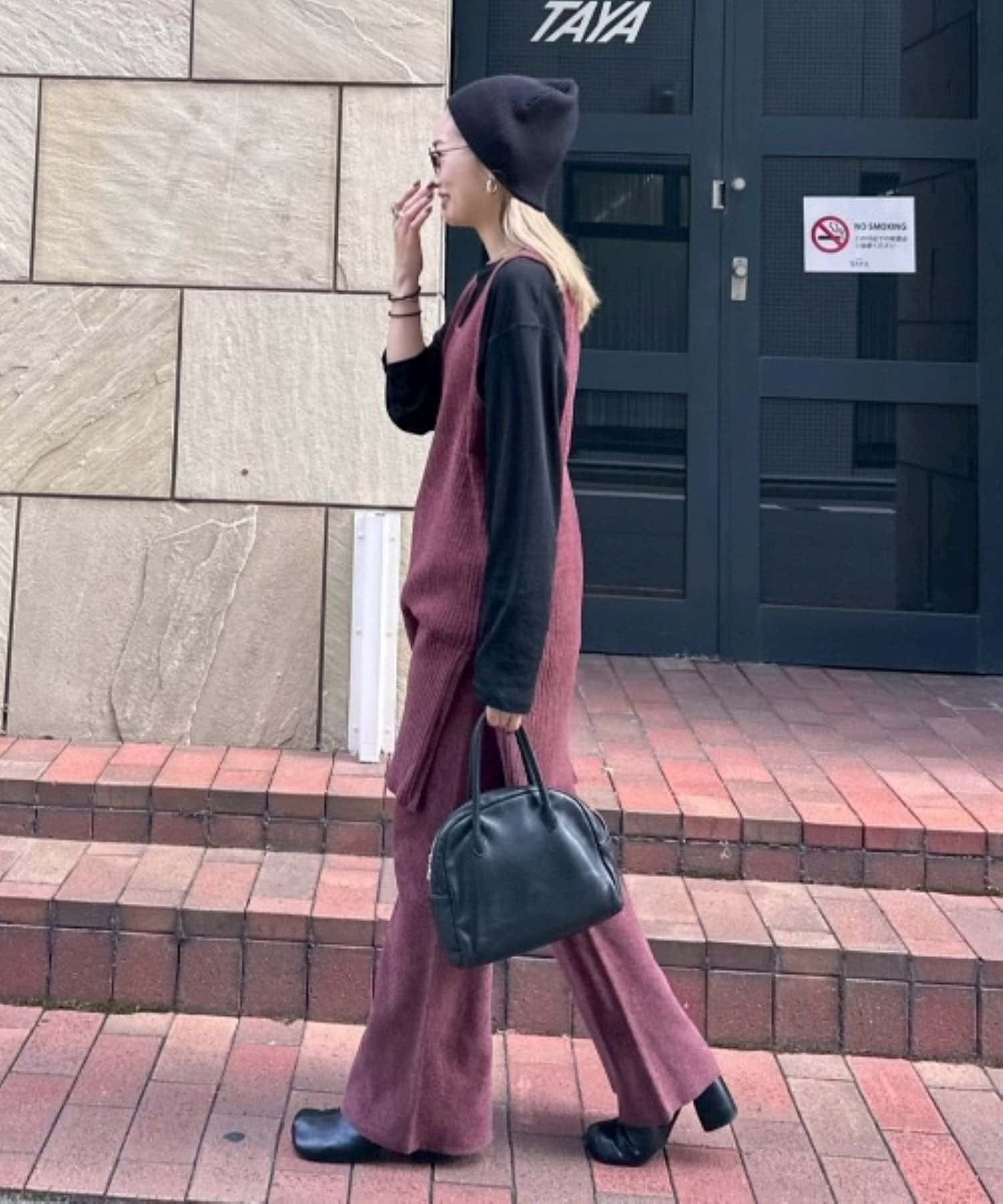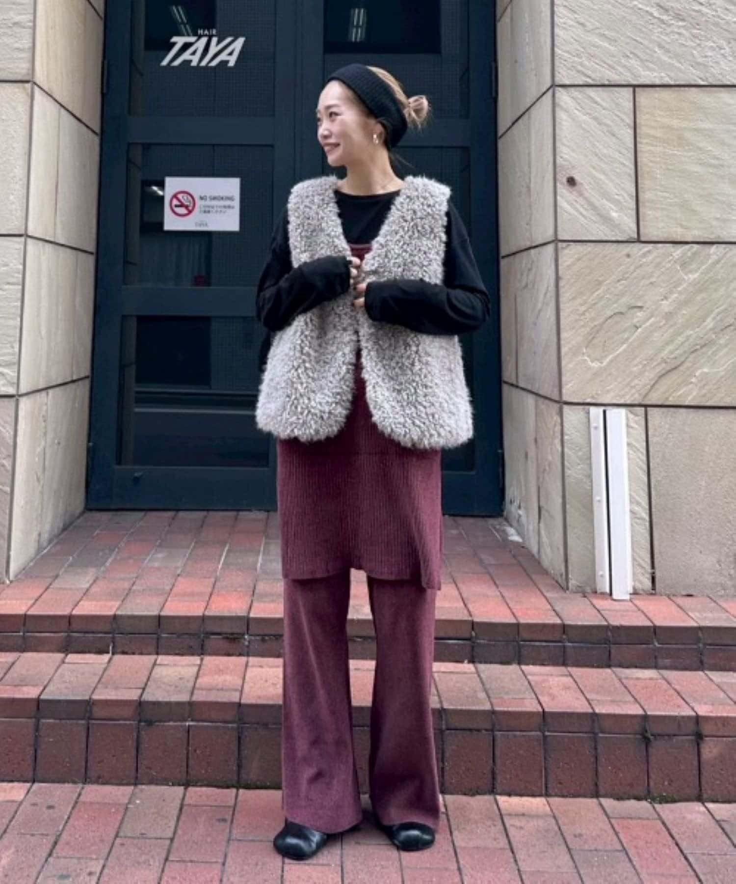 同素材のニットチュニックとのセットアップスタイルもお勧めです。