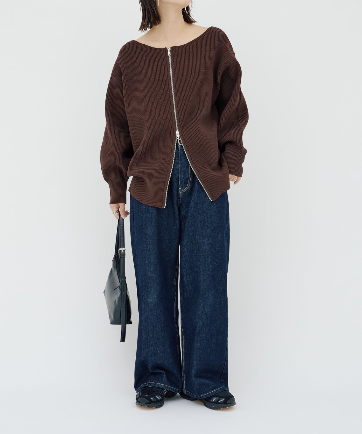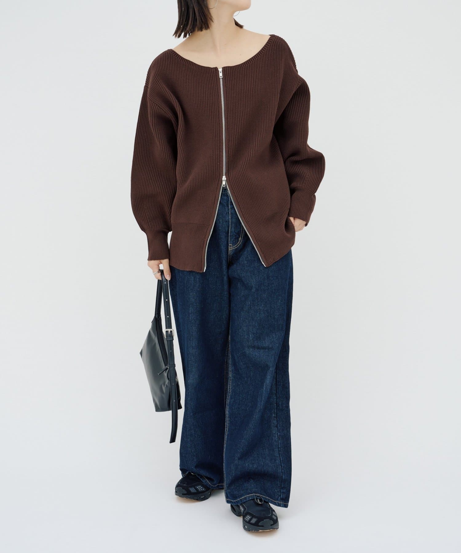 【パルクロ限定・yumi企画】華奢見え女っぽ/マルチウェイダブルジップニット