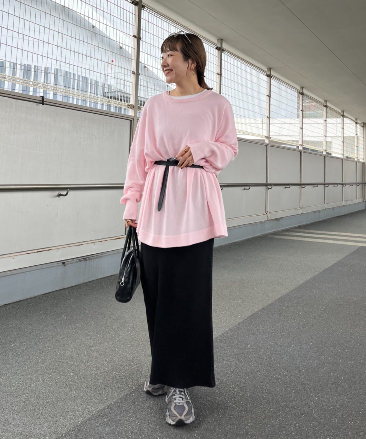 身体のラインを拾わず、ゆるっと着られるのにスタイルアップ効果も期待できます。