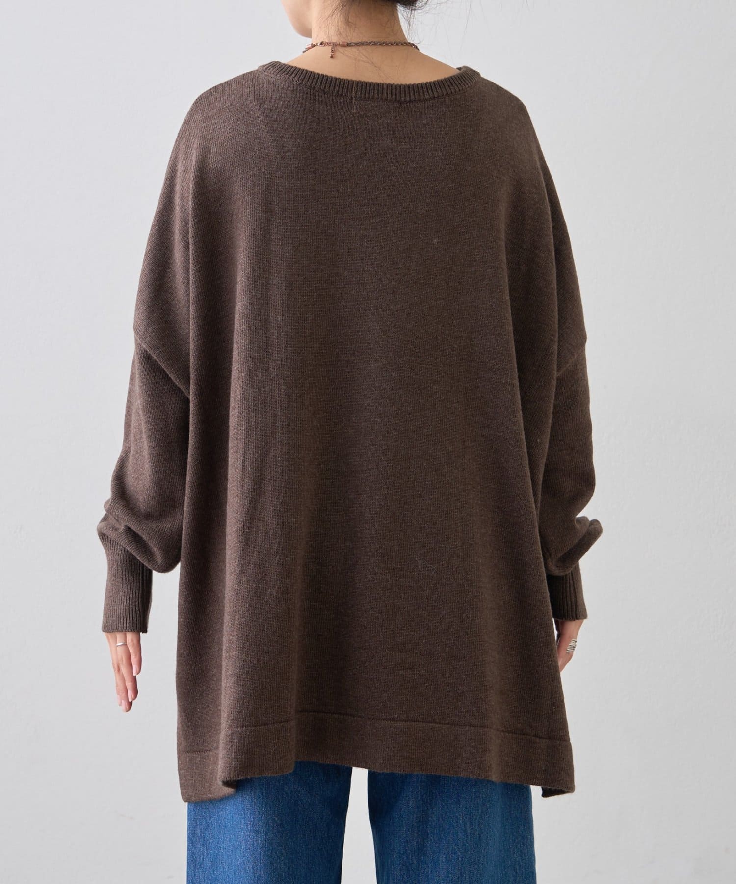 【てら企画】おしゃれに体型カバー◎ウール混オーバニットチュニック