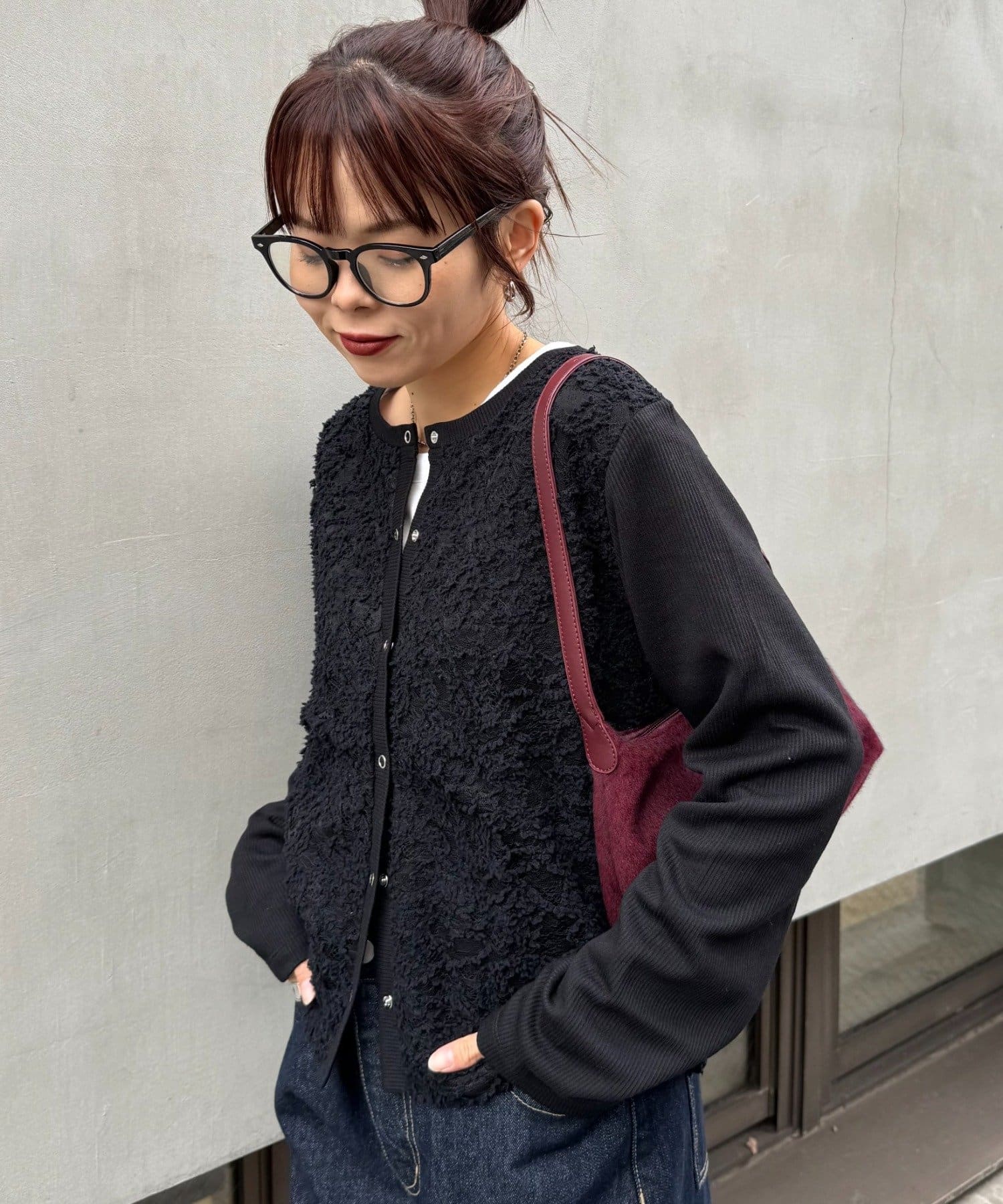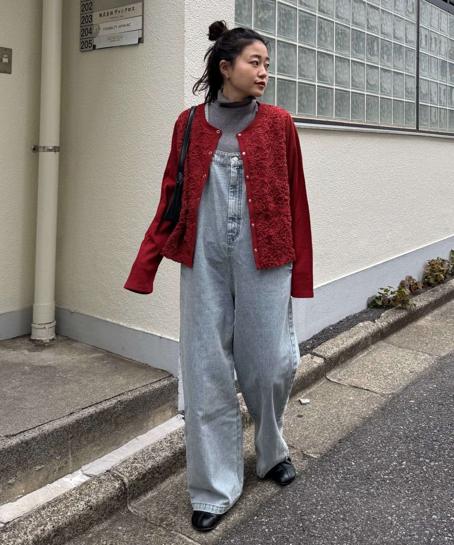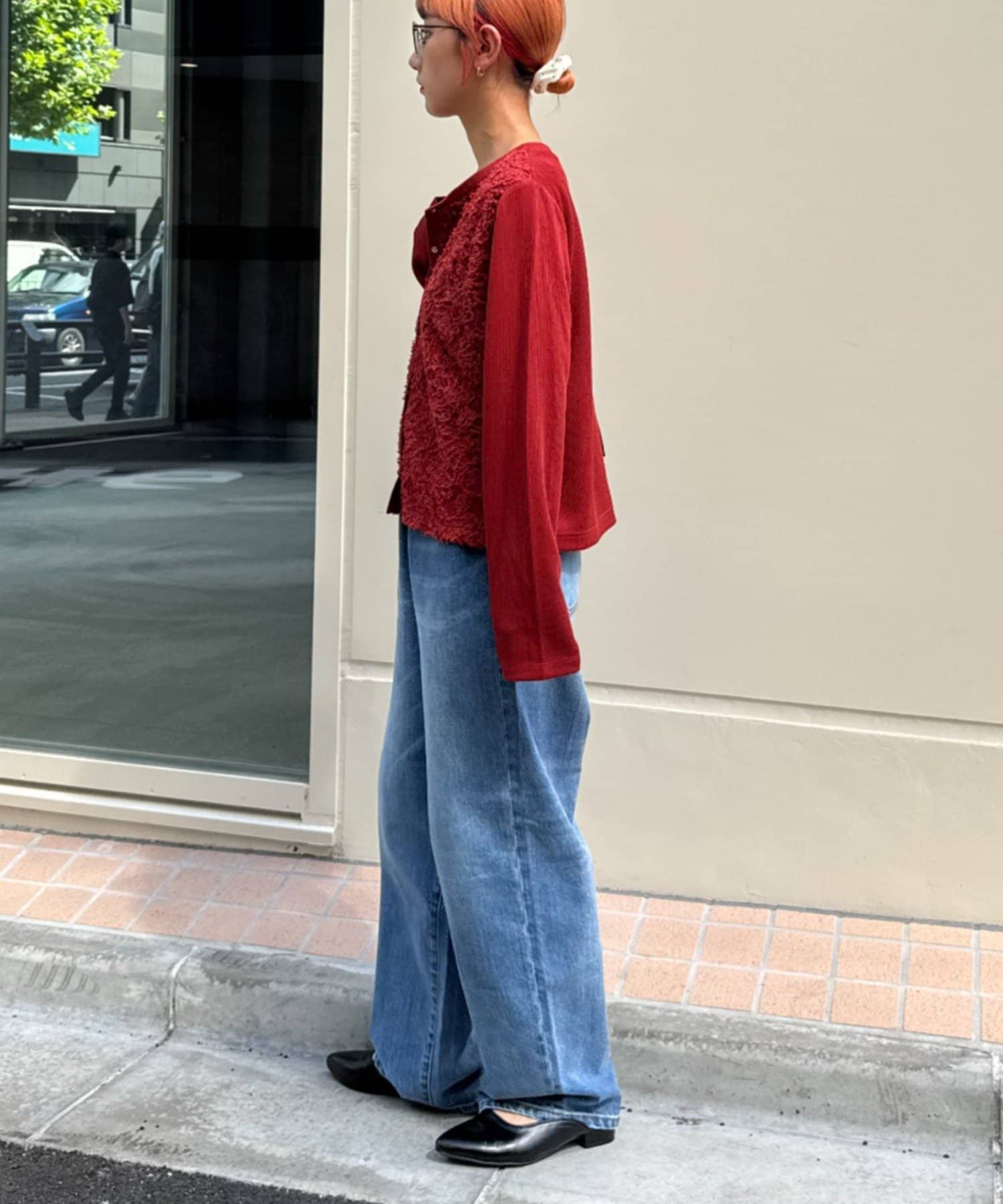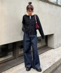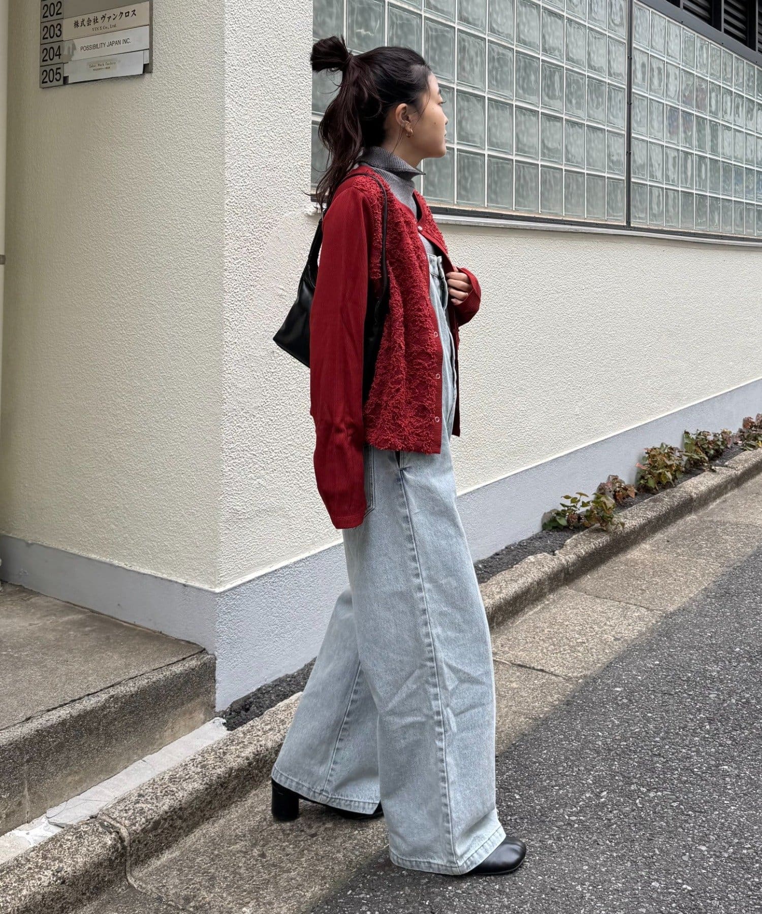 前を閉めてデニムと合わせれば、カジュアルと甘さのバランスがとれたトレンドコーデが完成♩
