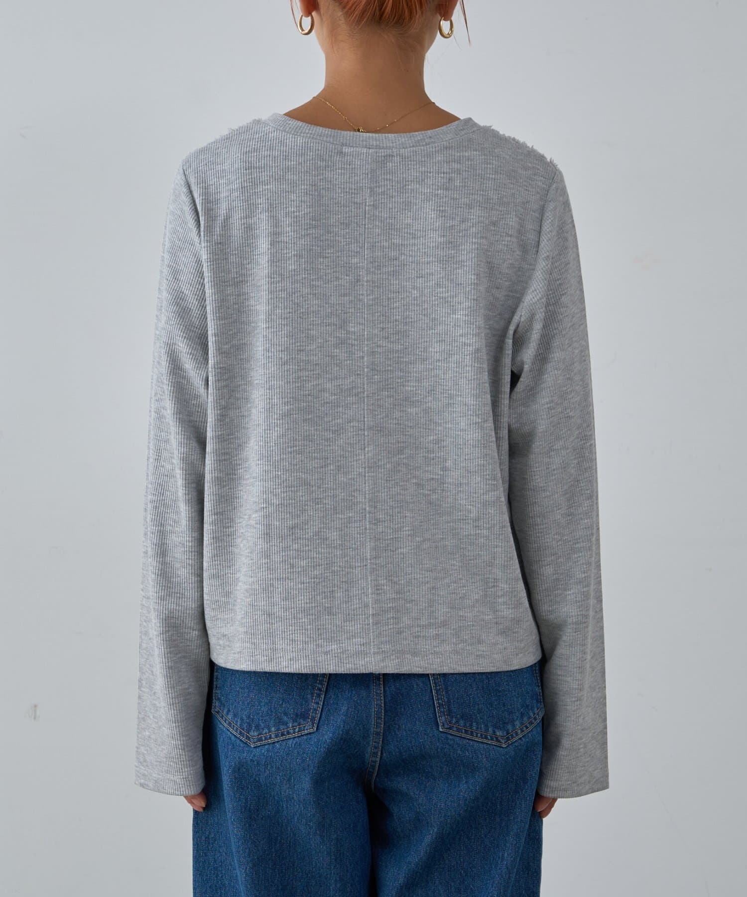 袖と背中はリブ素材で仕上げ、すっきりとしたシルエットと伸縮性を兼ね備えました。