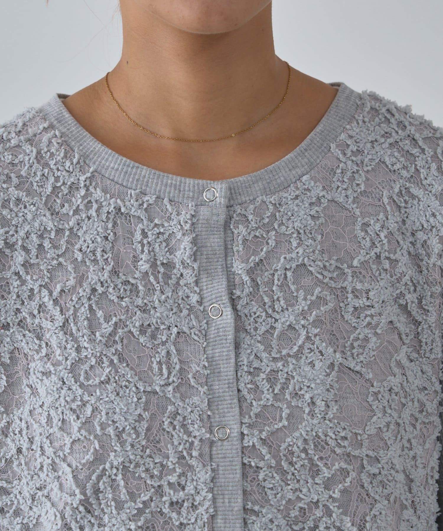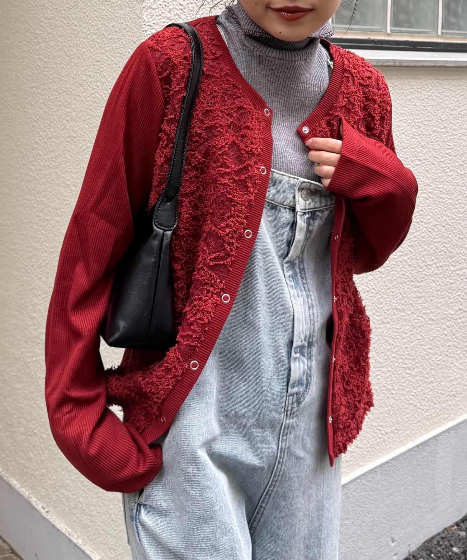 レースの華やかさとリブ素材の着心地の良さを組み合わせたカーデ!