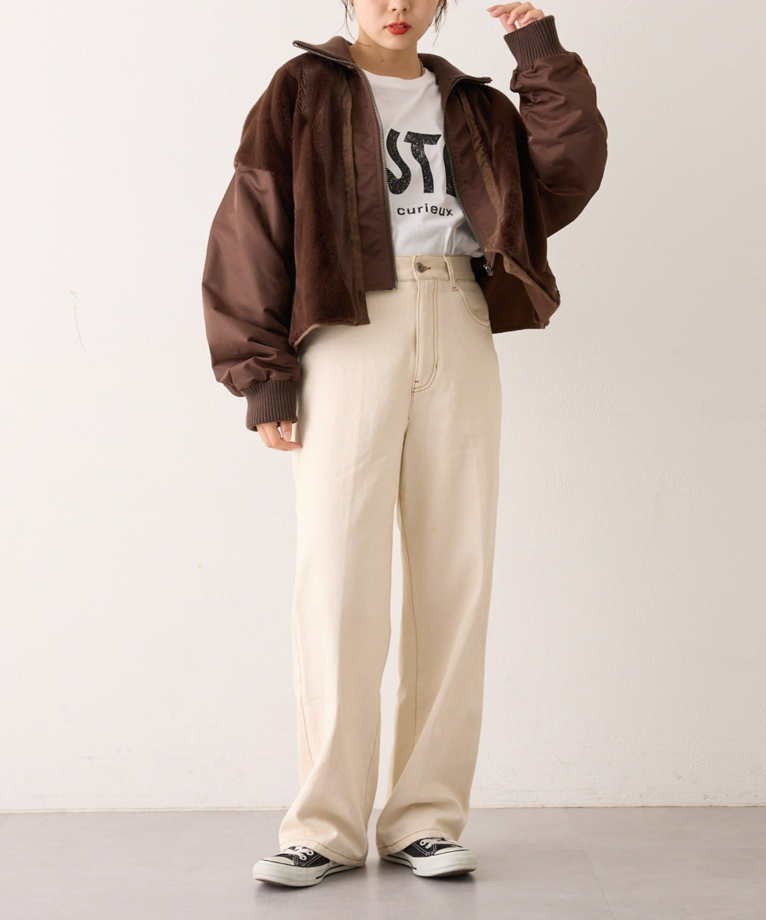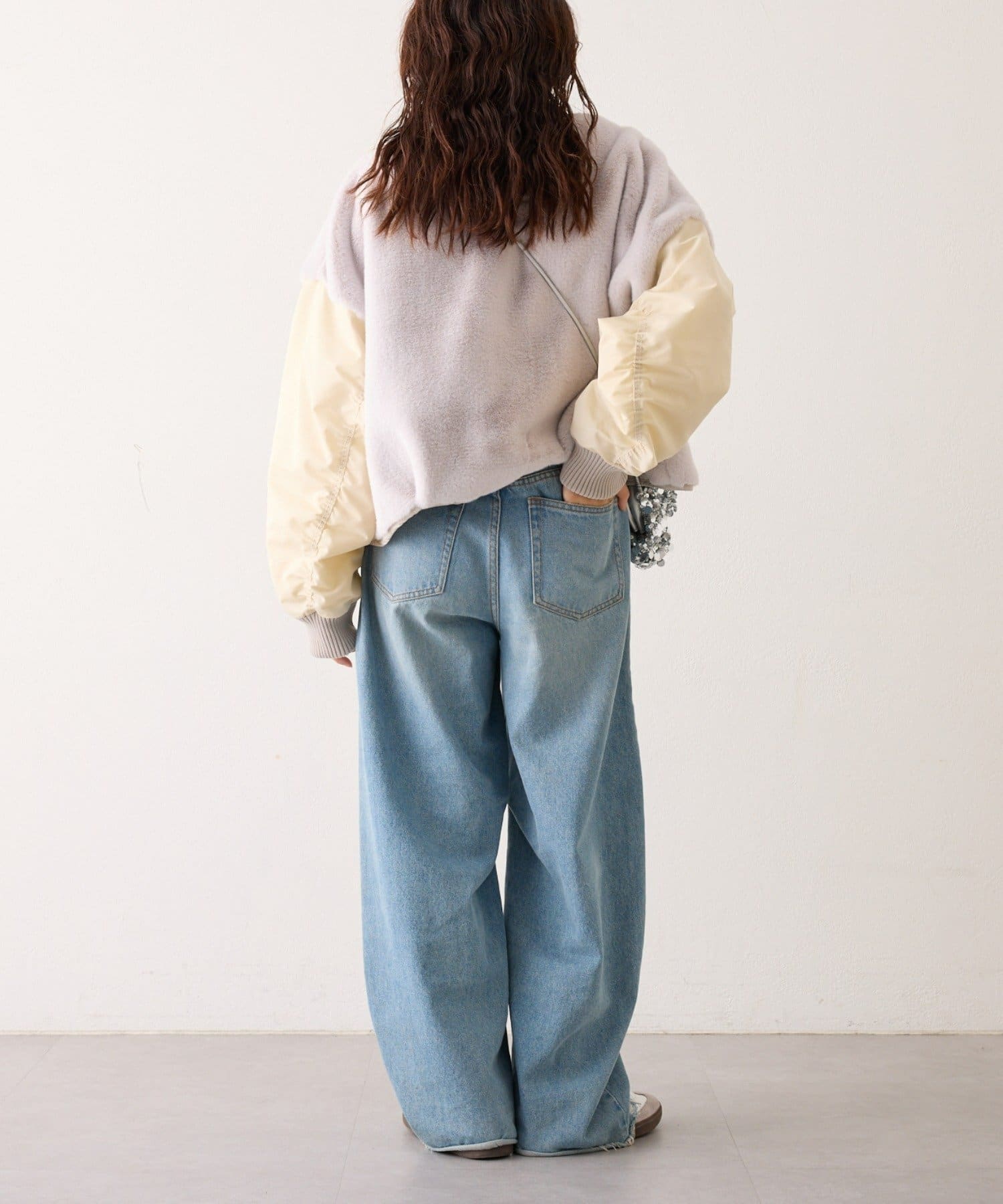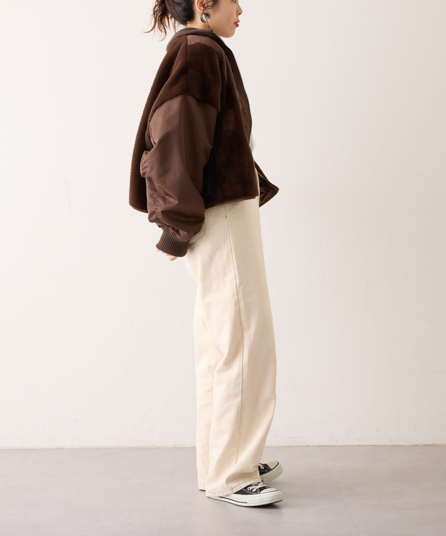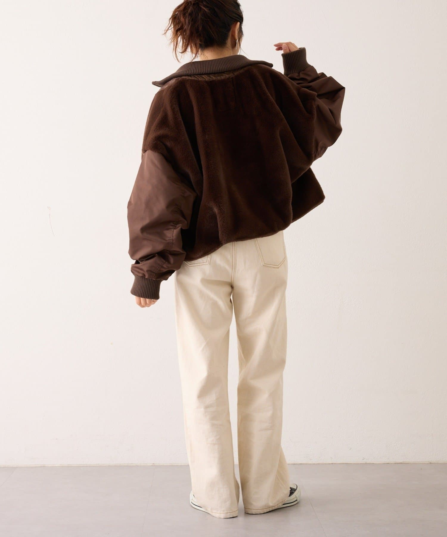 【etsinta】ファー切替ショートスタンドジャケット/WEB限定カラーあり