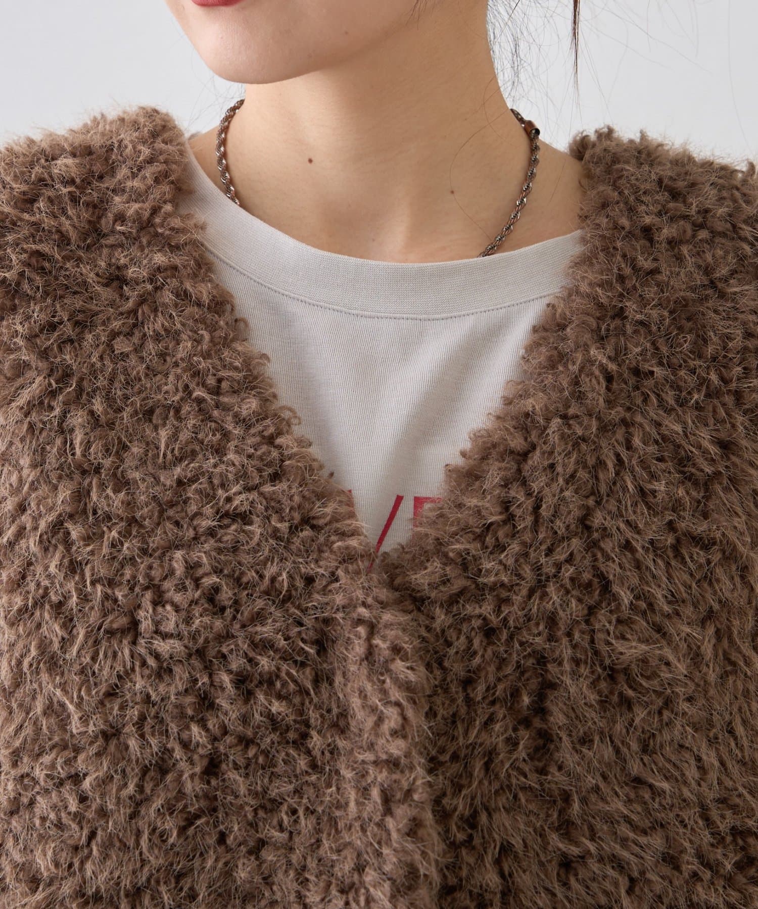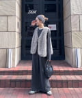 毛足の長いボア素材が、女性らしい柔らかな印象を与え、見た目にもあたたかく、秋冬のスタイリングにぴったりのアイテムです。