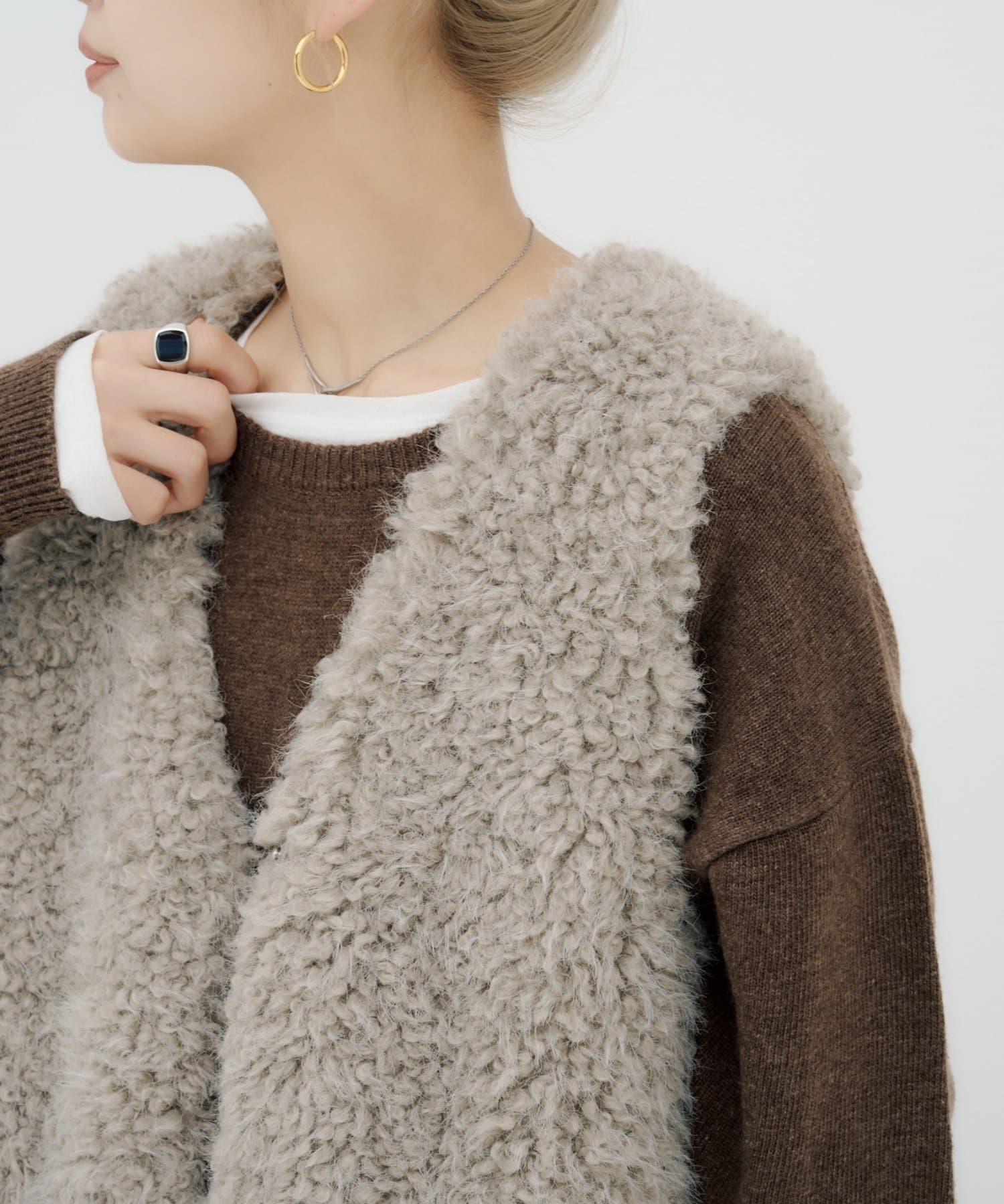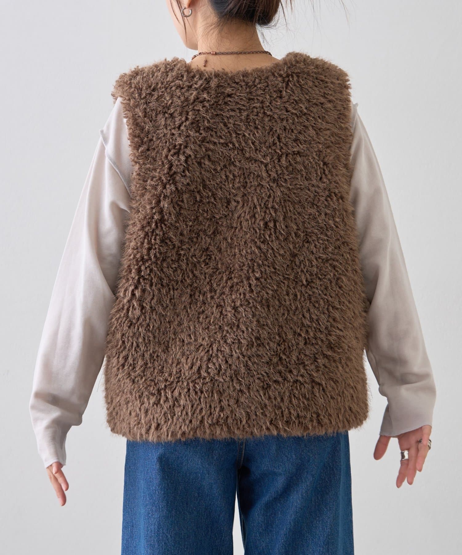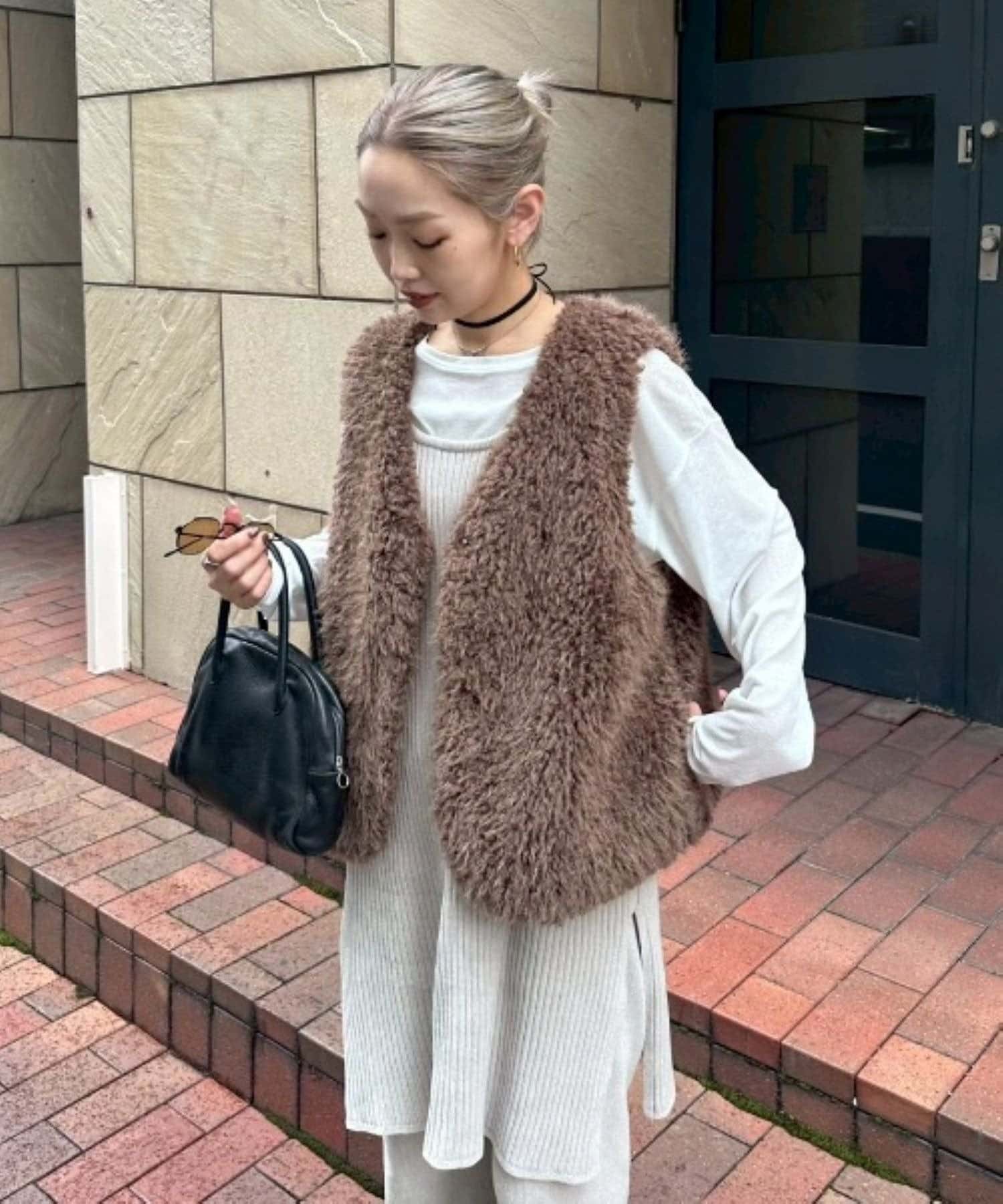 いつものコーデにプラスするだけで、こなれ感を演出できるボアベスト。
