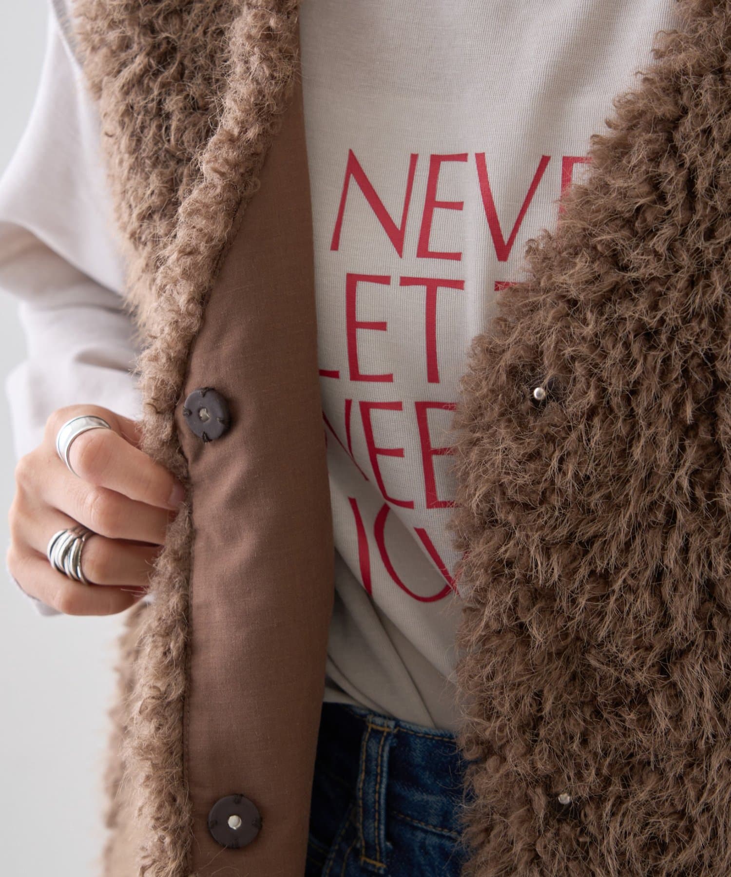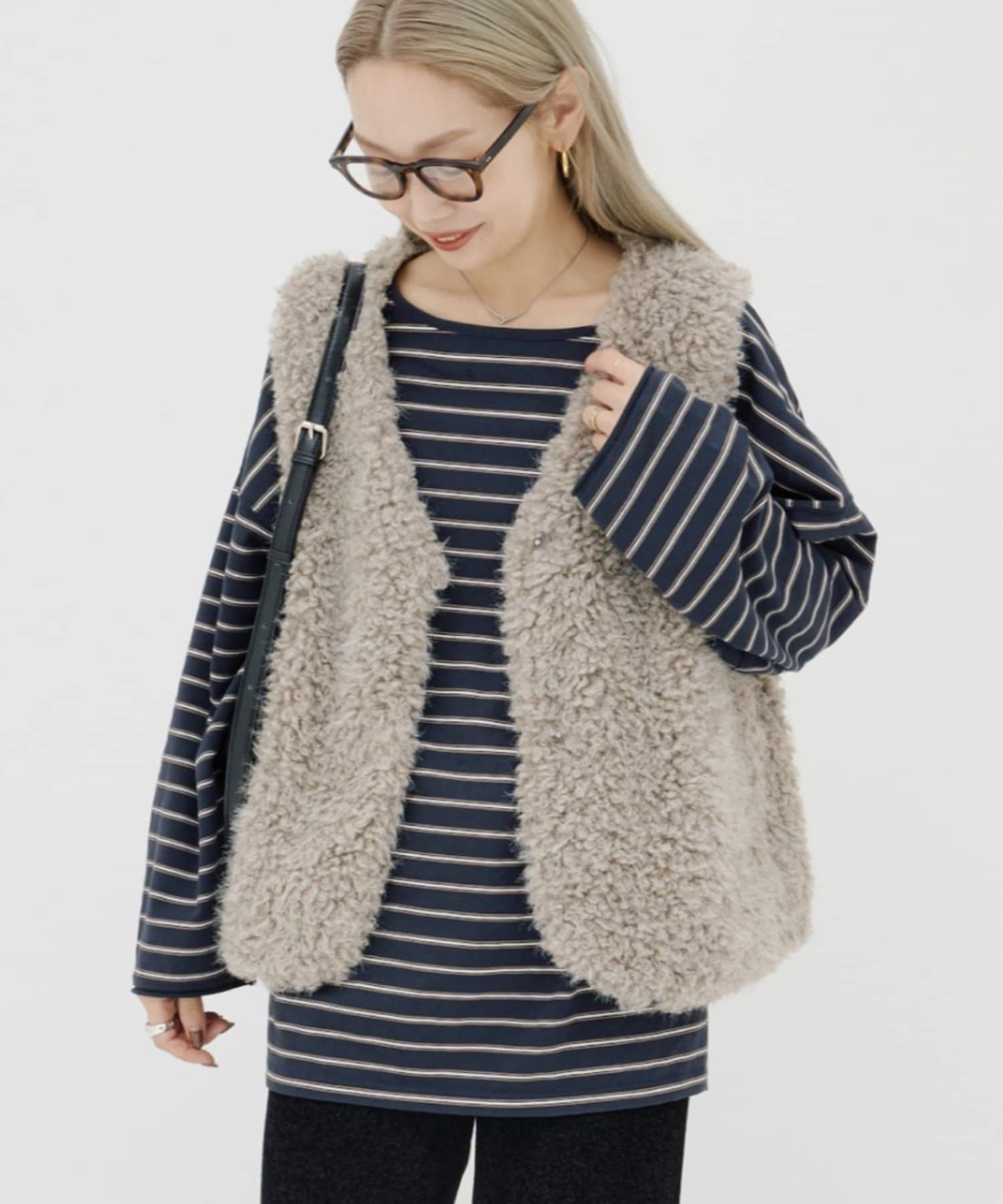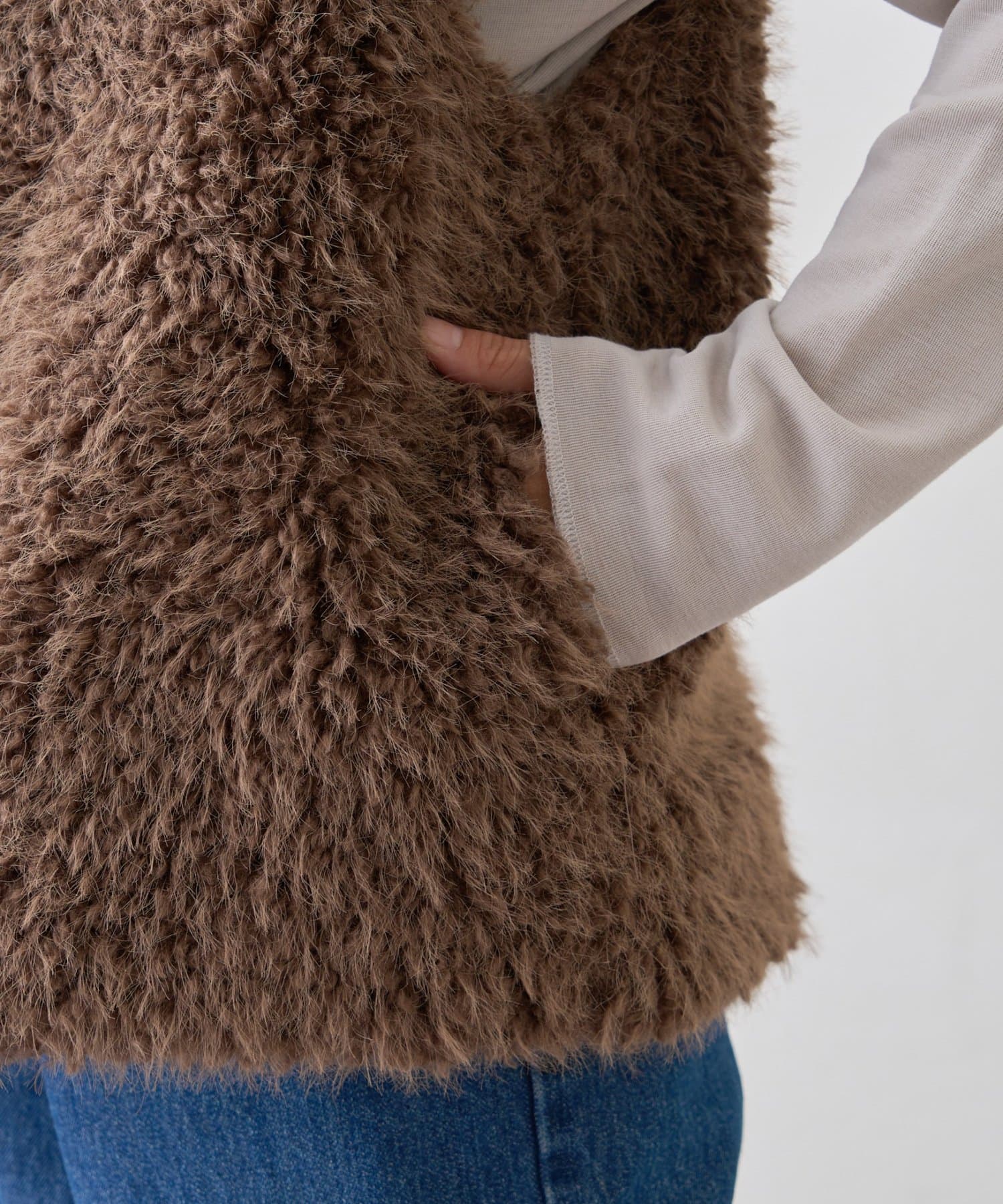 いつものコーデにプラスするだけで、こなれ感を演出できるボアベスト。