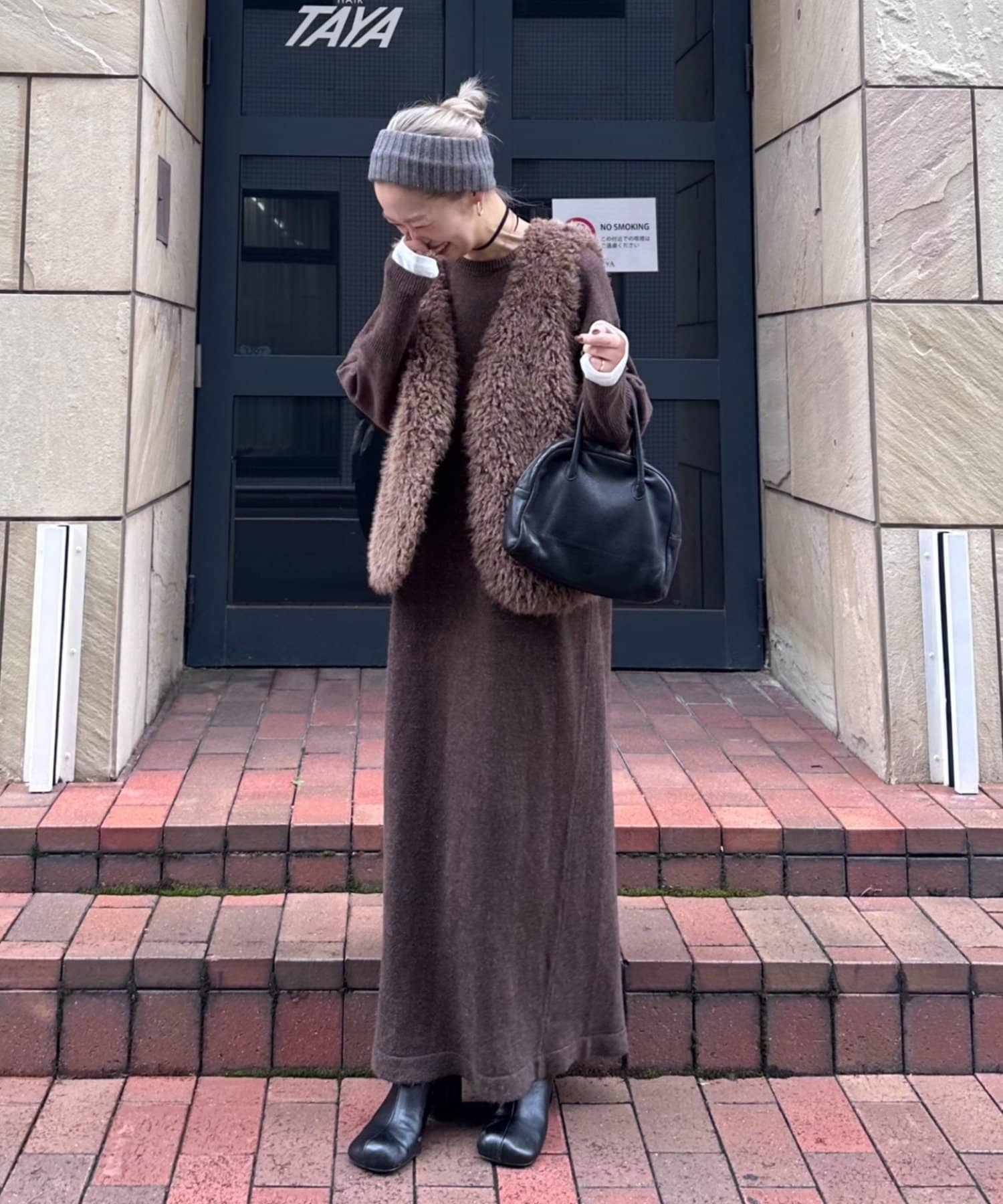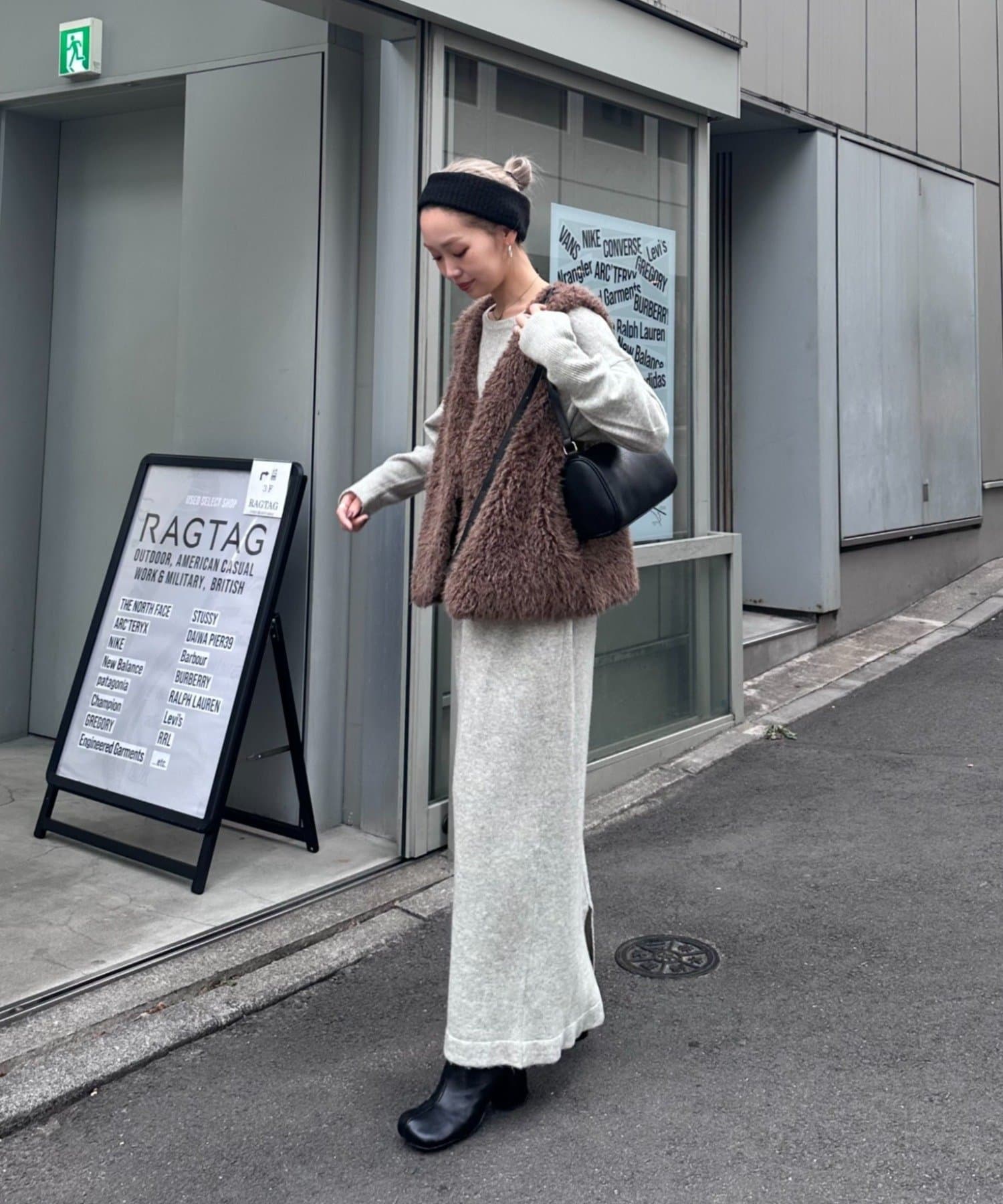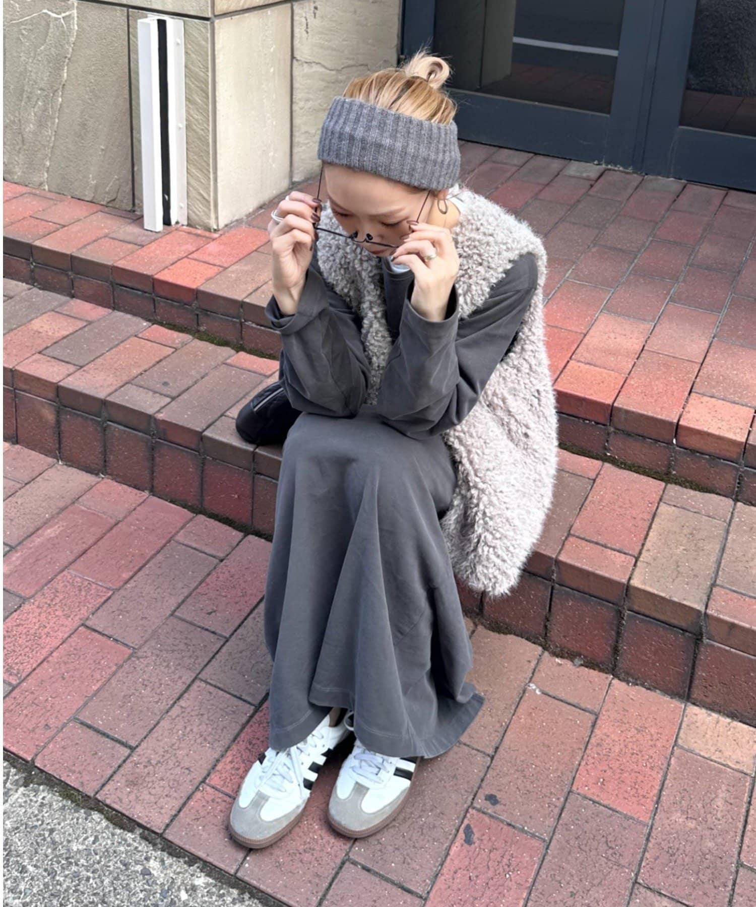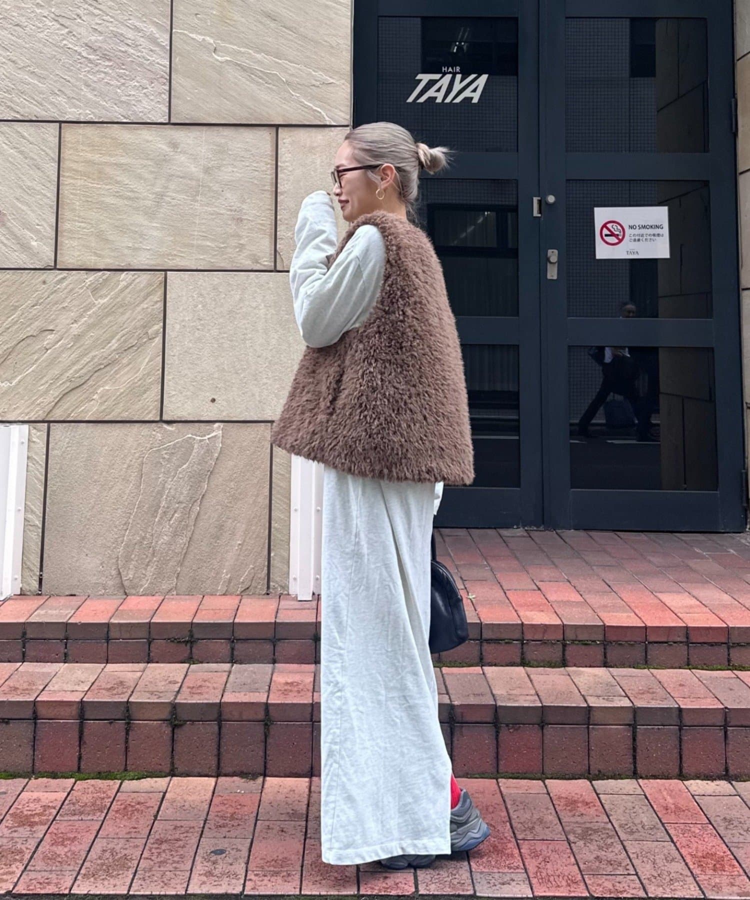カラーはオフホワイト、グレー、ブラウンの3色展開で、どれもコーディネートに馴染みやすいカラーです。