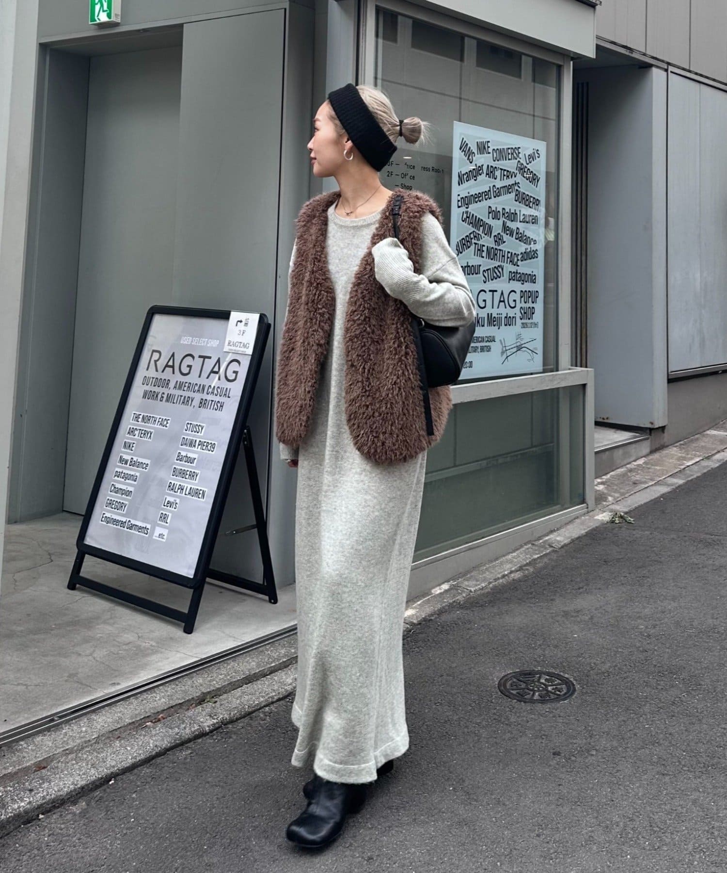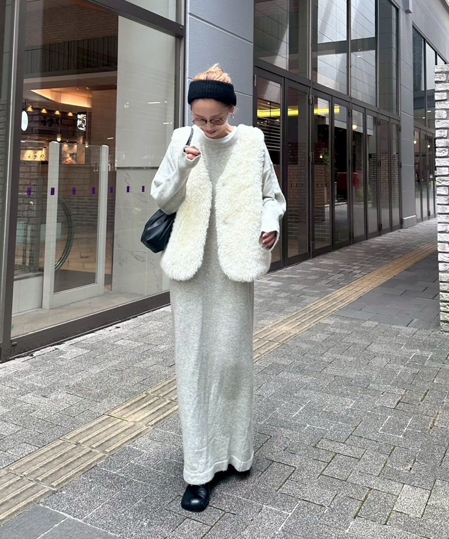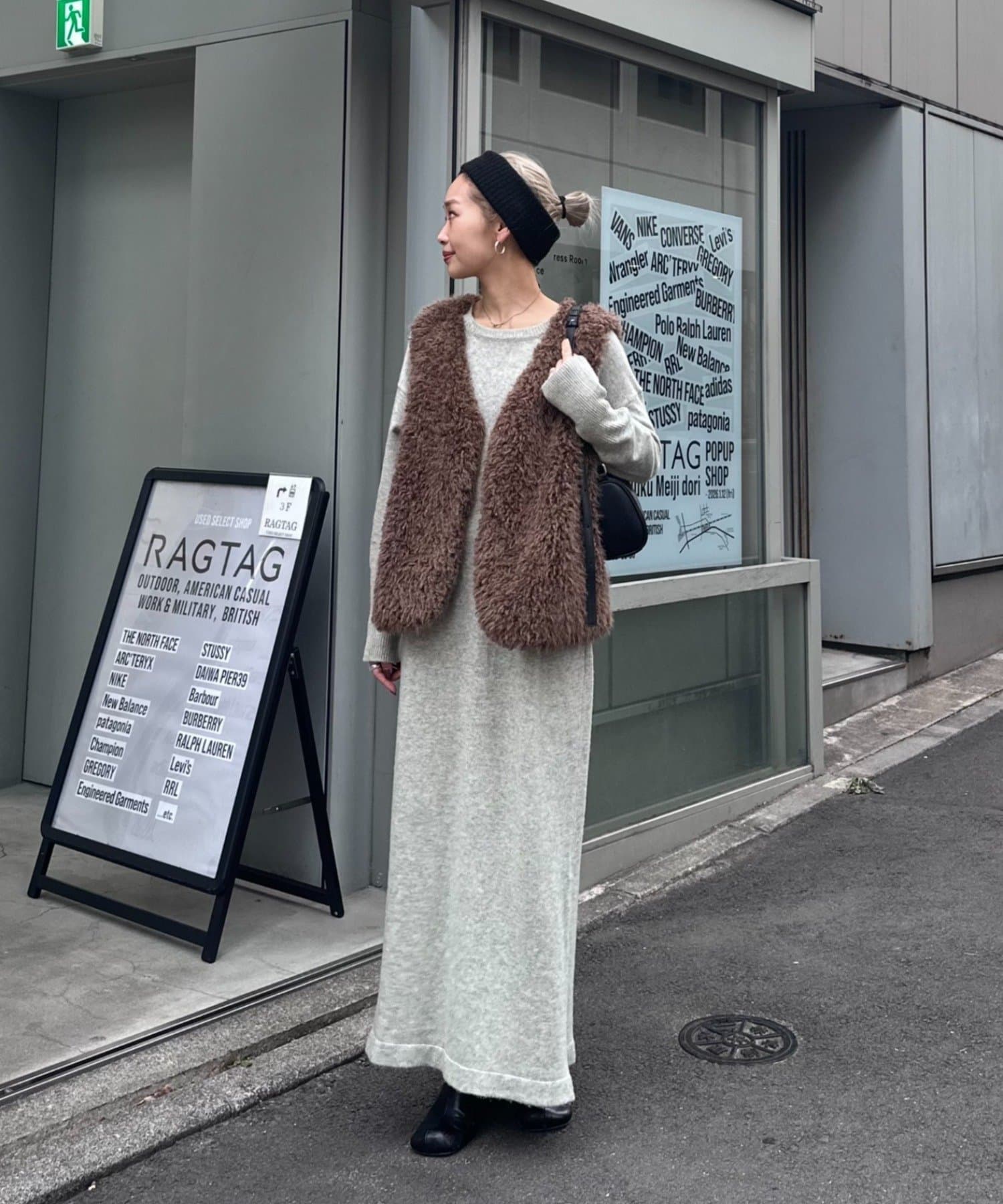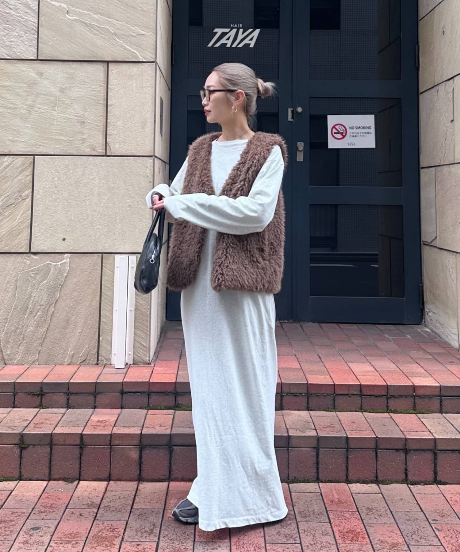 カラーはオフホワイト、グレー、ブラウンの3色展開で、どれもコーディネートに馴染みやすいカラーです。