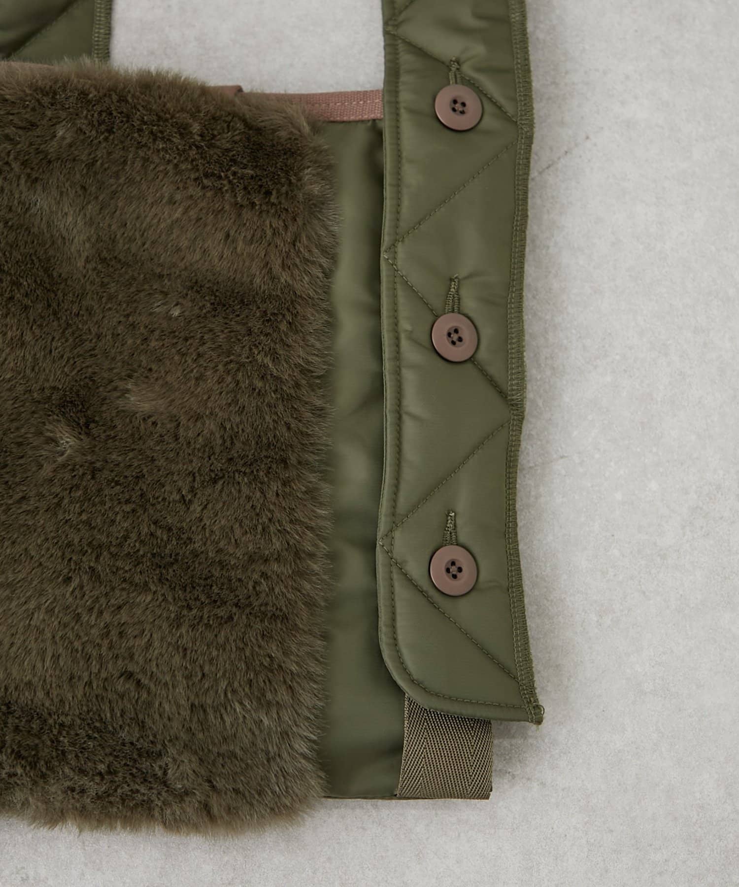 ふんわりファーとミリタリーディテールで、いつものコーデを格上げ異素材MIXキルティングバッグ