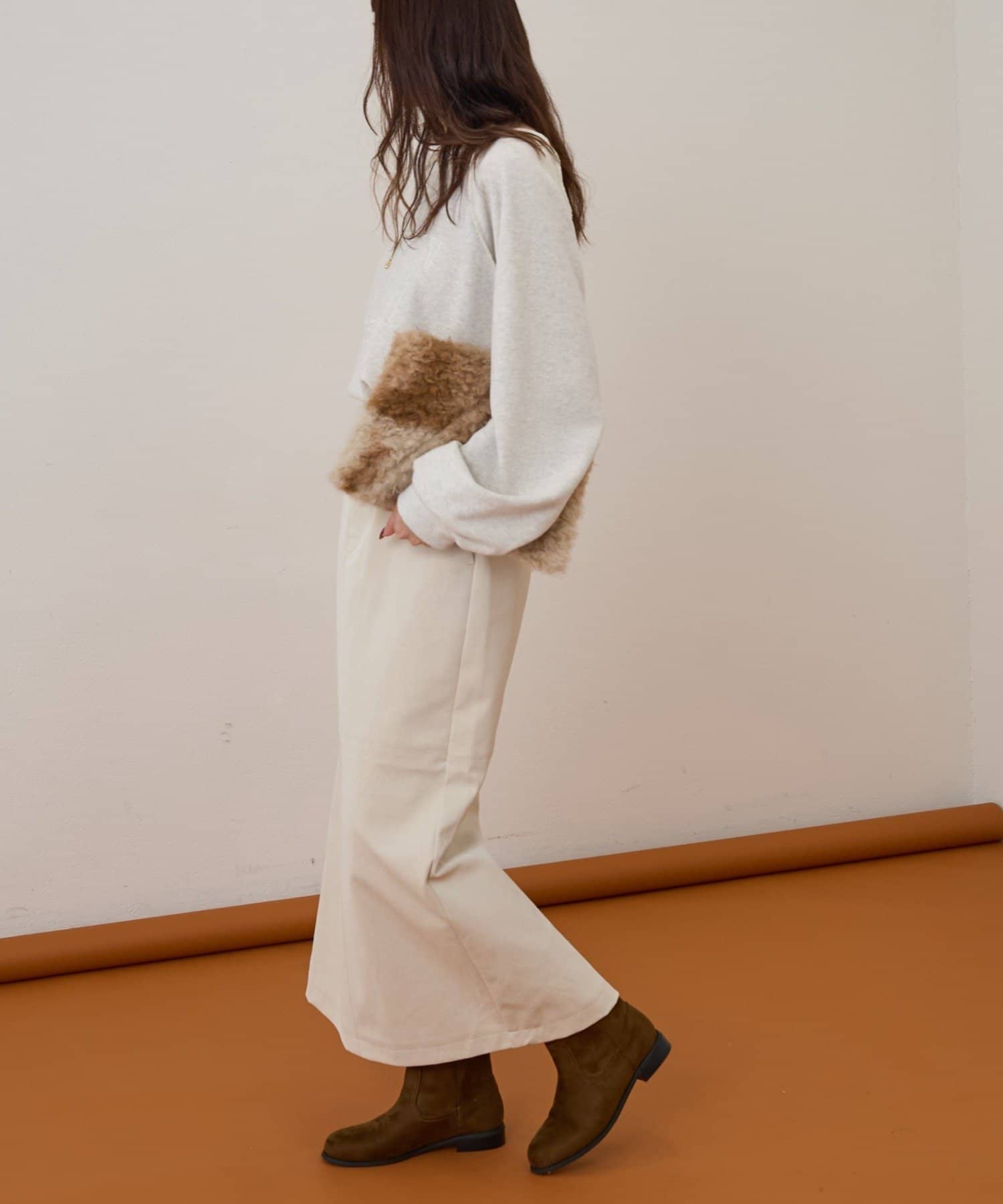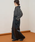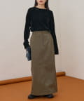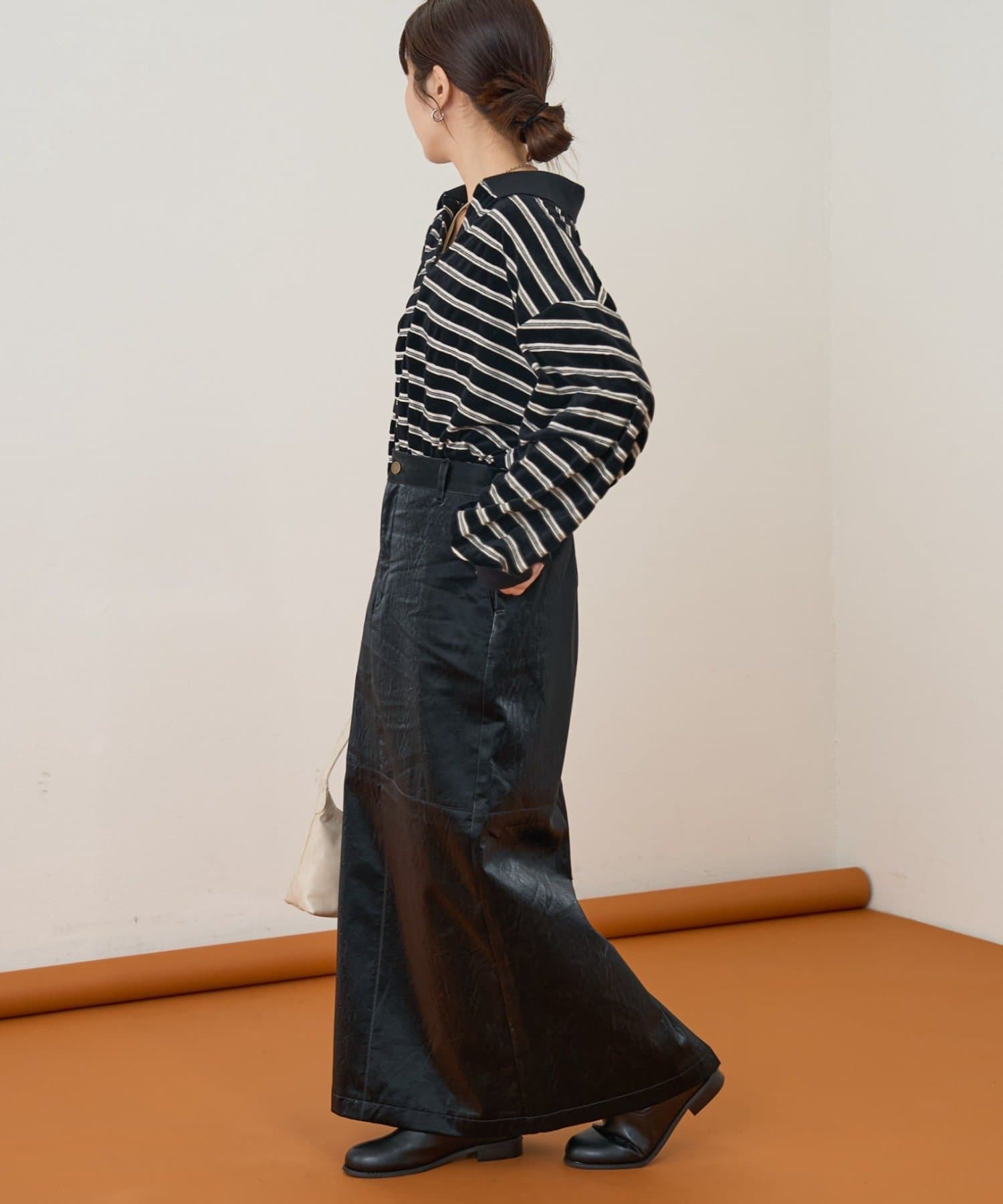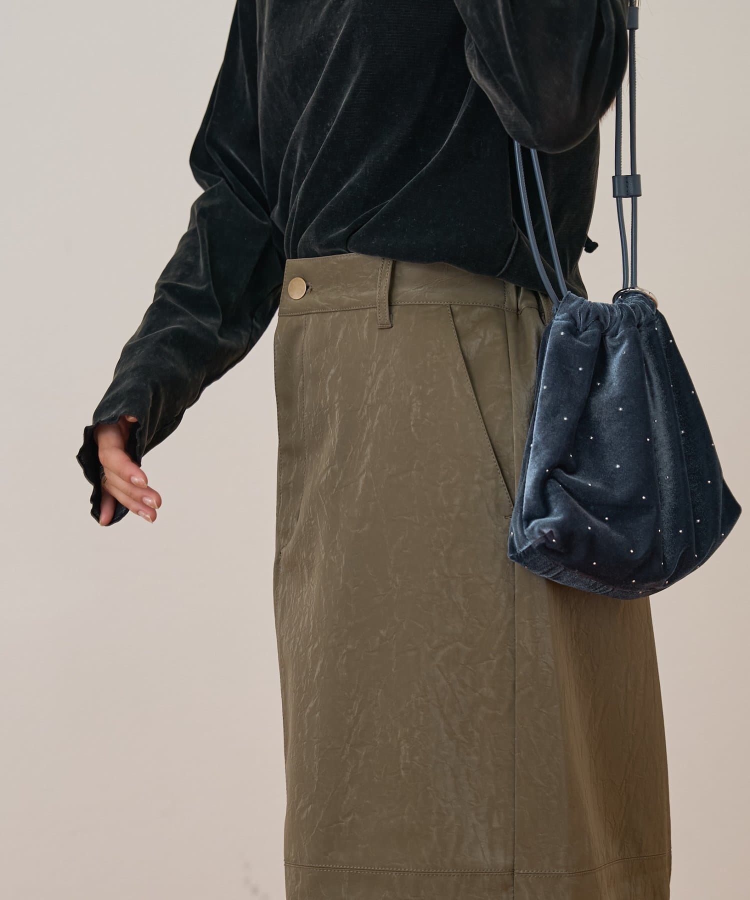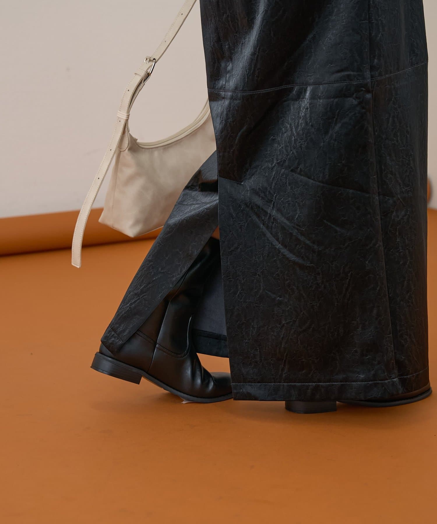 上品な光沢感とハリのあるフェイクレザーを使用した、ナローシルエットのスカート!