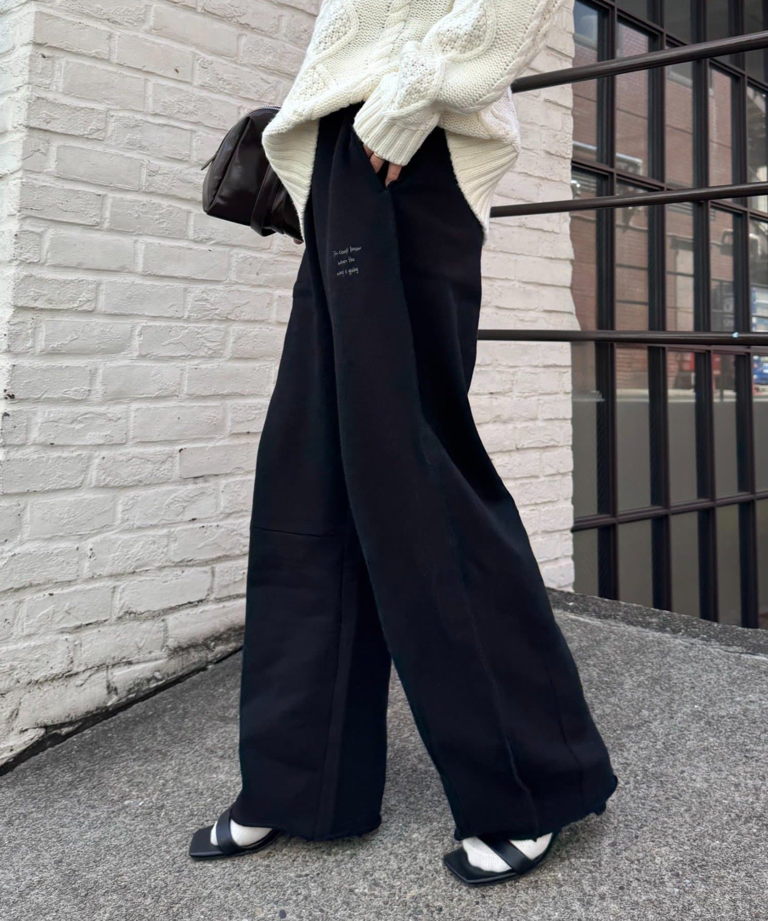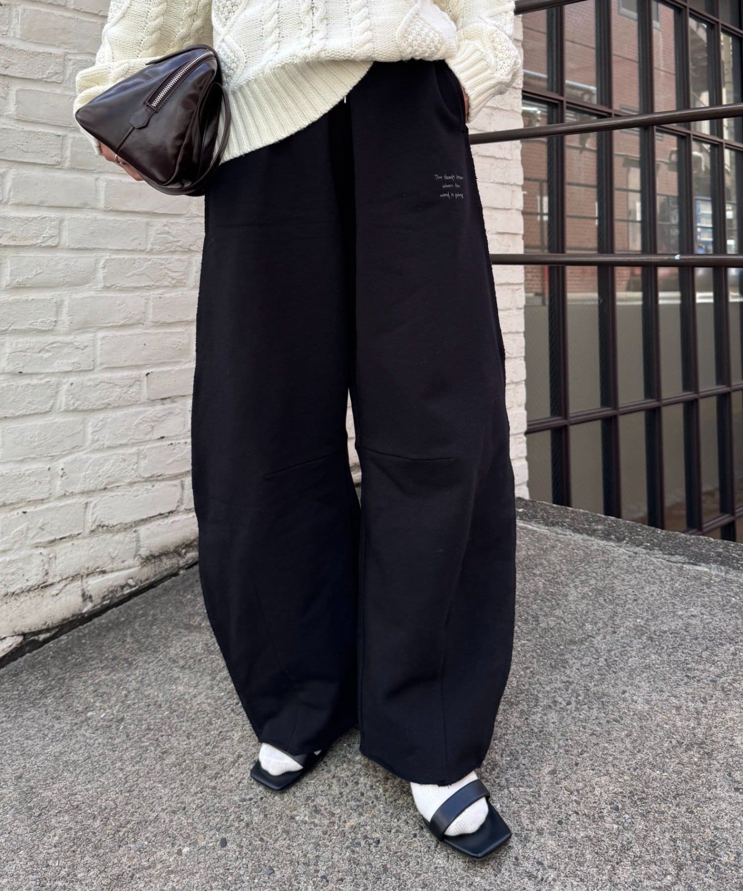 【3サイズ展開】ワンポイントロゴ刺繍スウェットカーブパンツ