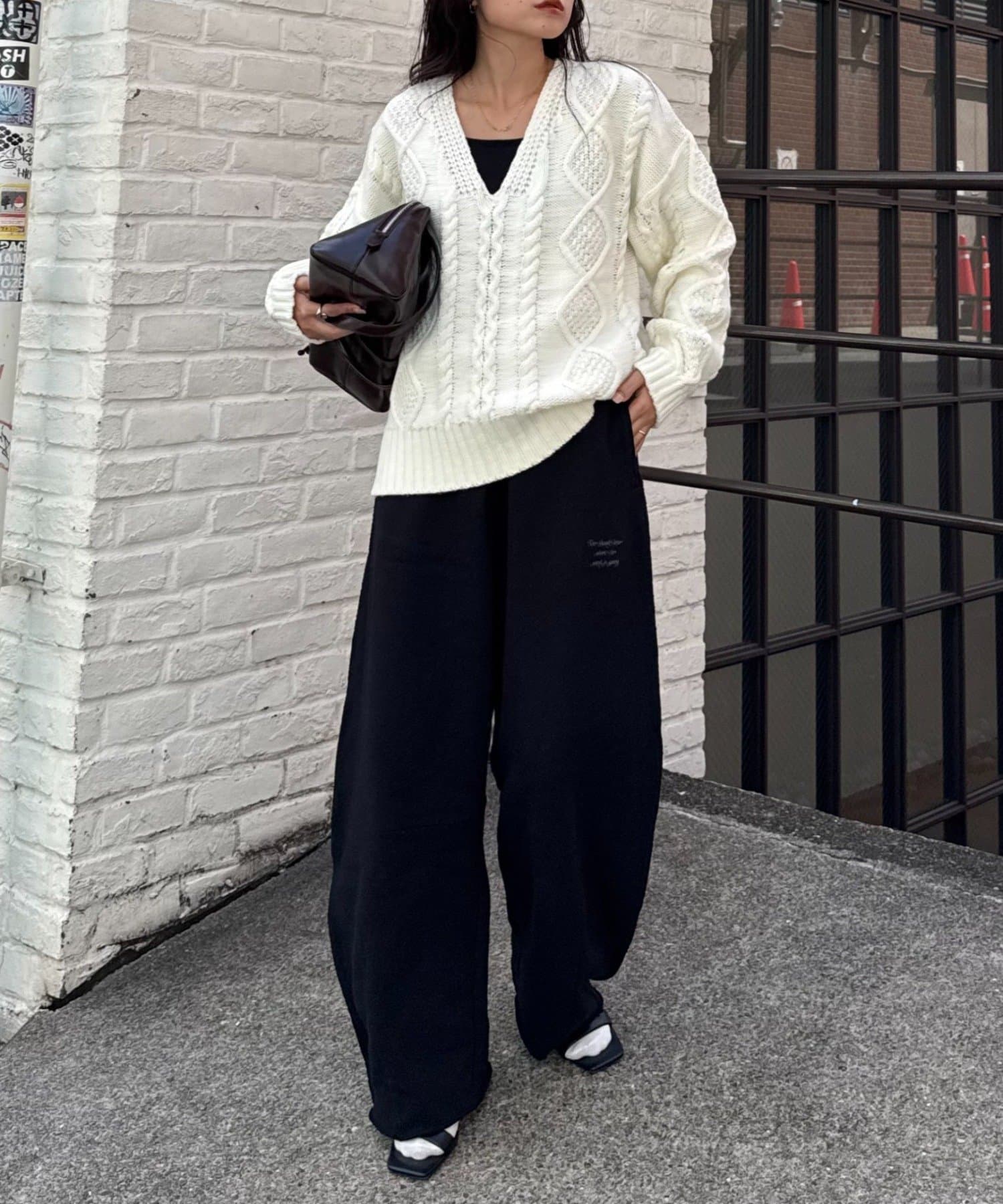 柔らかな生地感と、ワイド×カーブのトレンド感でルーズすぎない絶妙なバランスに◎