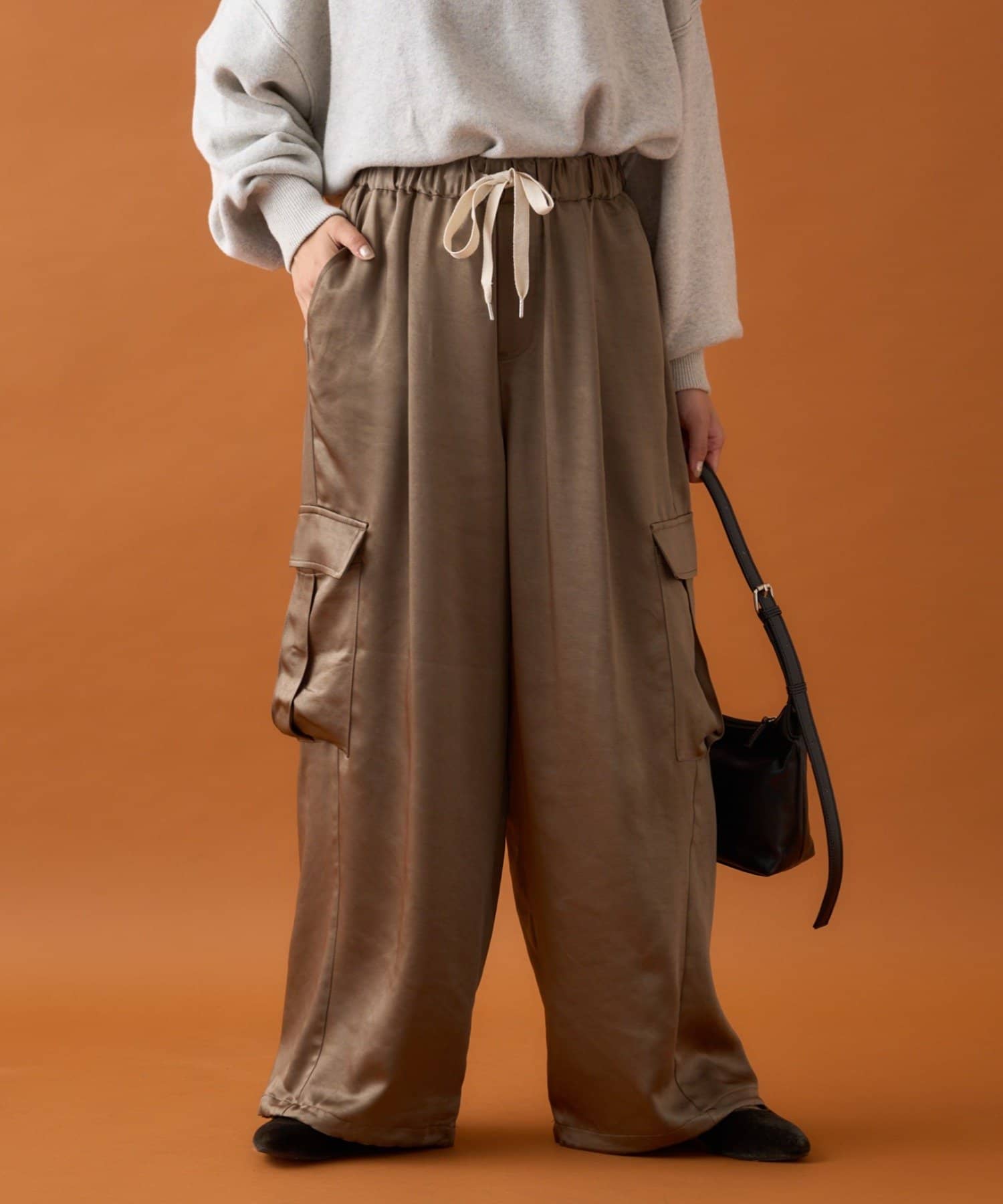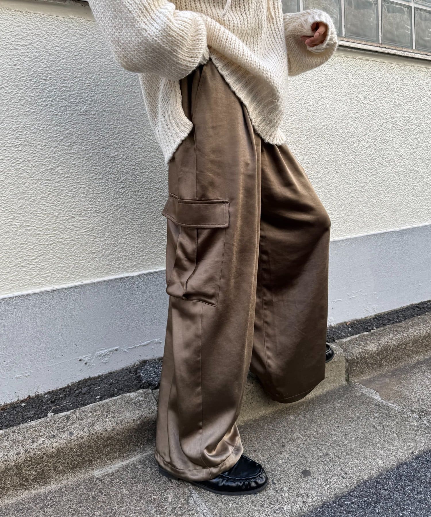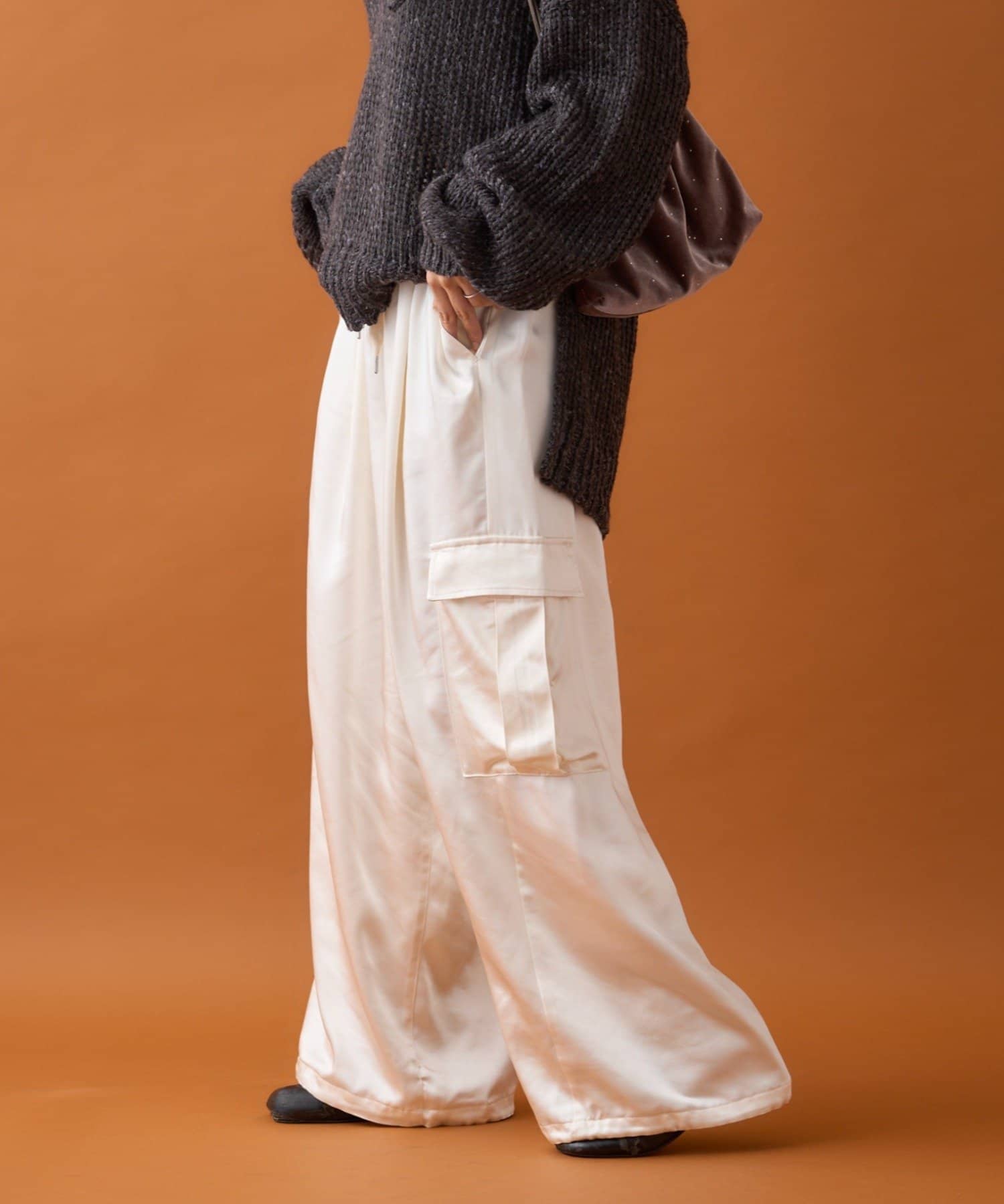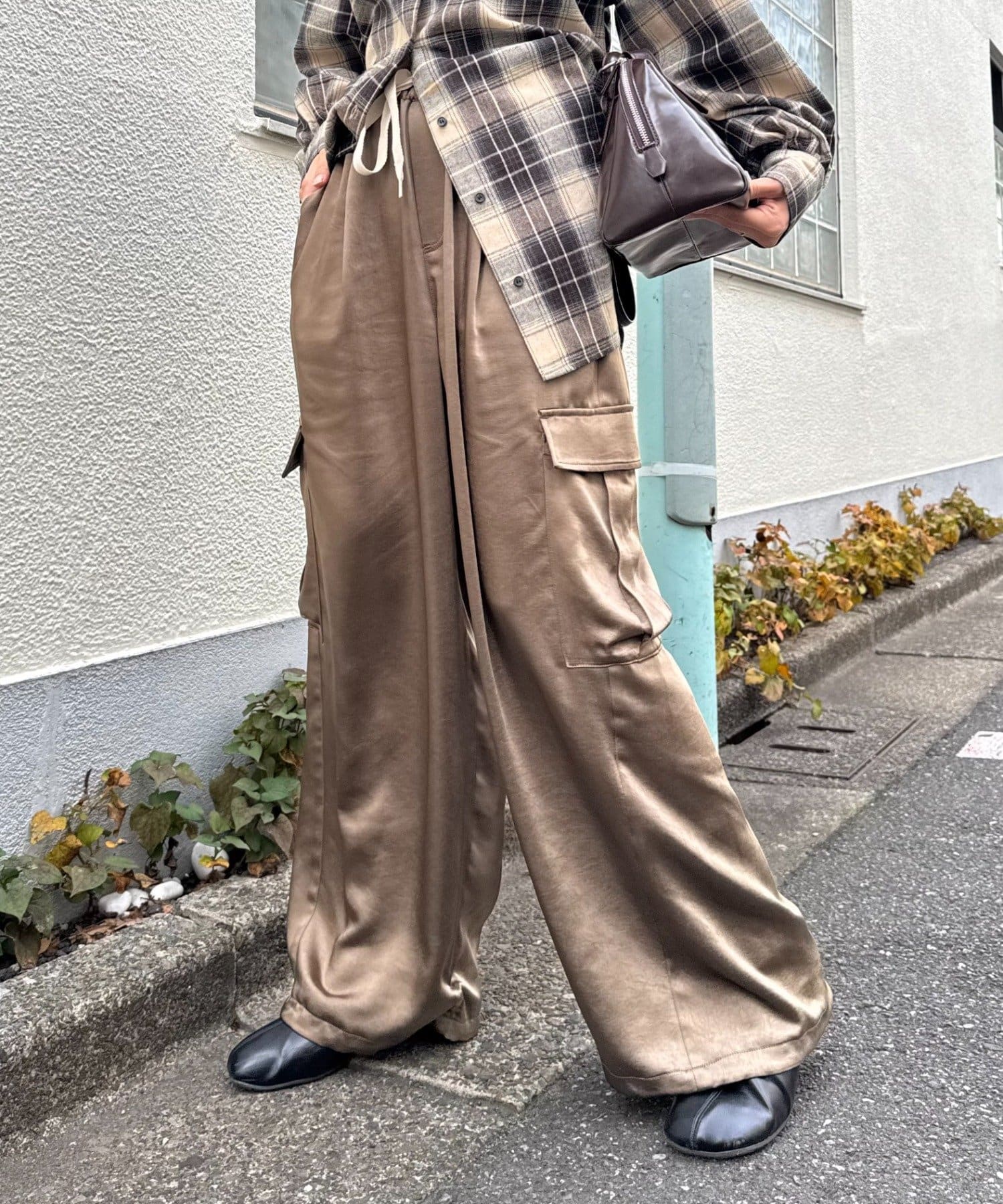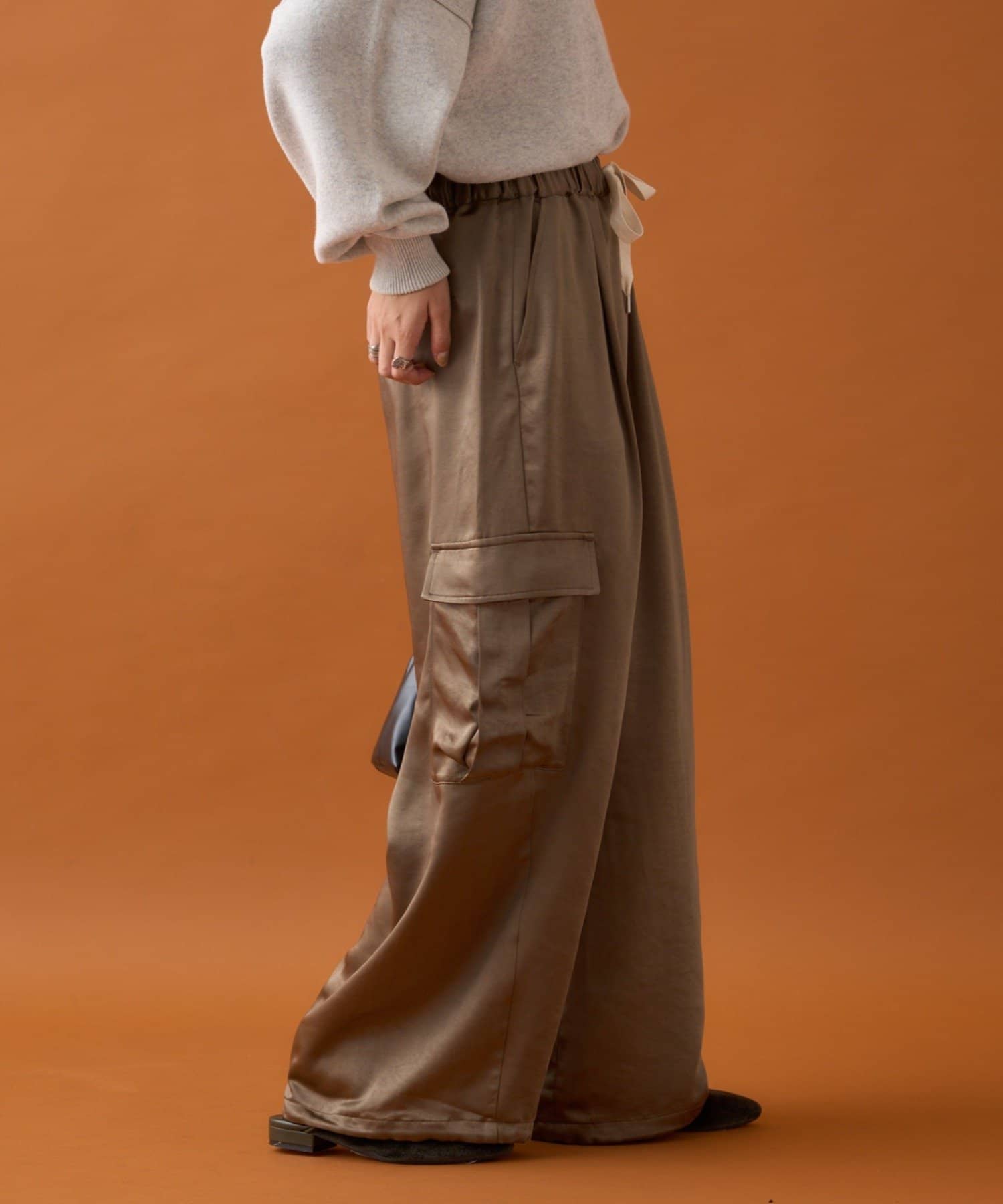 上品な光沢感が女性らしさを演出してくれるカーゴパンツが登場。
