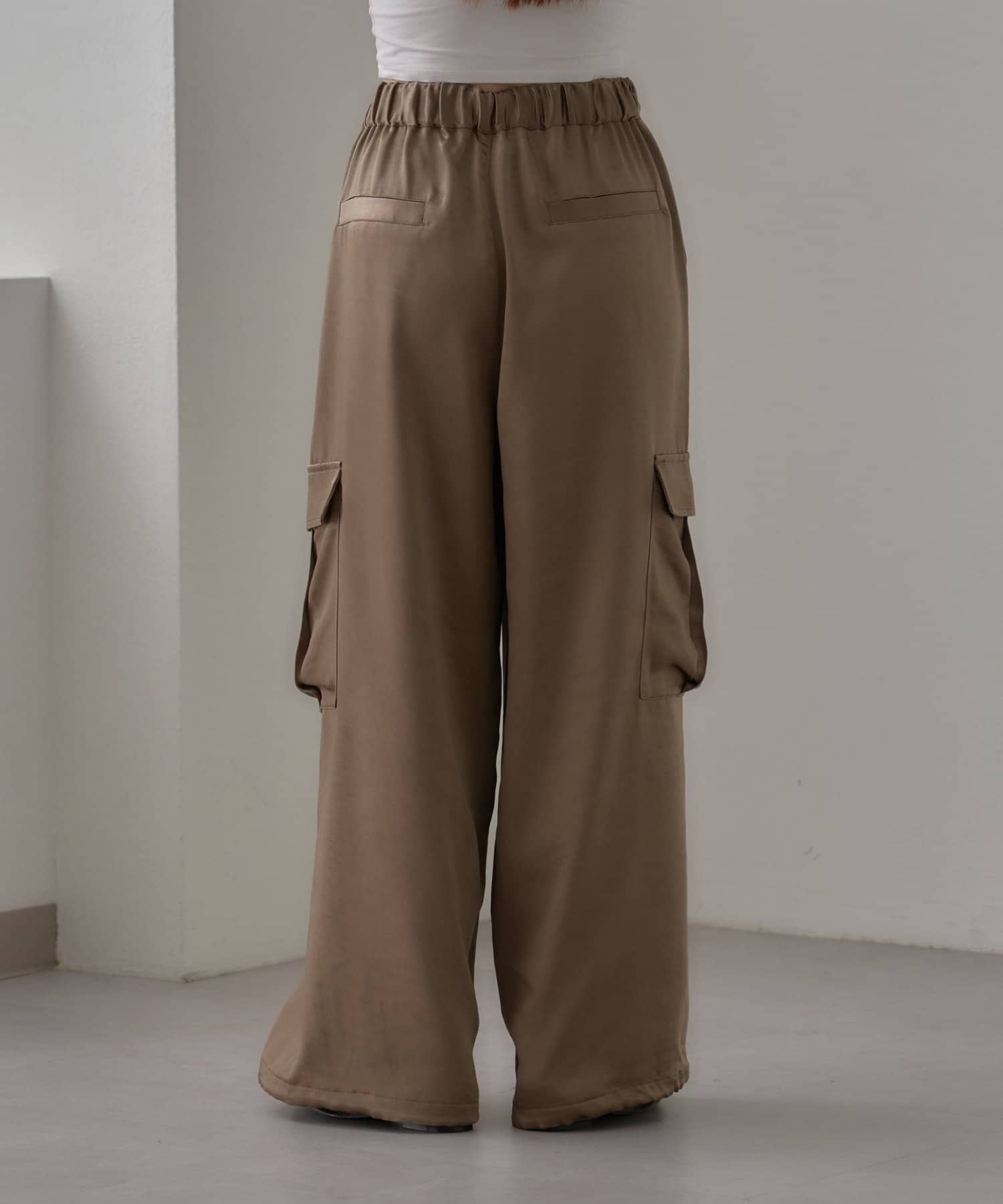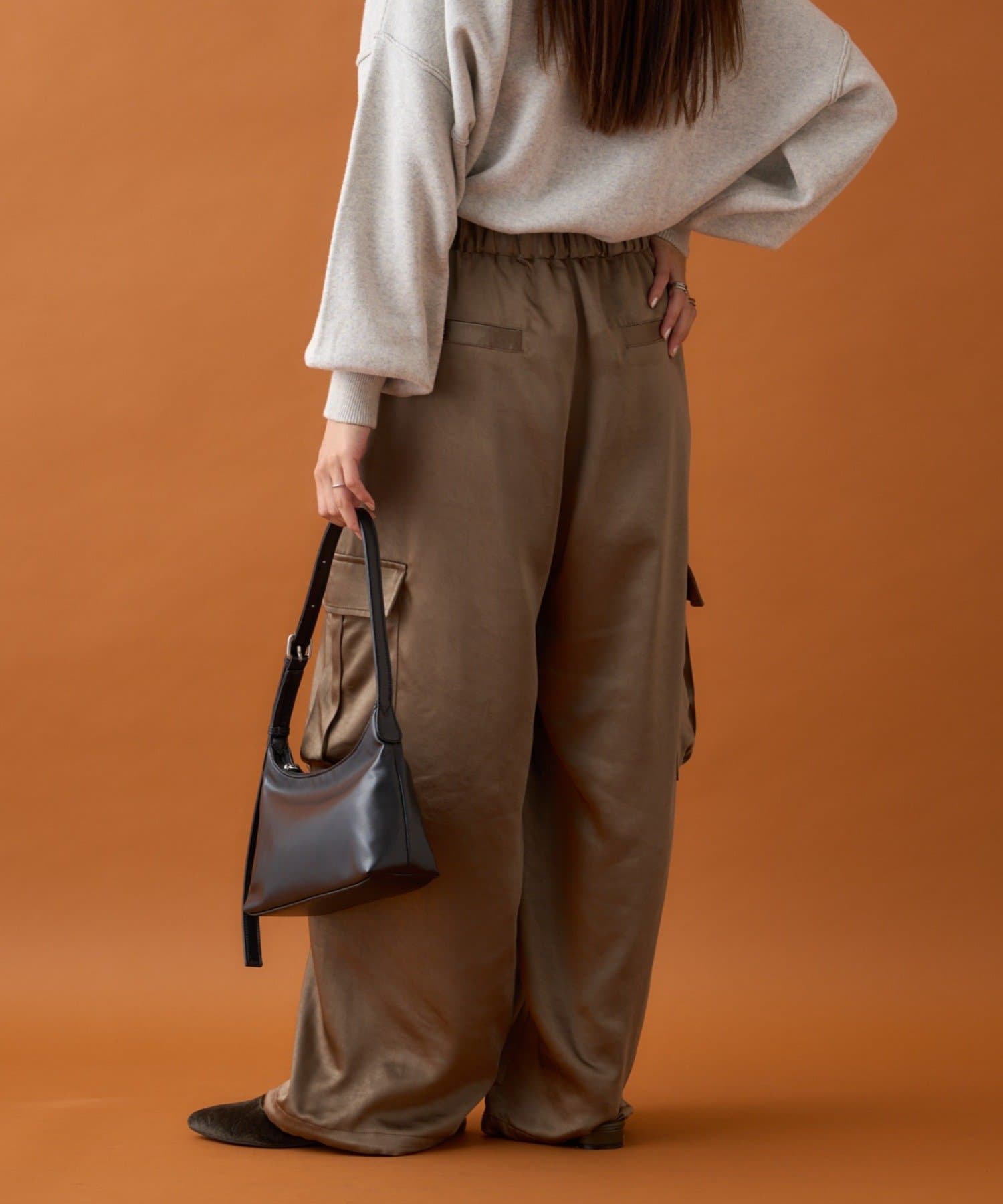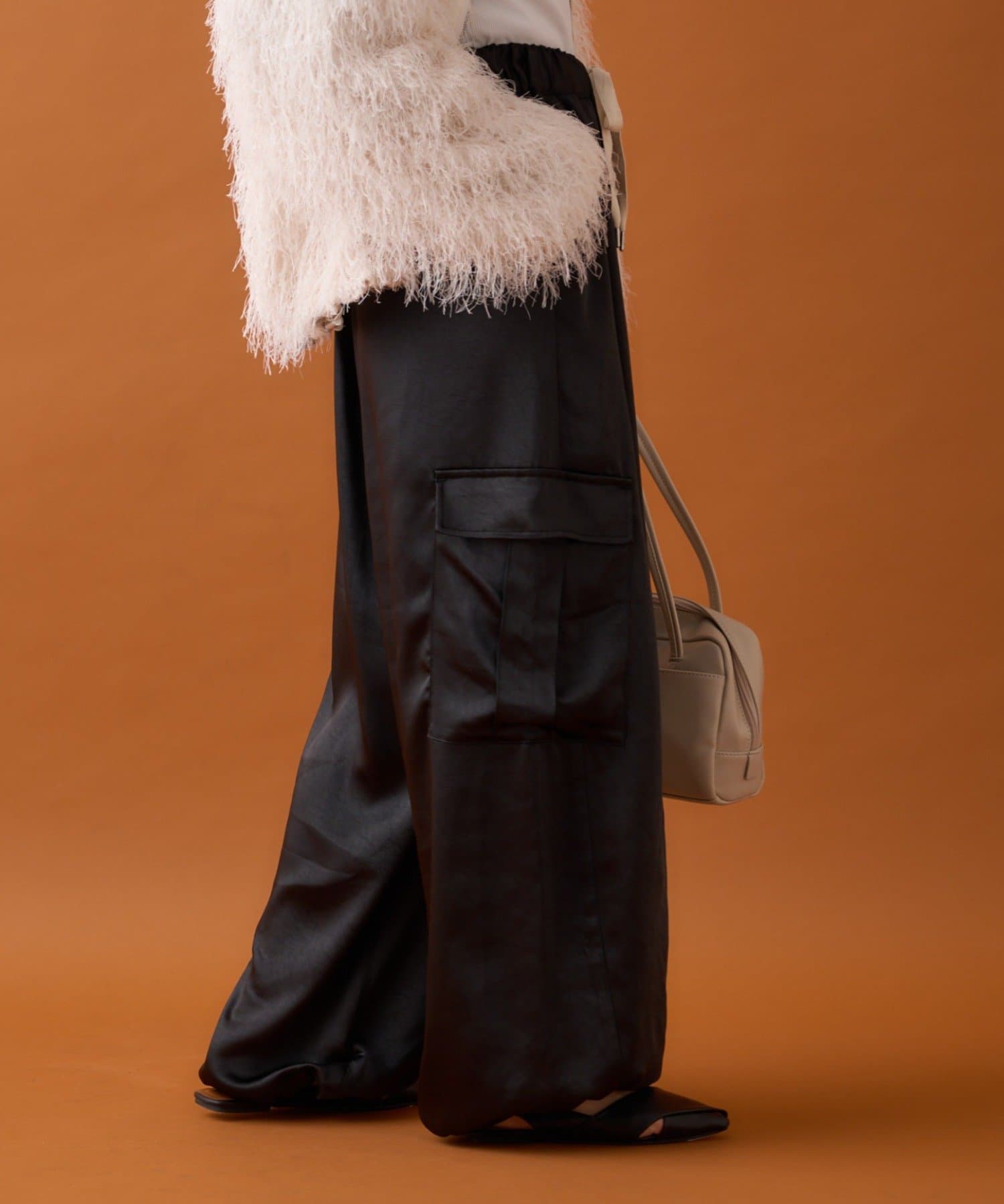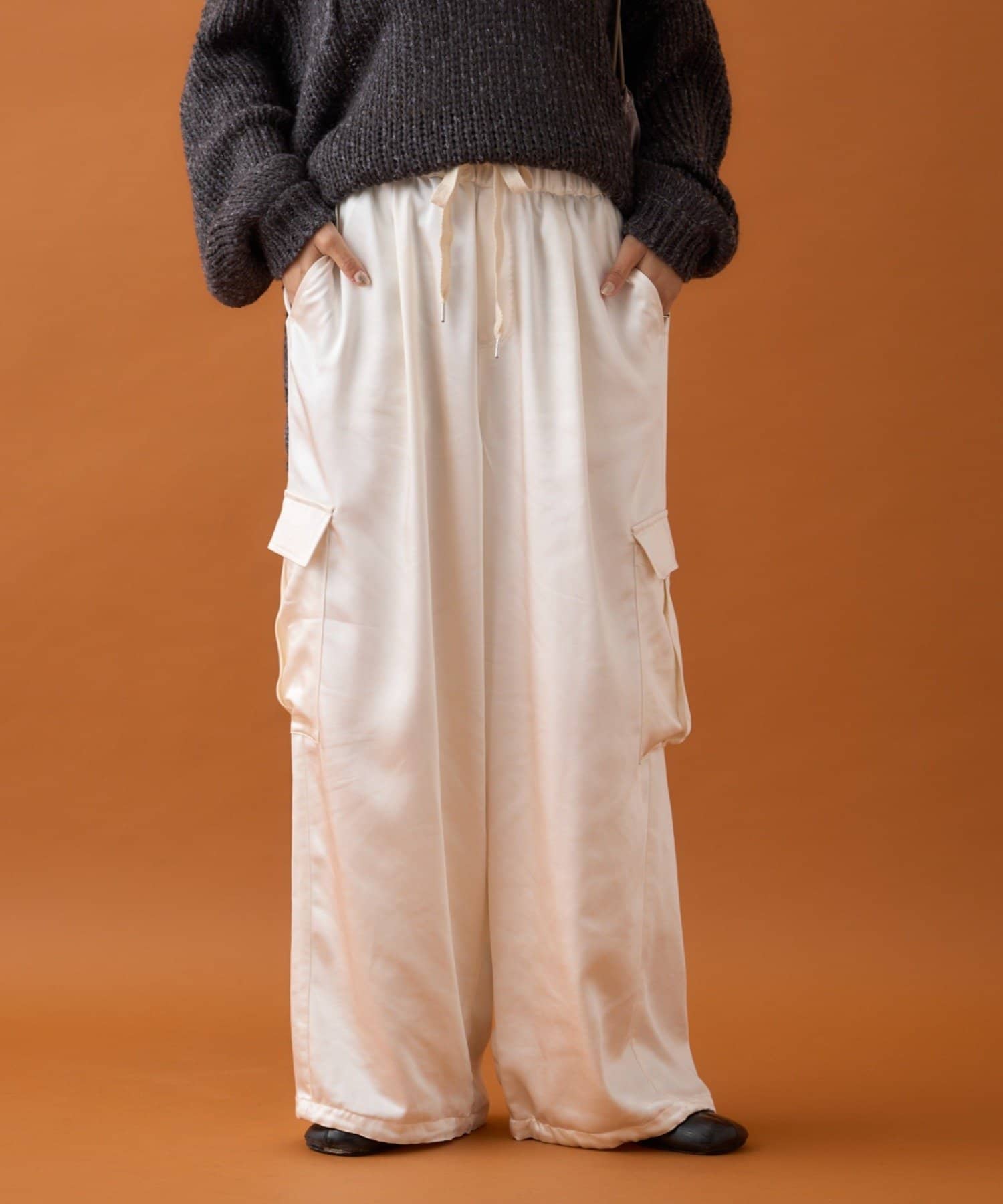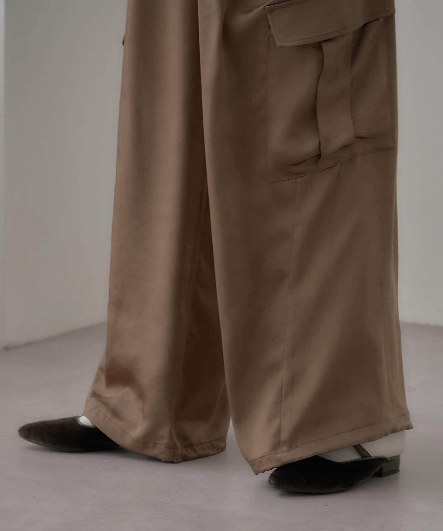 上品な光沢感が女性らしさを演出してくれるカーゴパンツが登場。