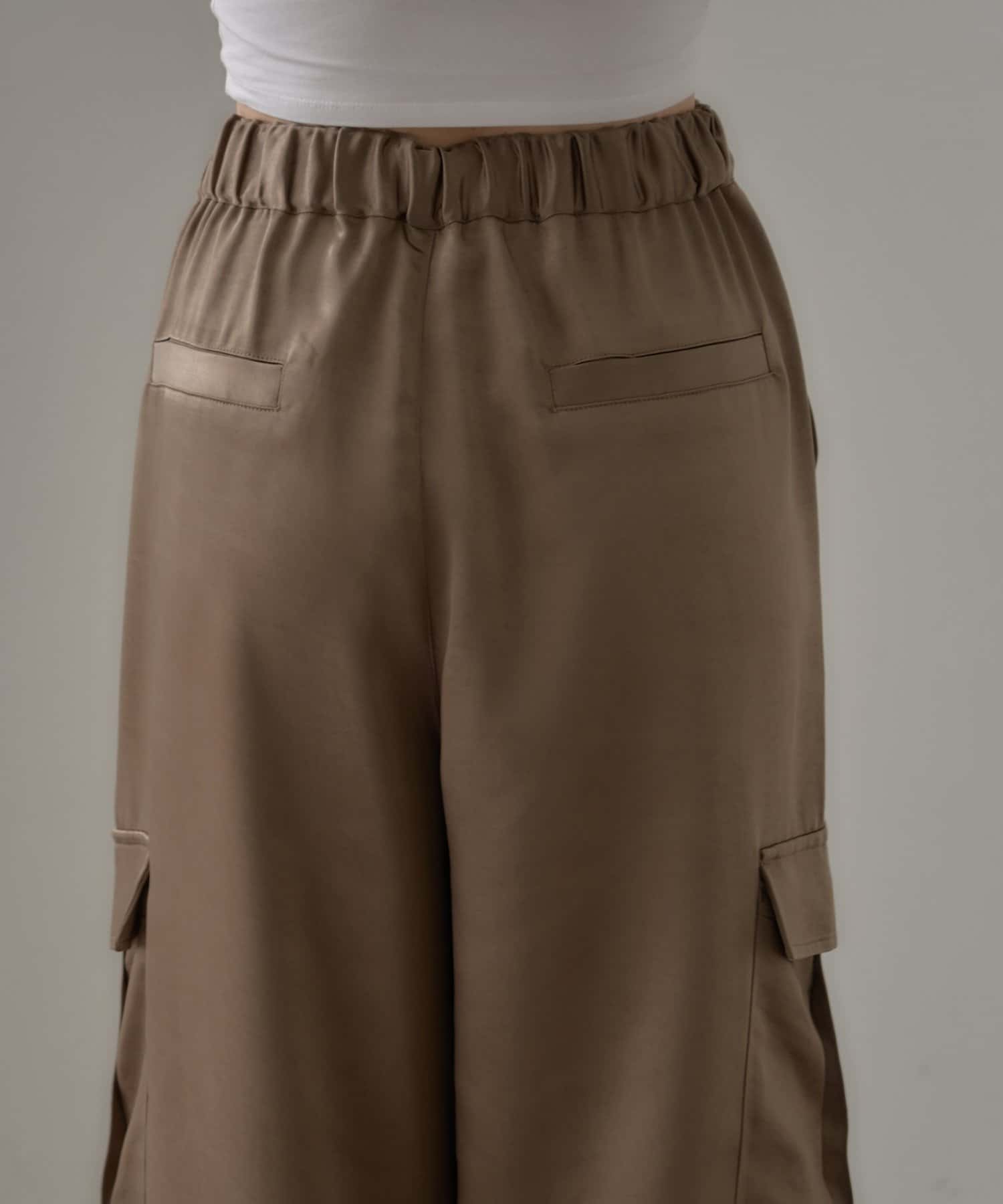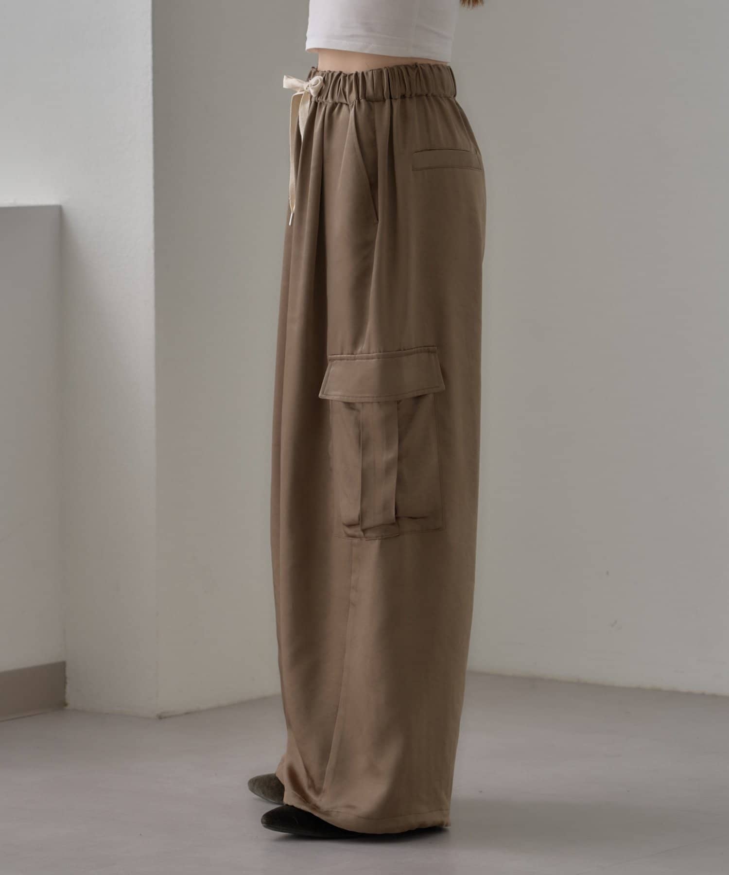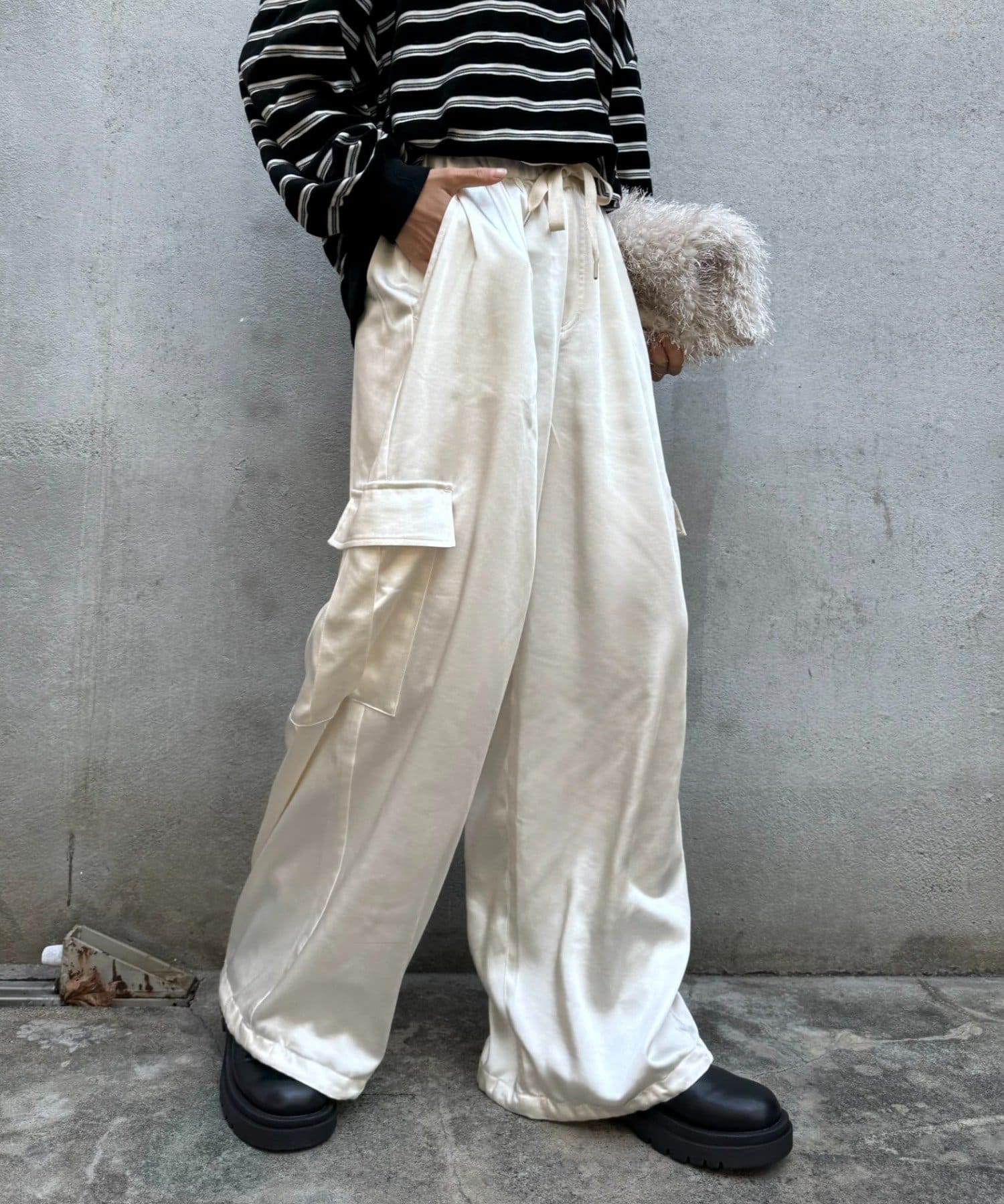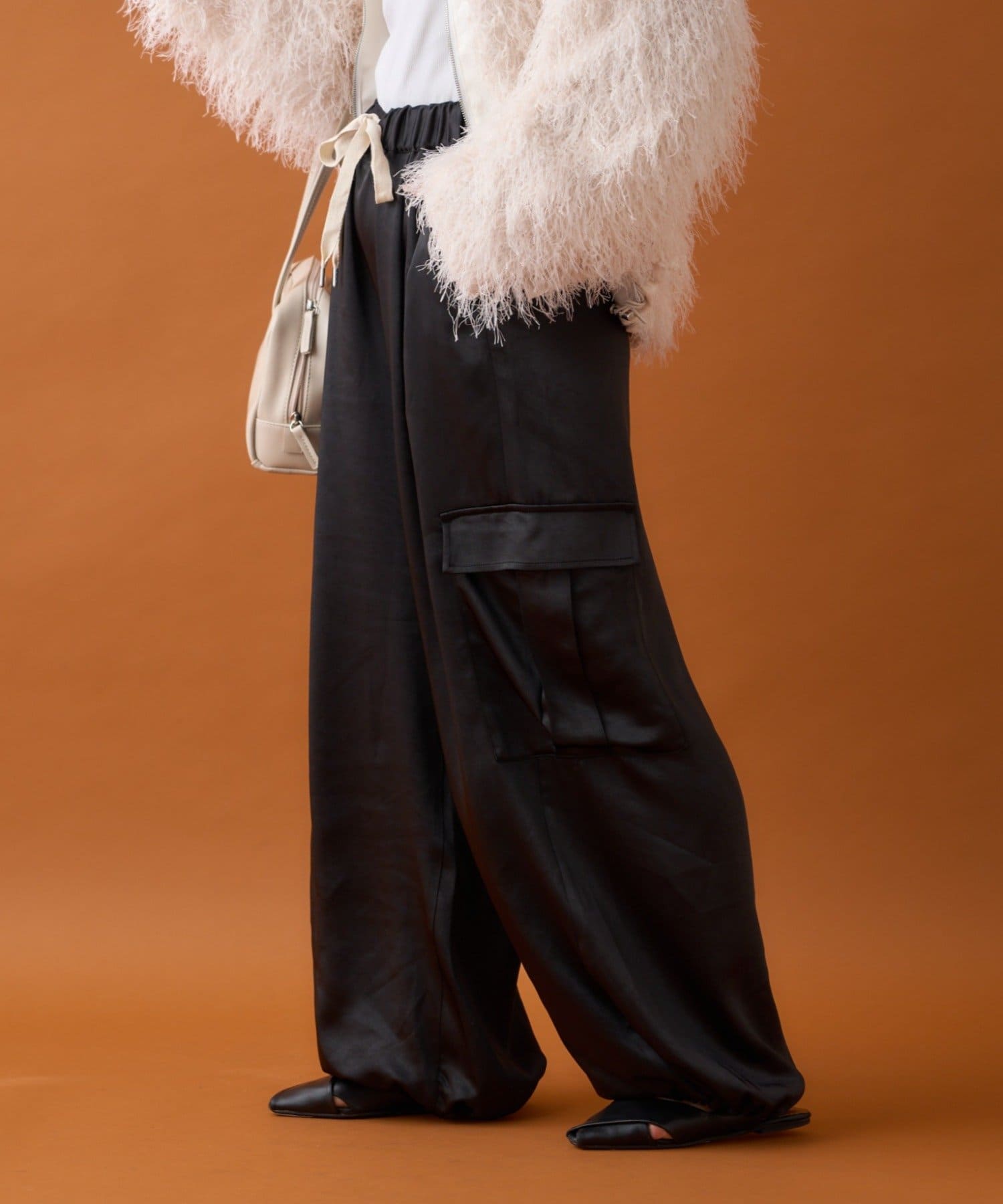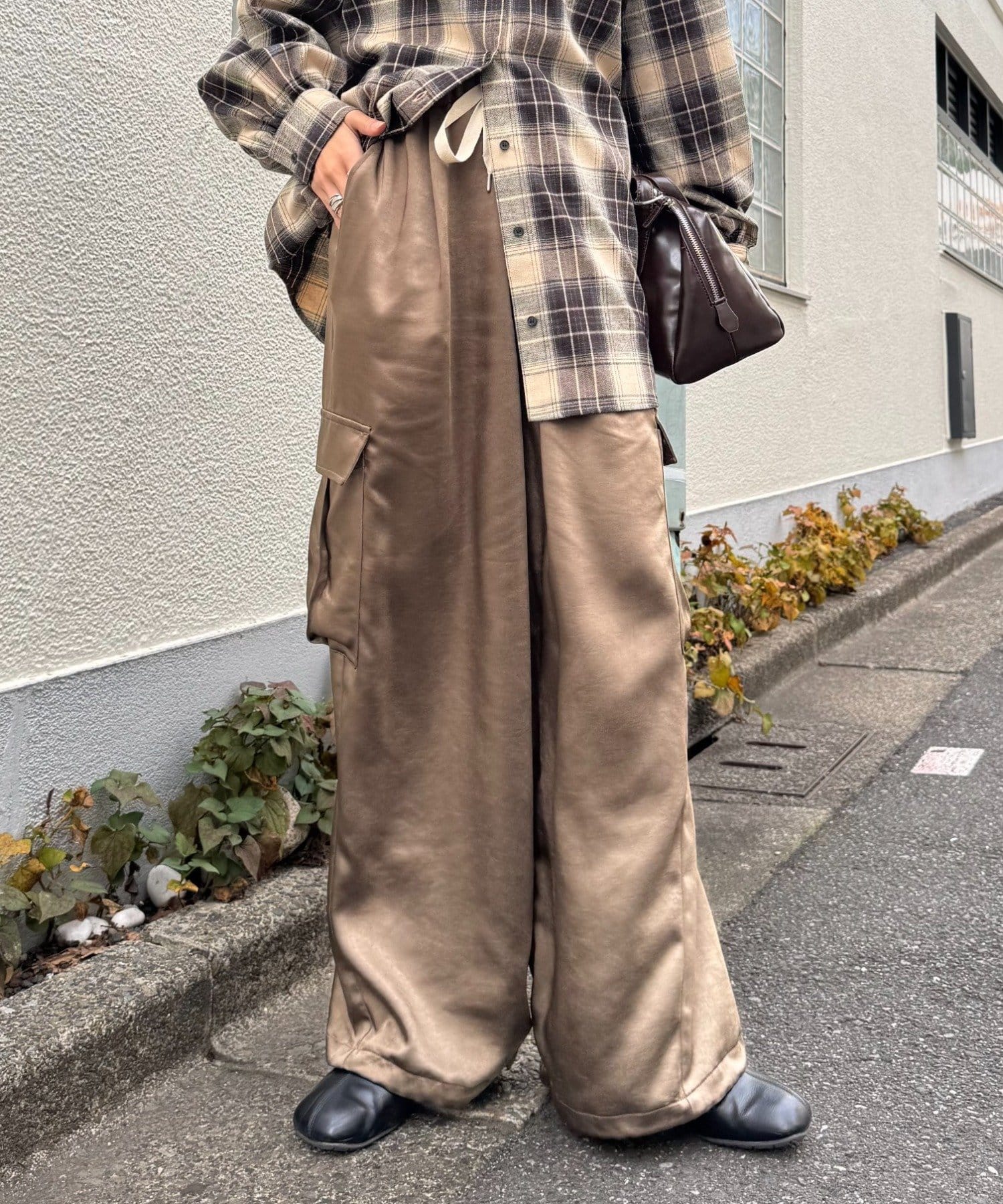 上品な光沢感が女性らしさを演出してくれるカーゴパンツが登場。