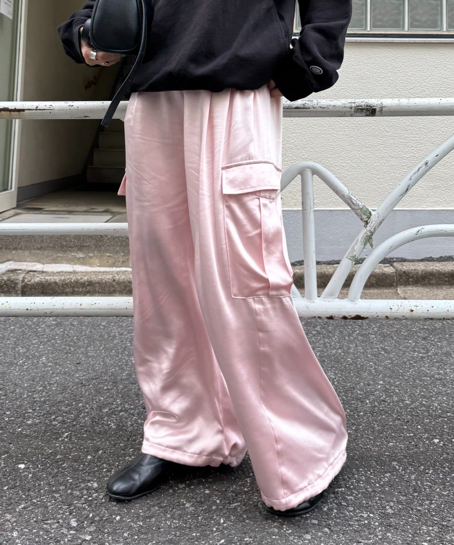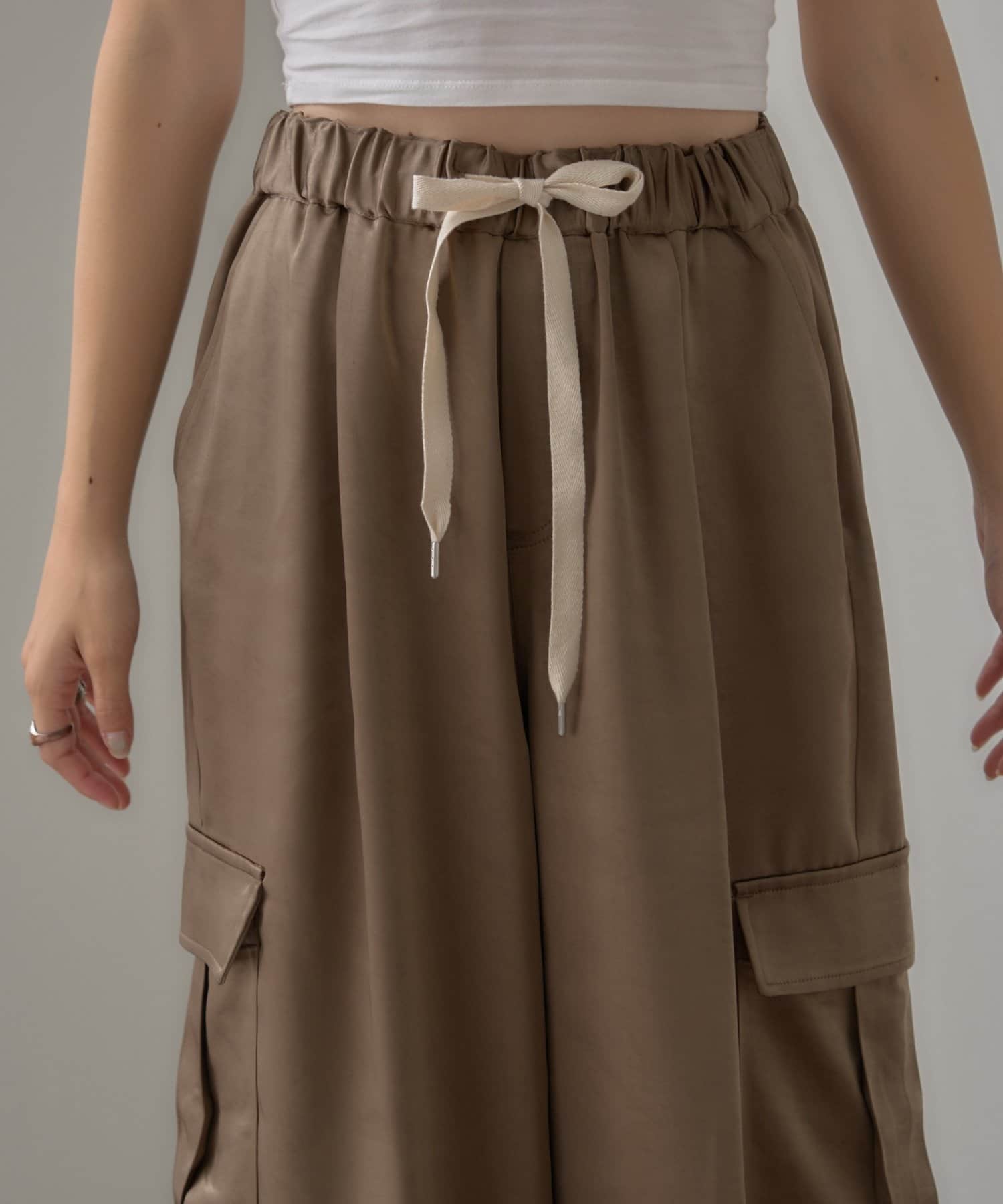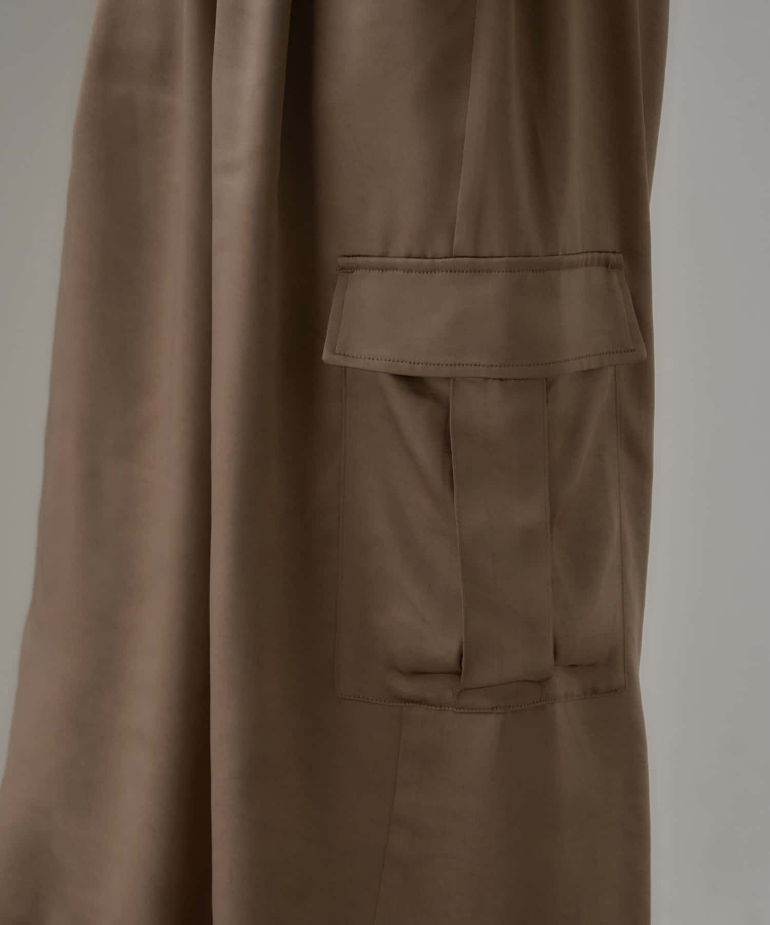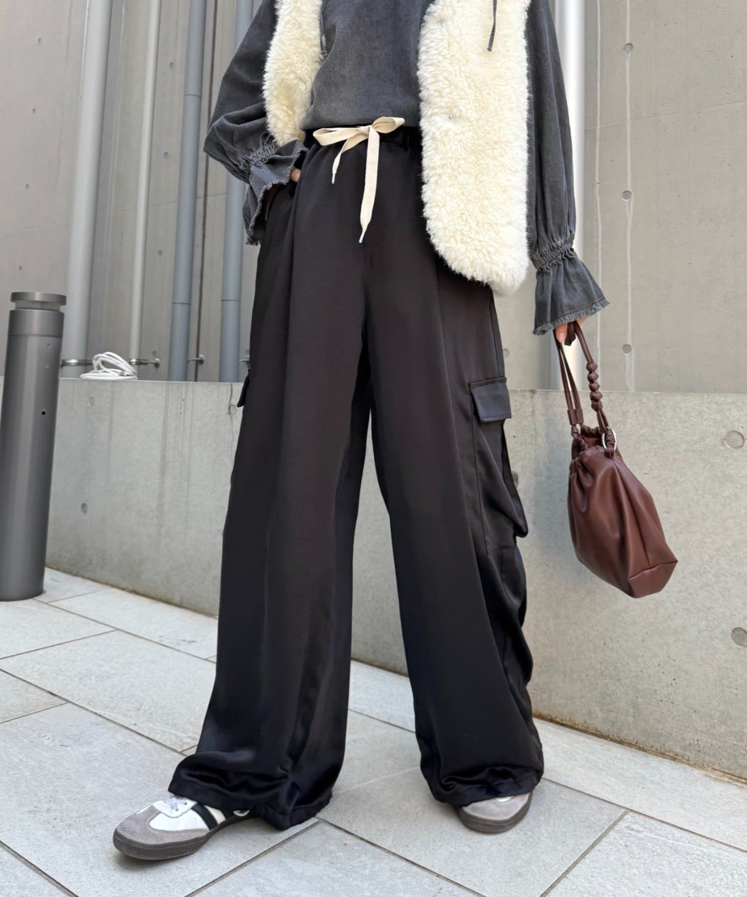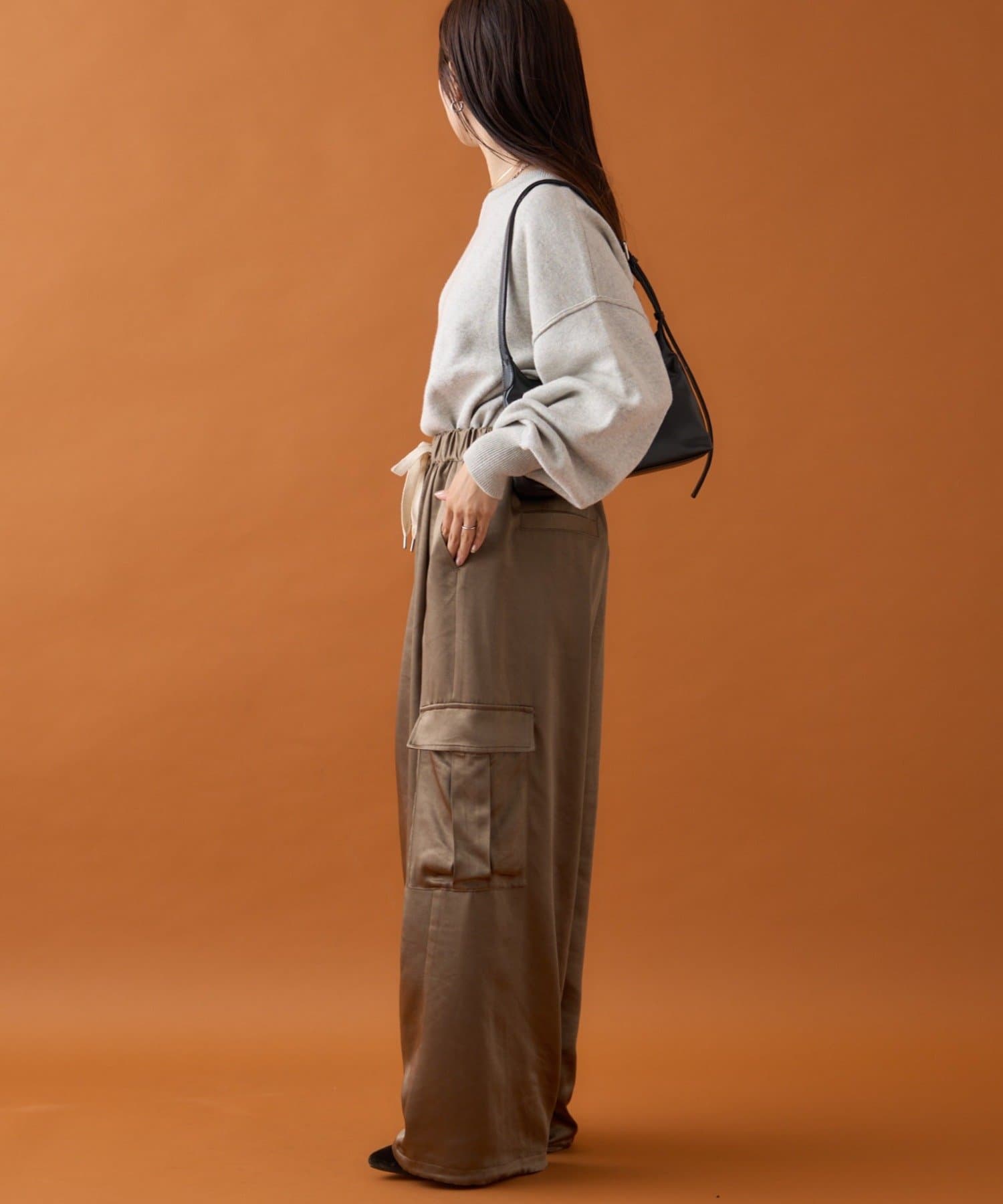 上品な光沢感が女性らしさを演出してくれるカーゴパンツが登場。