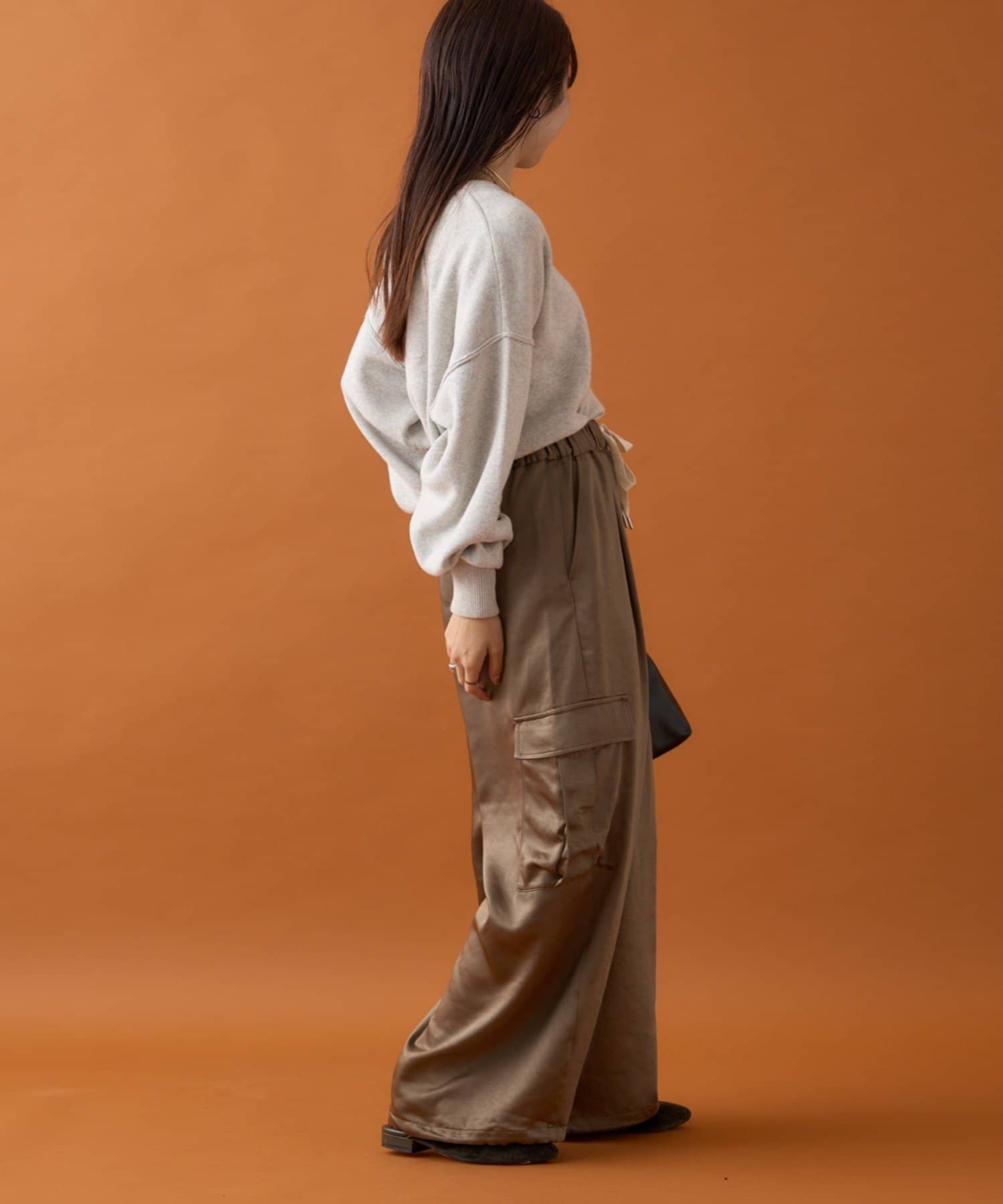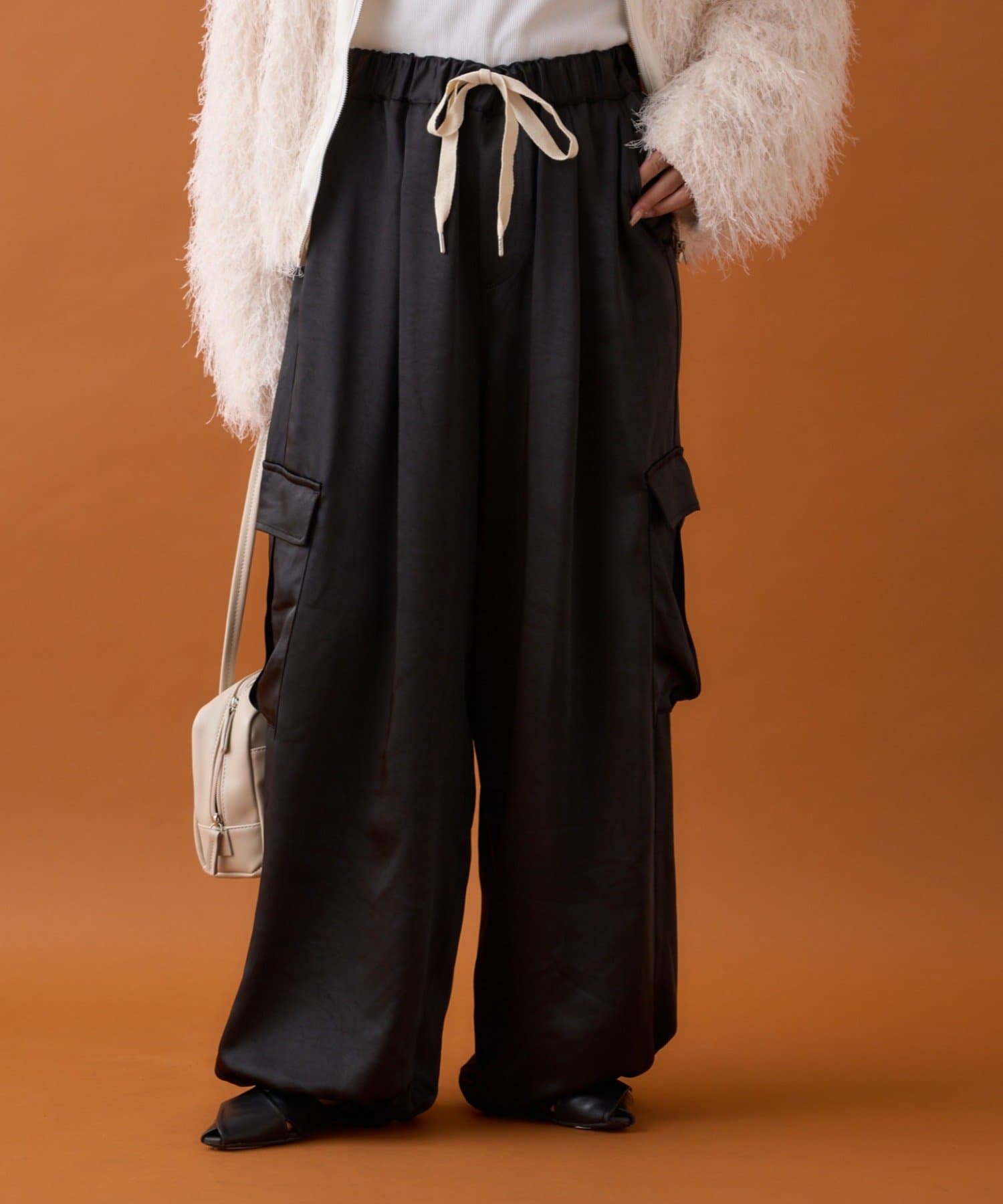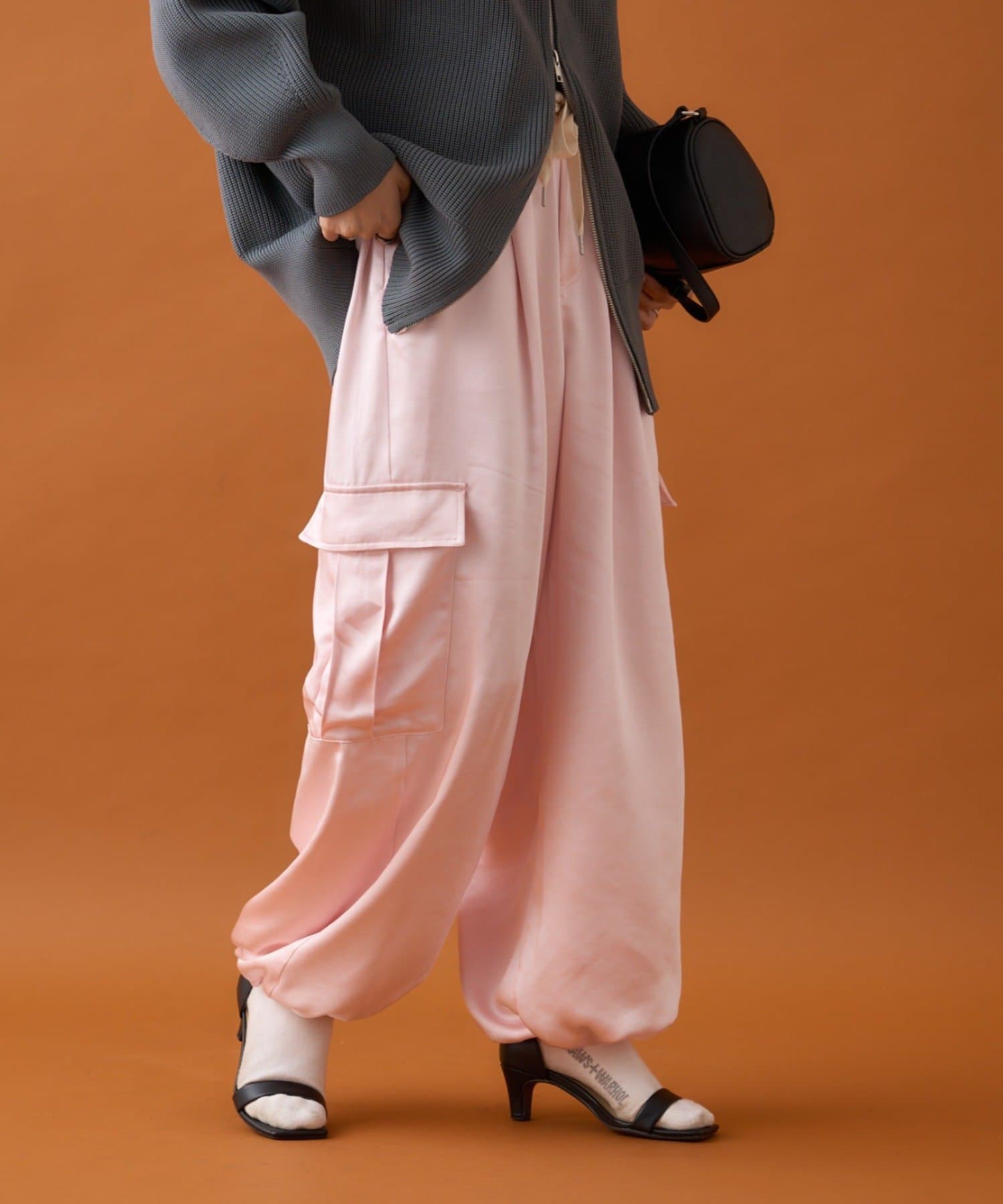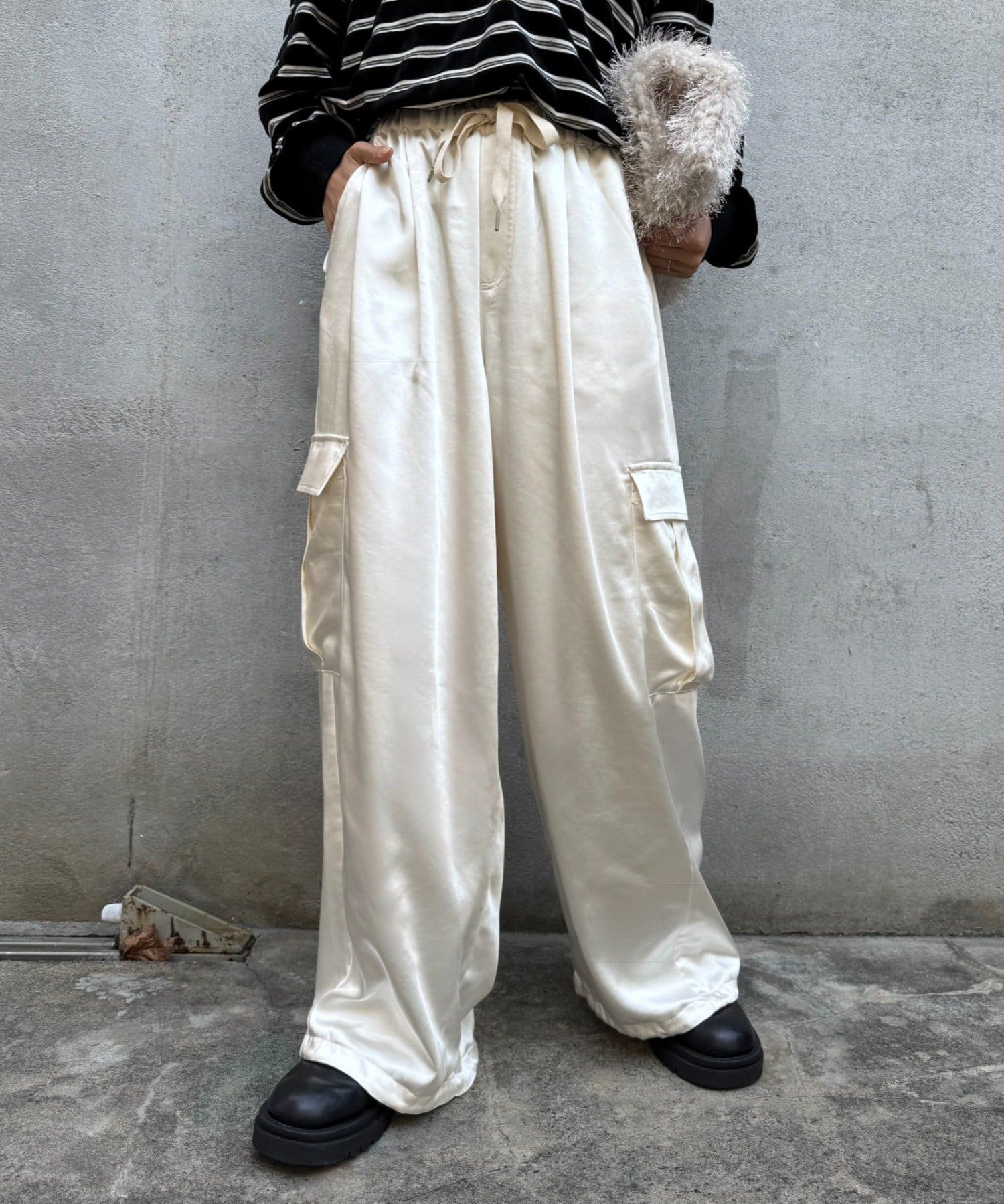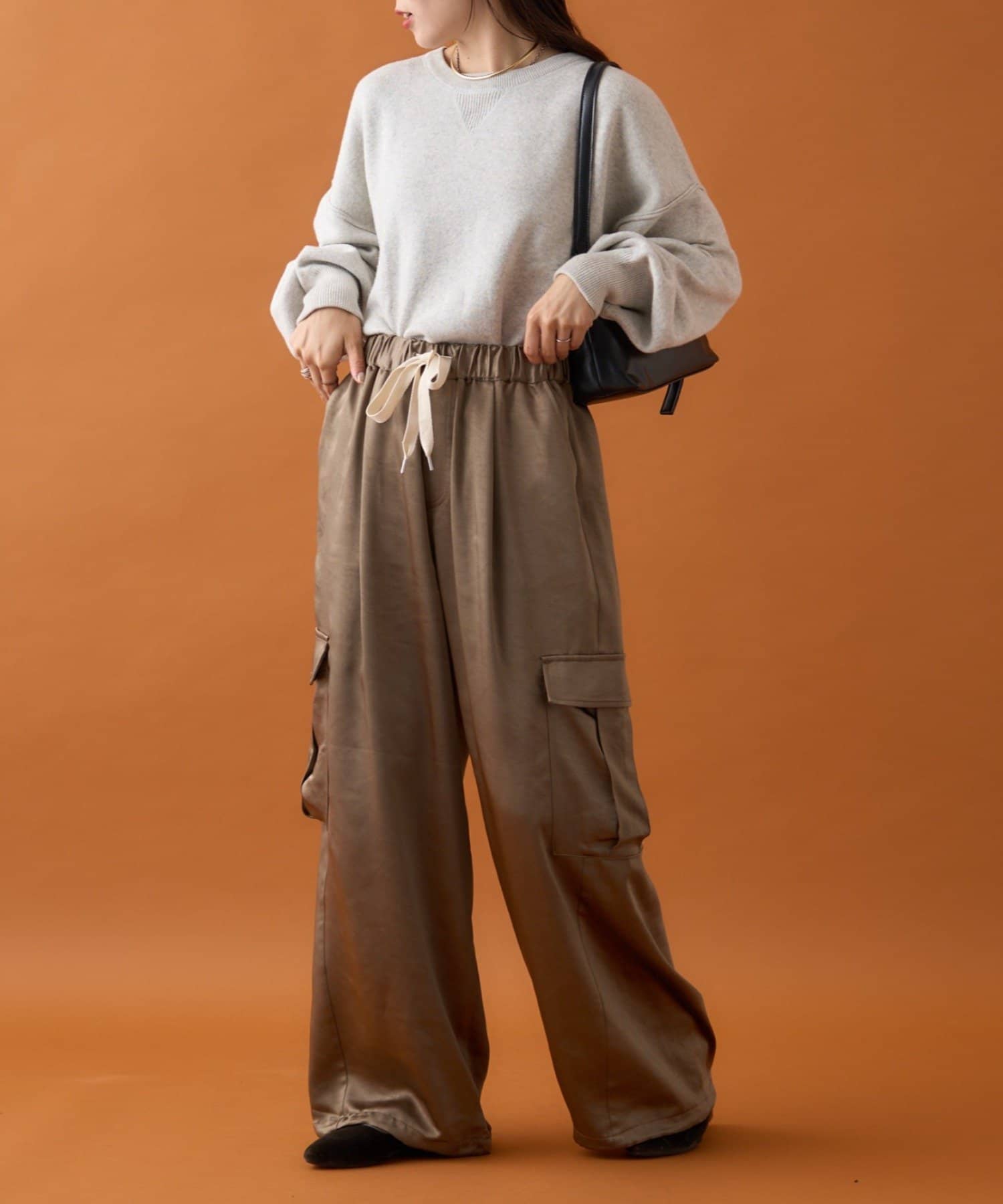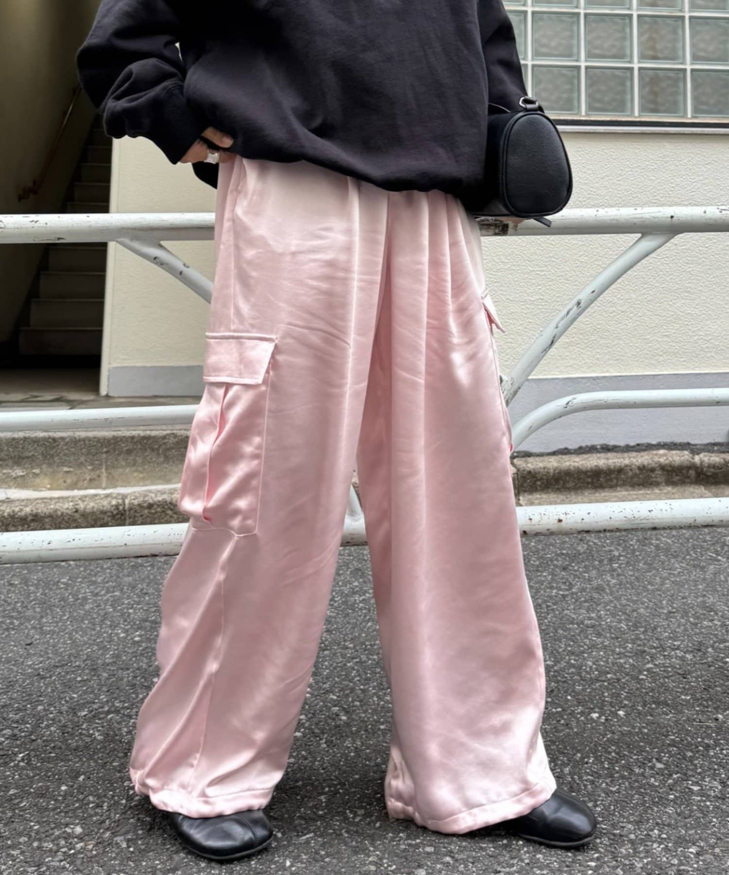 上品な光沢感が女性らしさを演出してくれるカーゴパンツが登場。