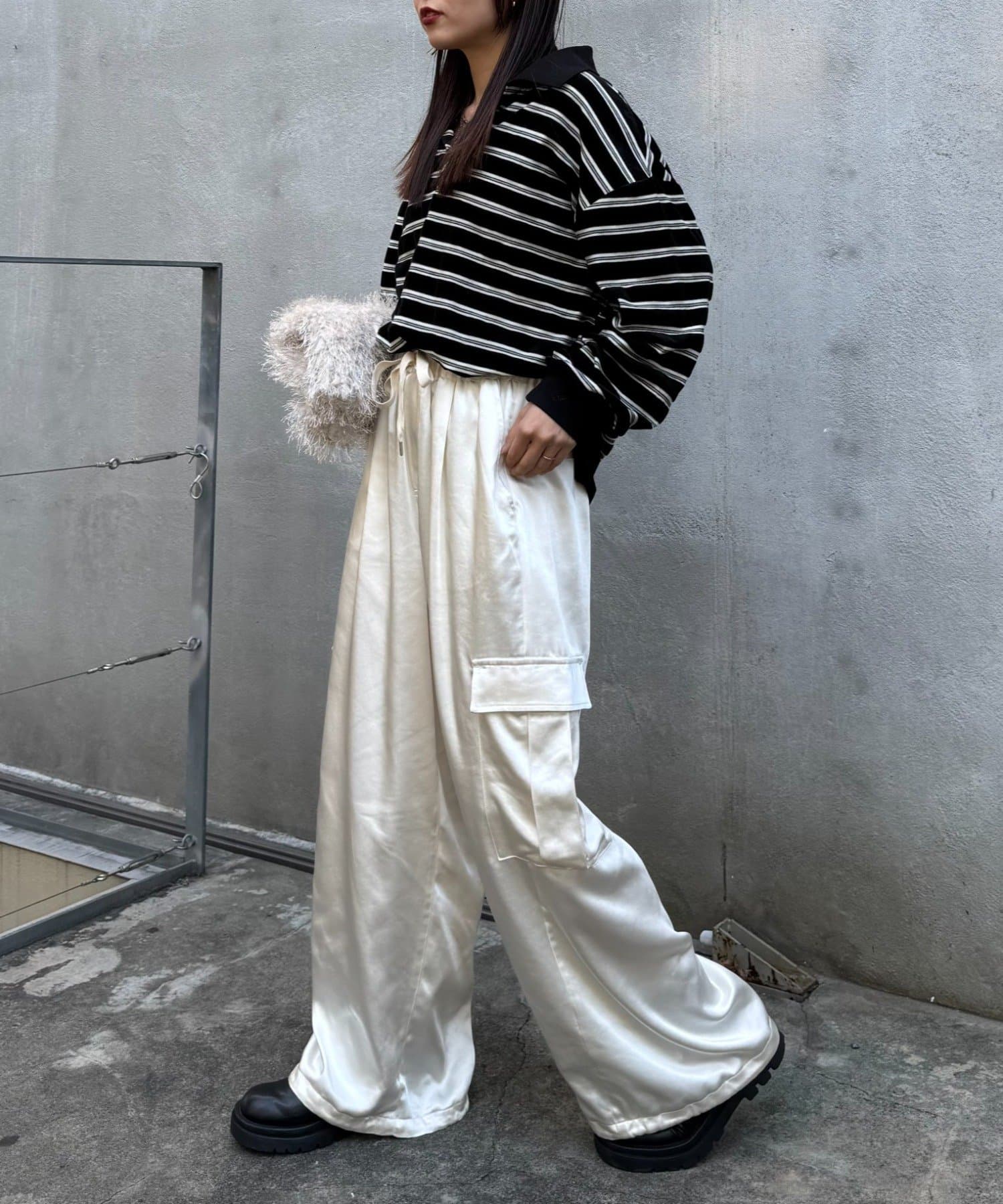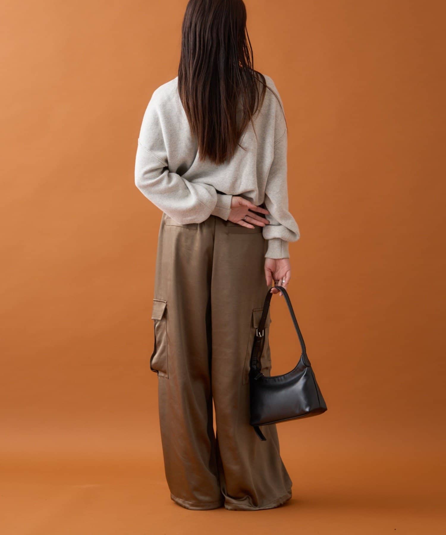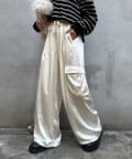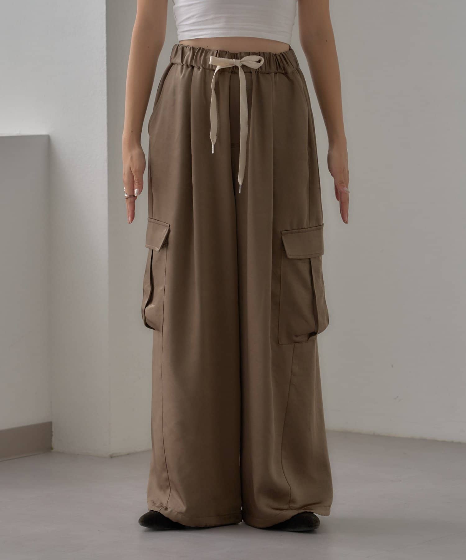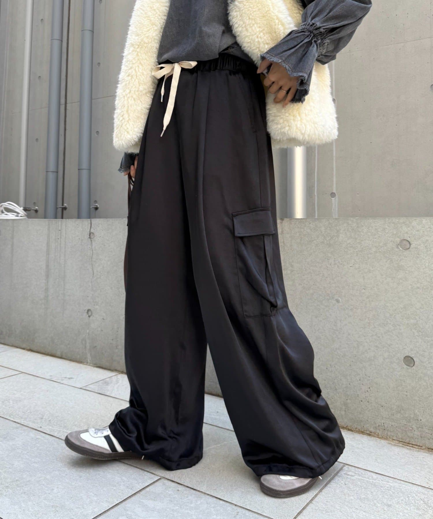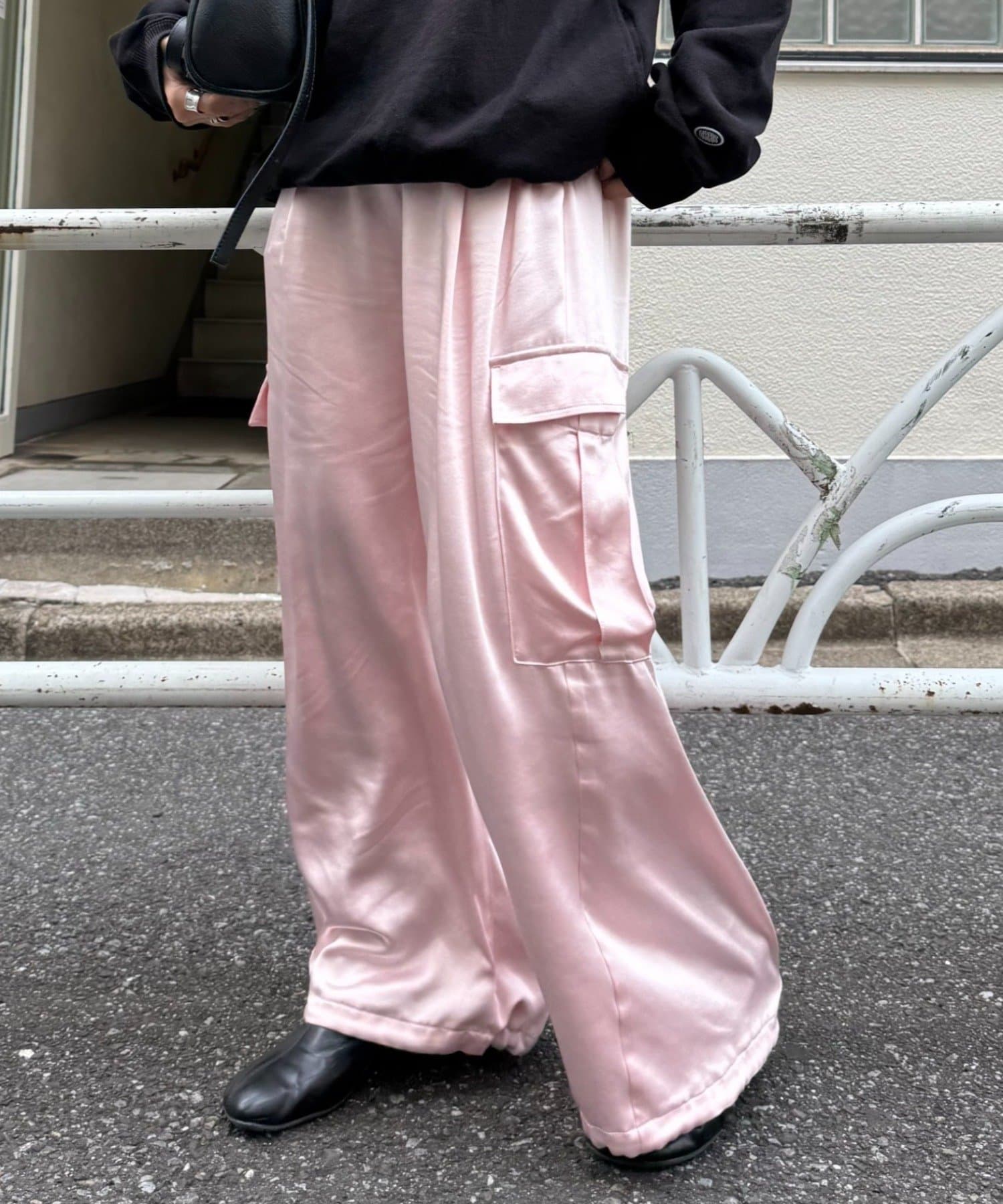 上品な光沢感が女性らしさを演出してくれるカーゴパンツが登場。