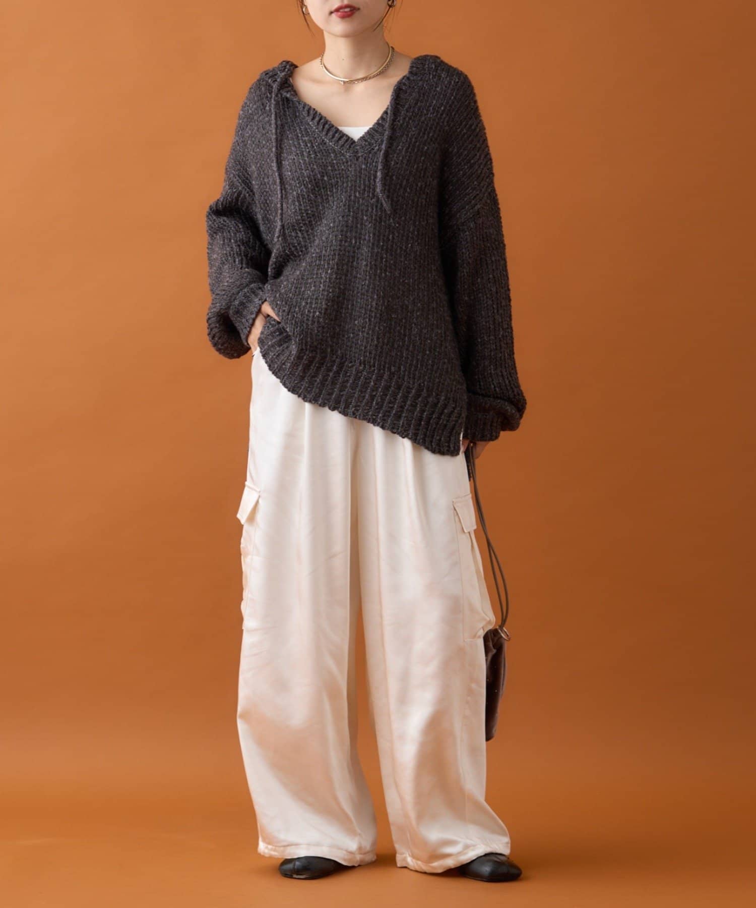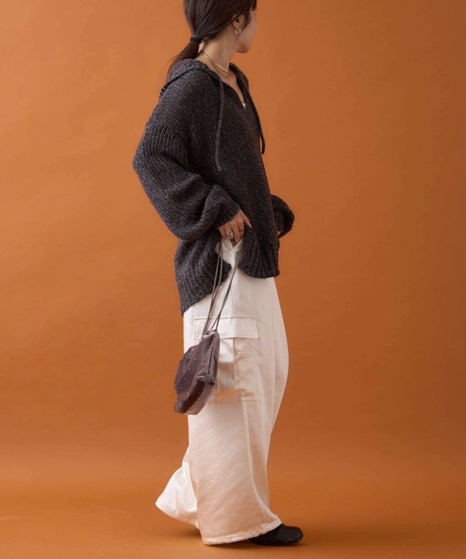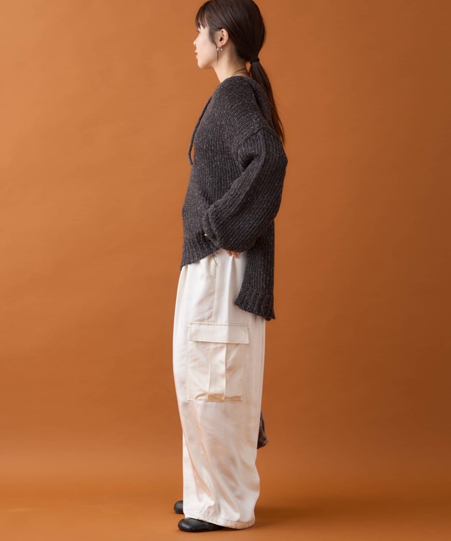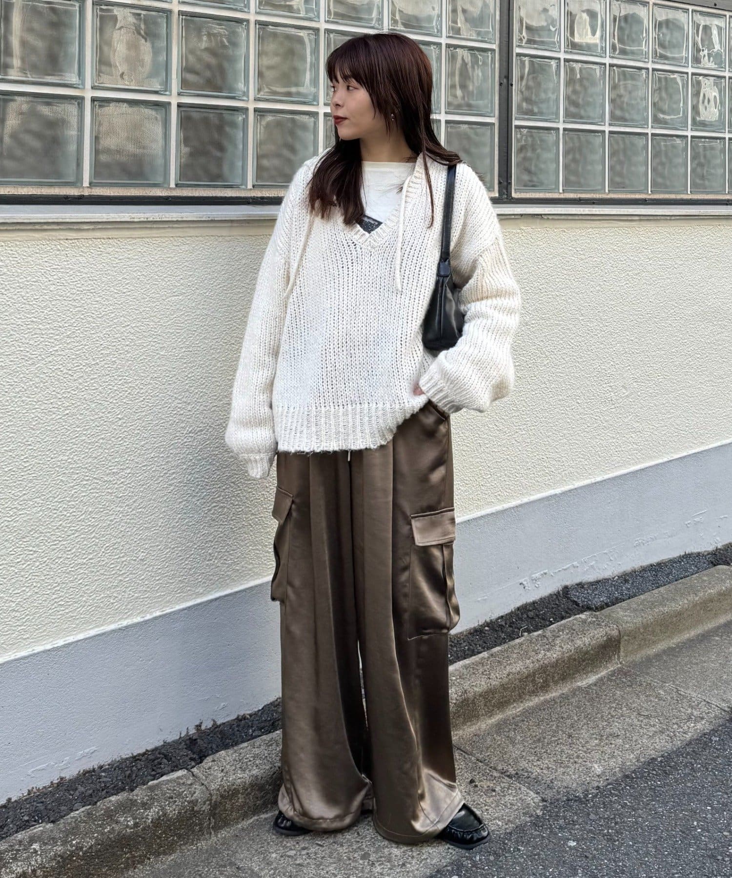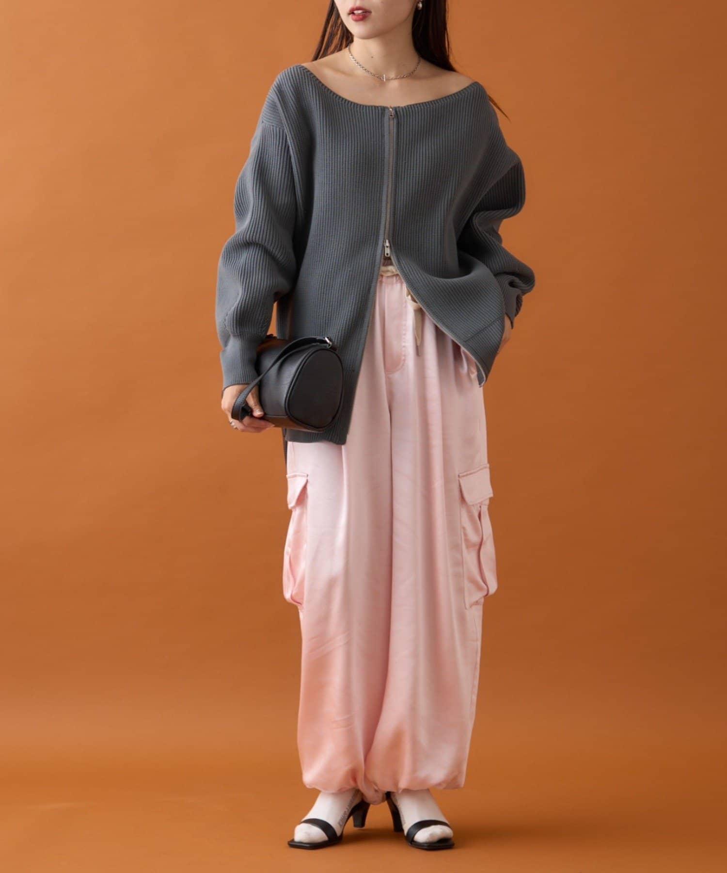 上品な光沢感が女性らしさを演出してくれるカーゴパンツが登場。