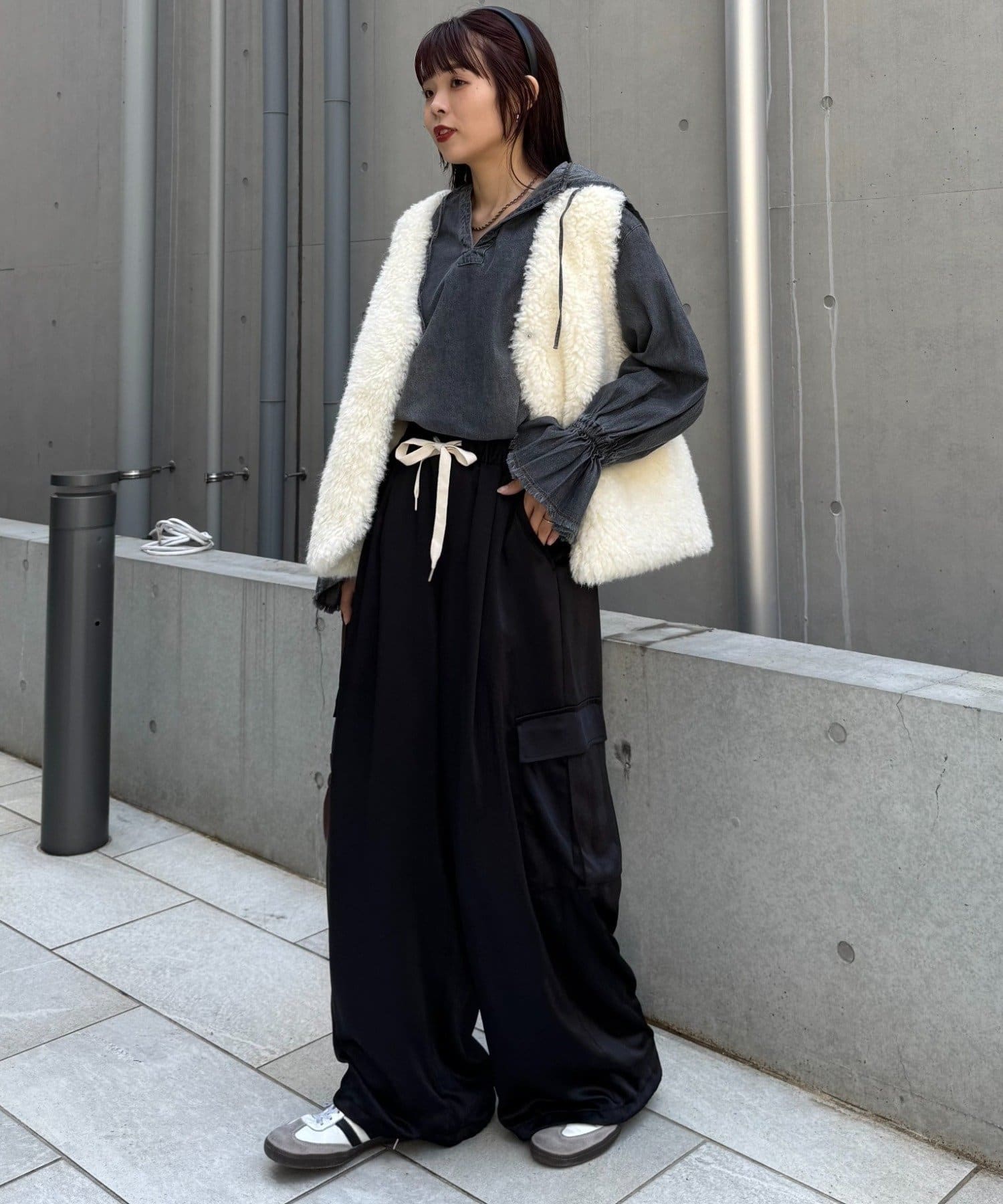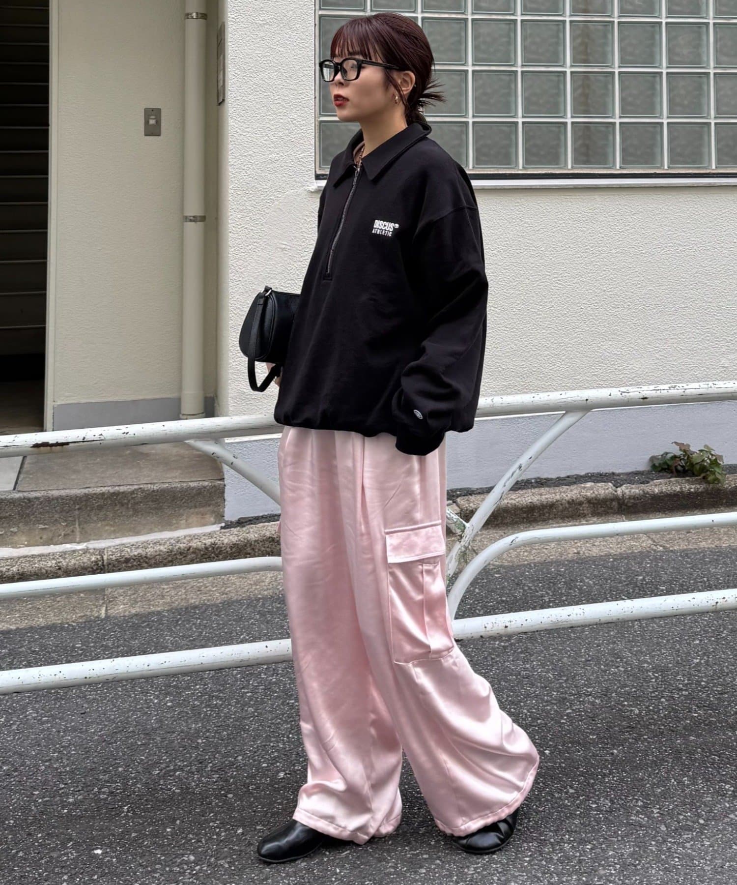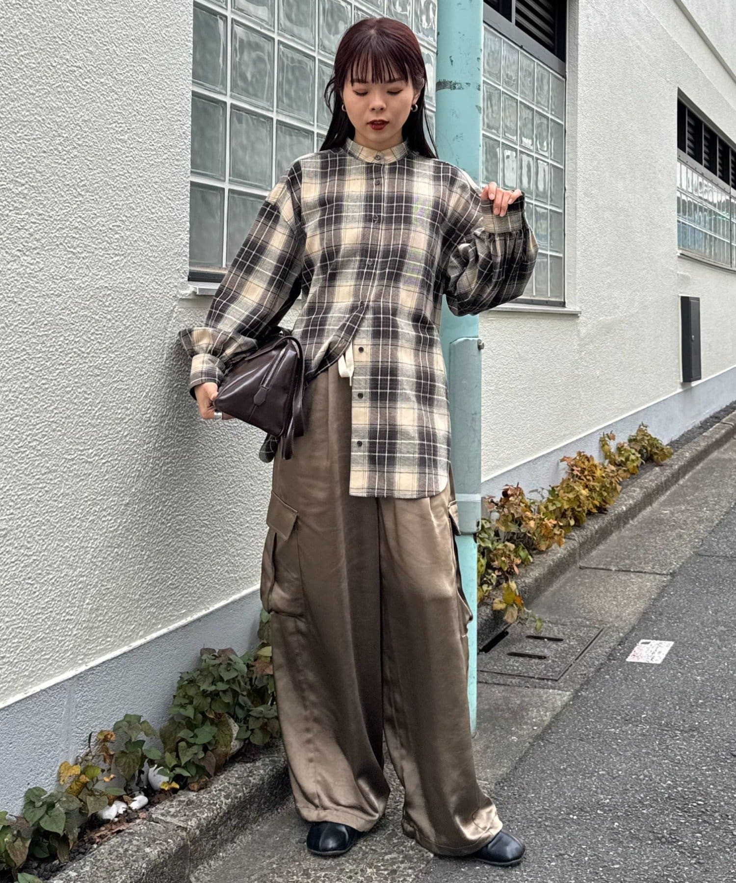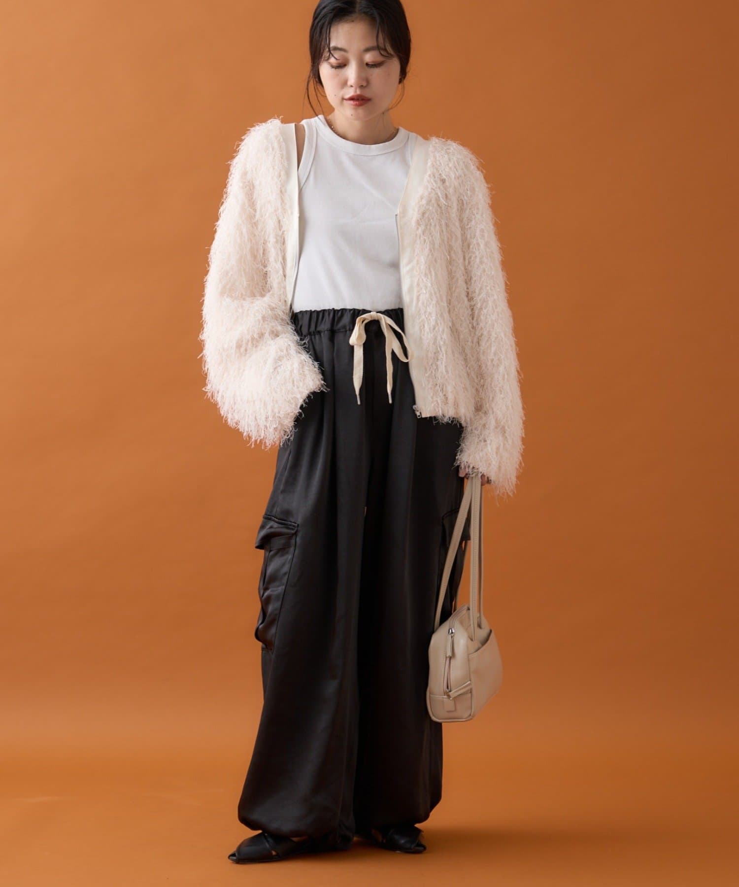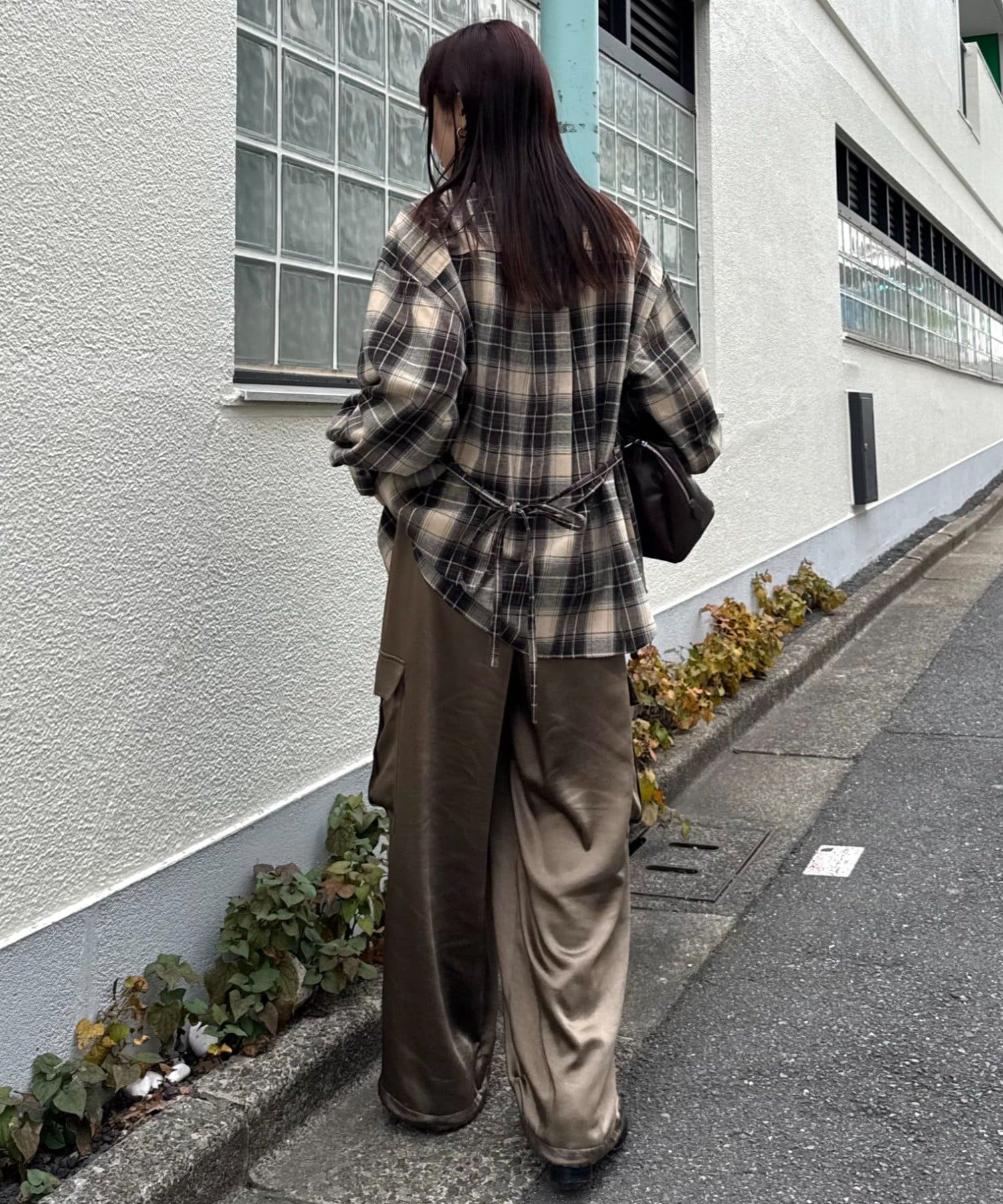 上品な光沢感が女性らしさを演出してくれるカーゴパンツが登場。