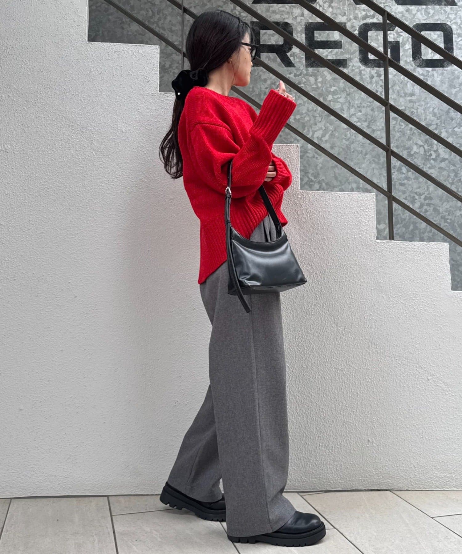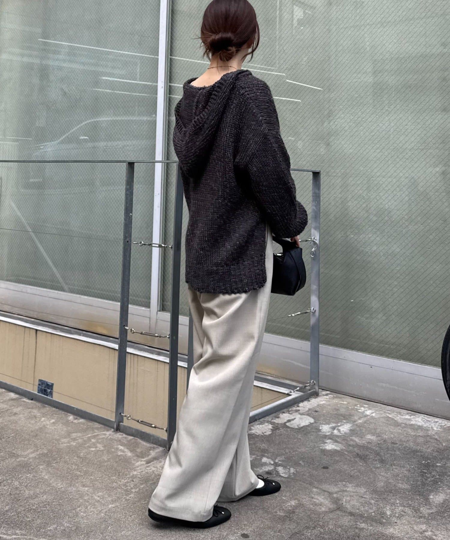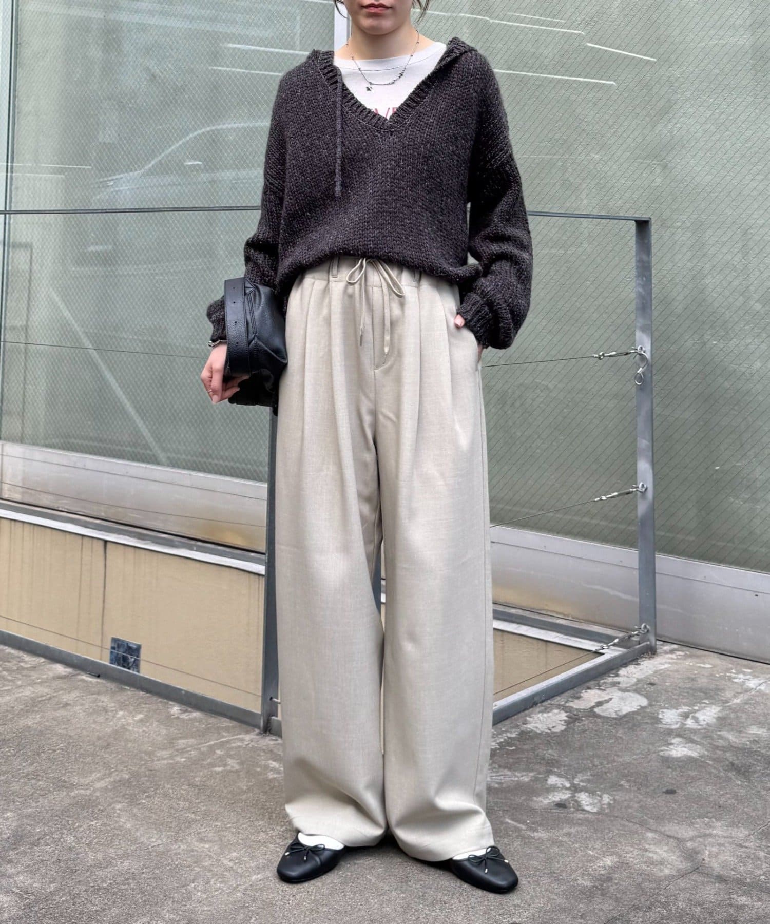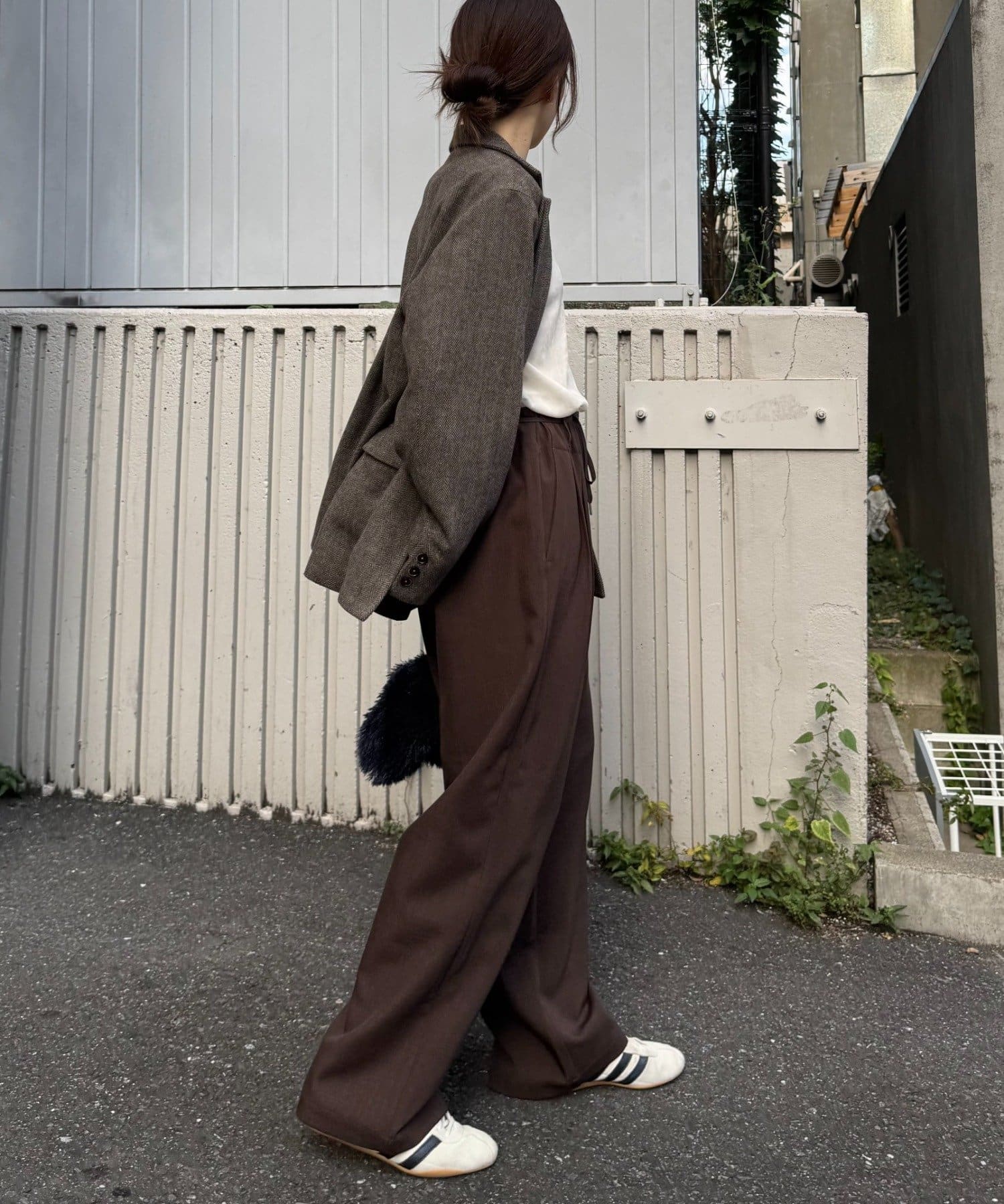 ワイドシルエットなので足元はスニーカーでラフにまとめても、ローファーやブーツで上品に格上げしても相性抜群。
