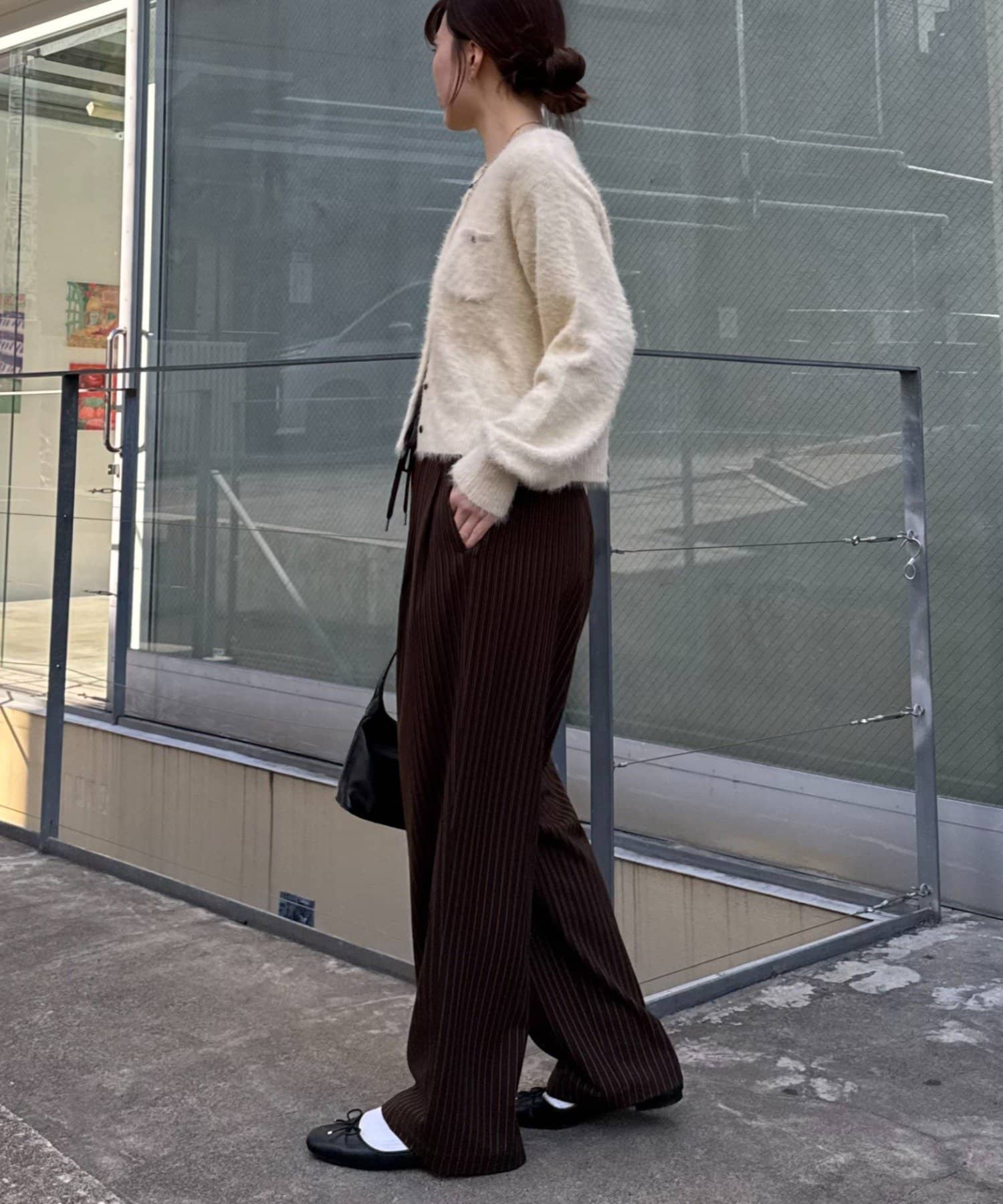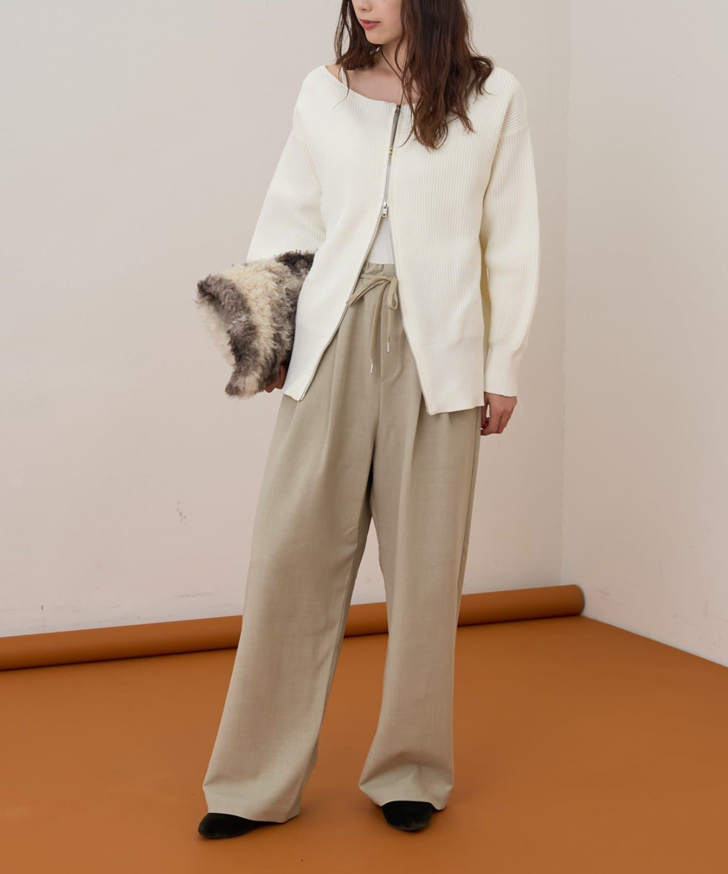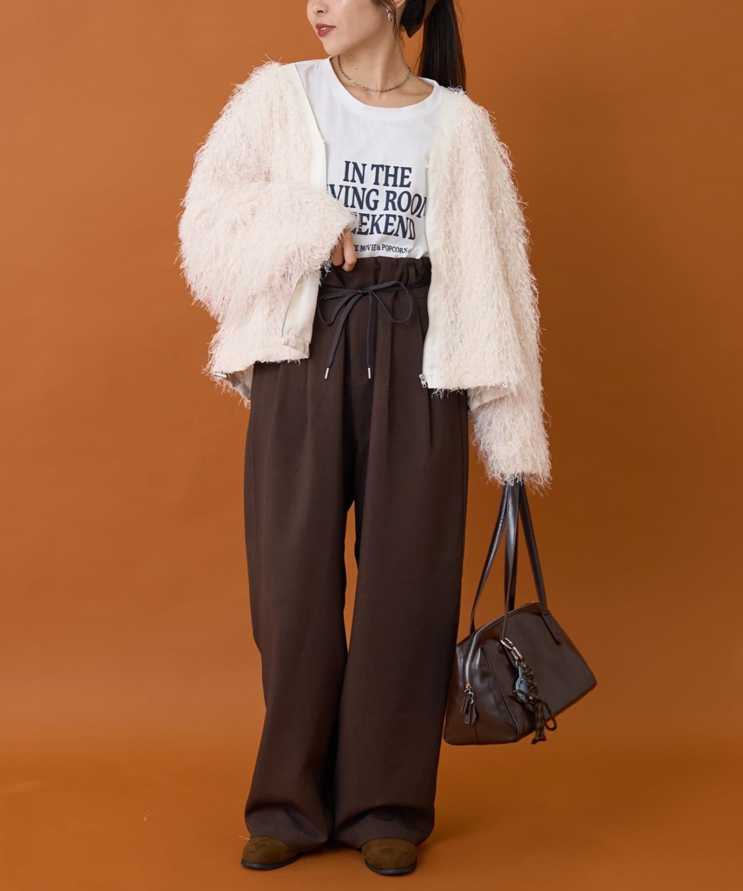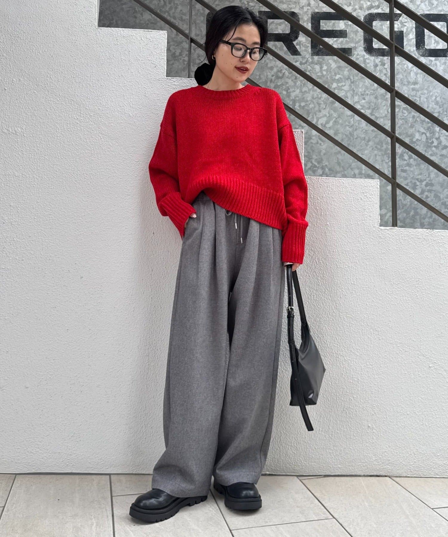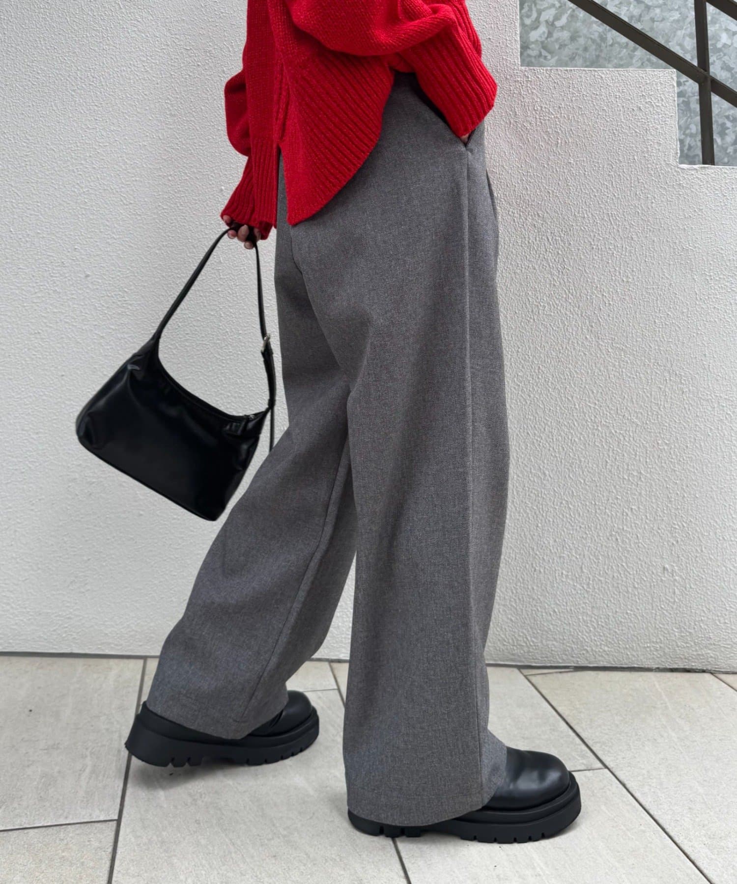 ワイドシルエットなので足元はスニーカーでラフにまとめても、ローファーやブーツで上品に格上げしても相性抜群。