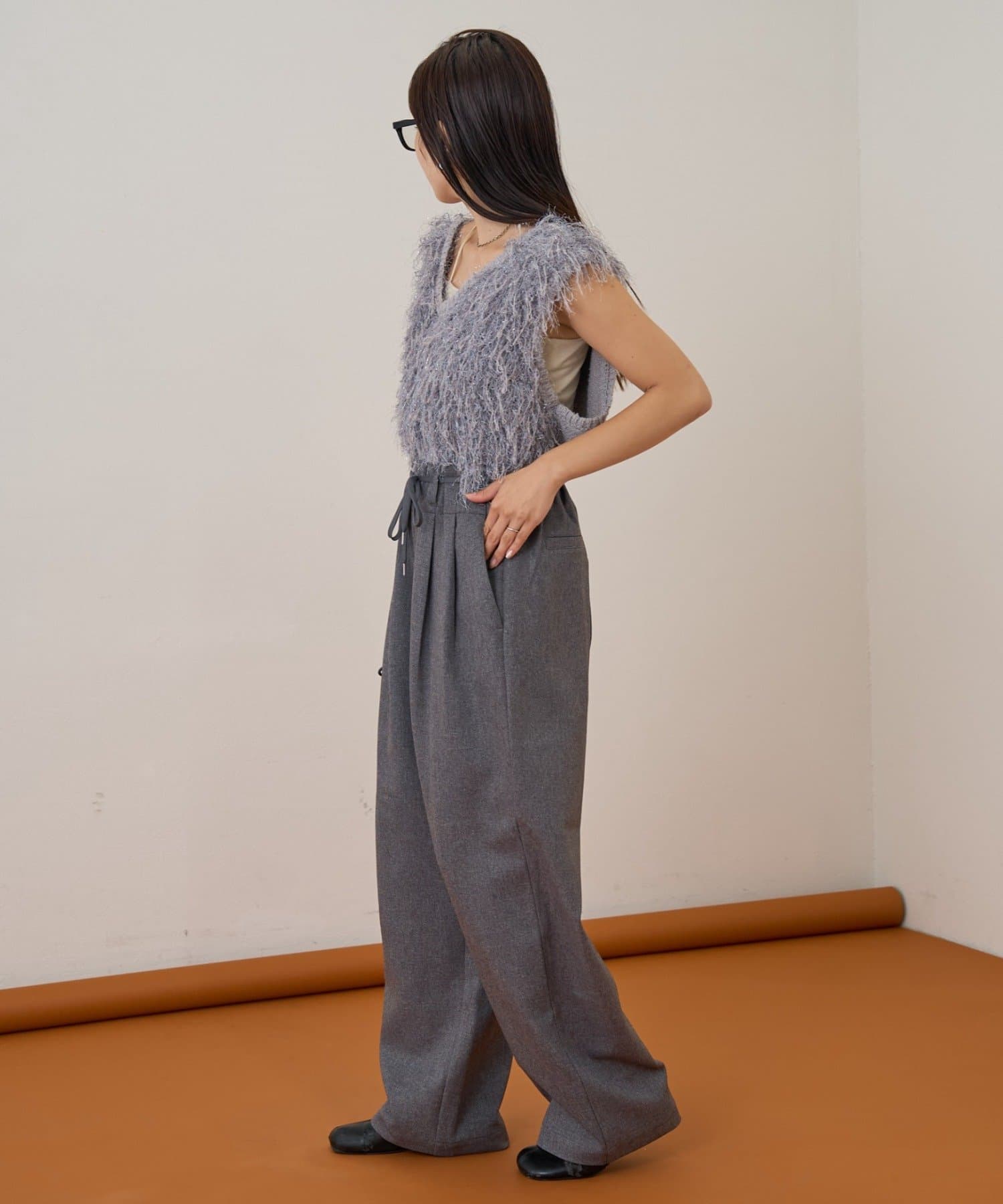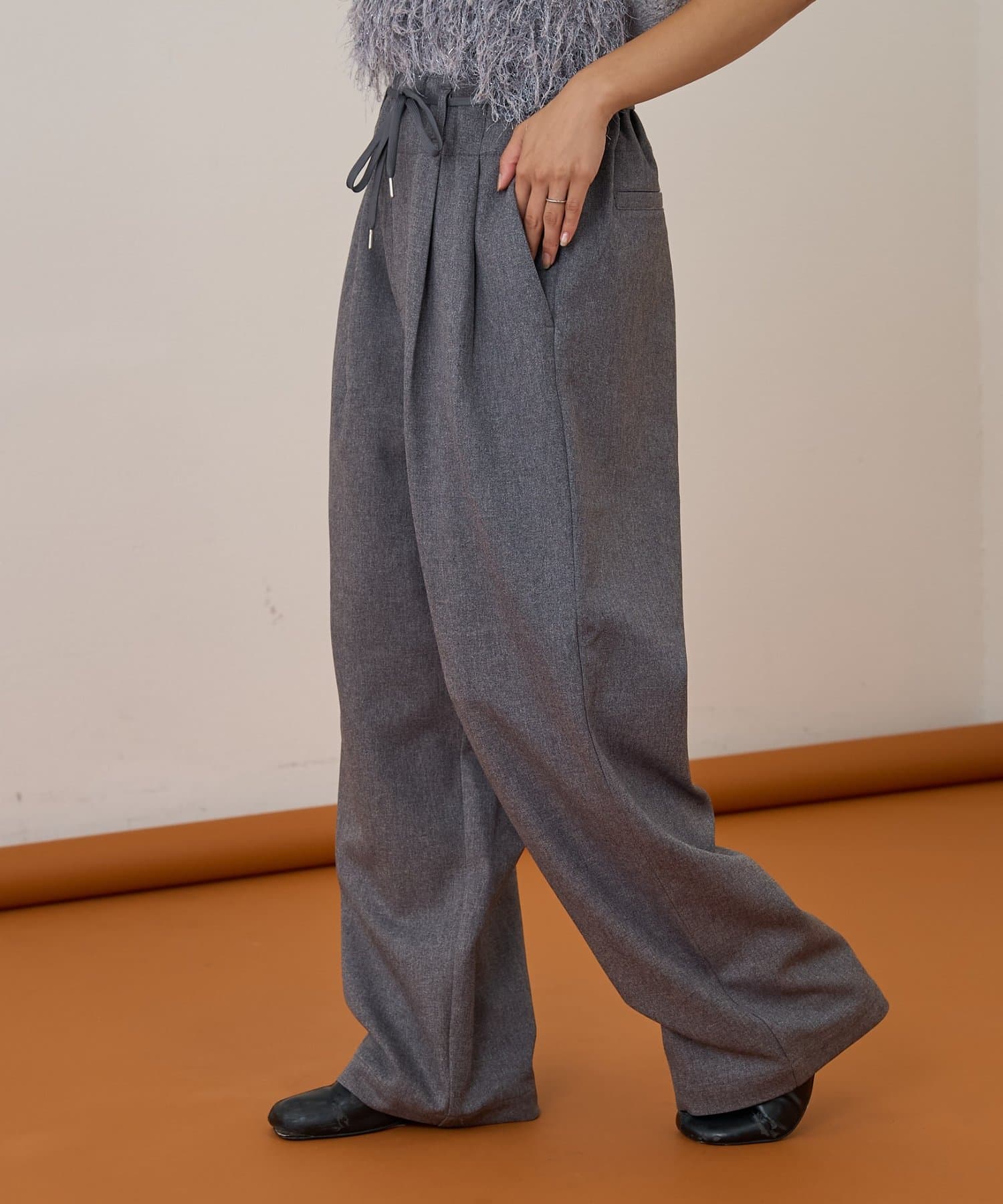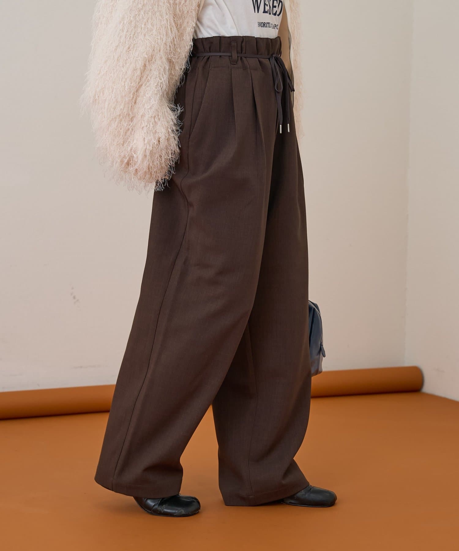 【ウエストスッキリ!】紐ベルト付きタックワイドイージースラックス