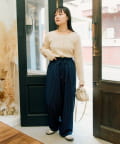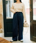 コンパクトなトップスに合わせて、紐ベルトでウエストをキュッと締めると今っぽいメリハリあるバランスに。