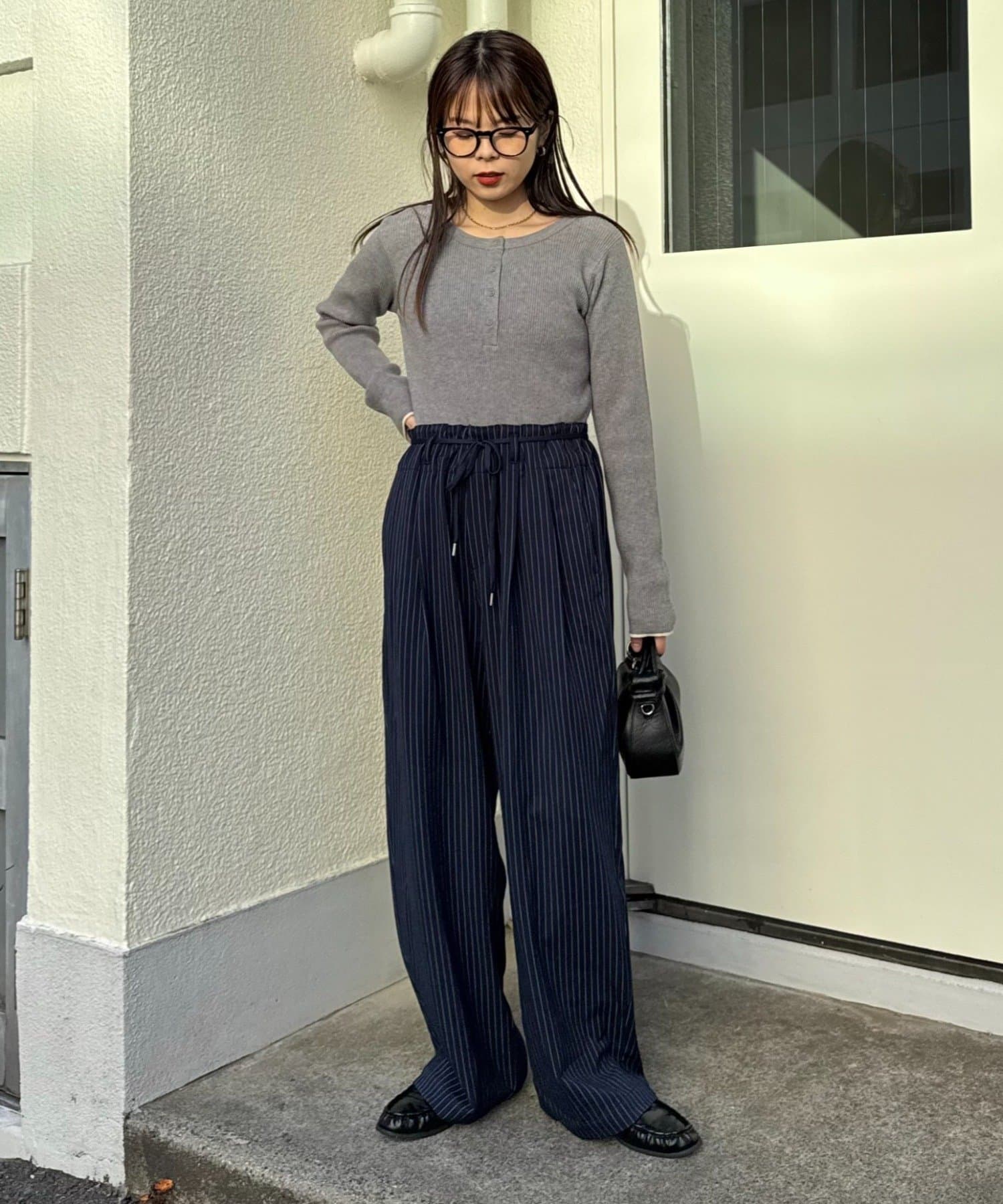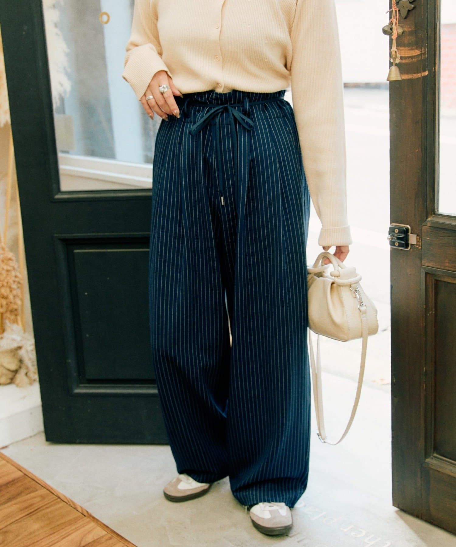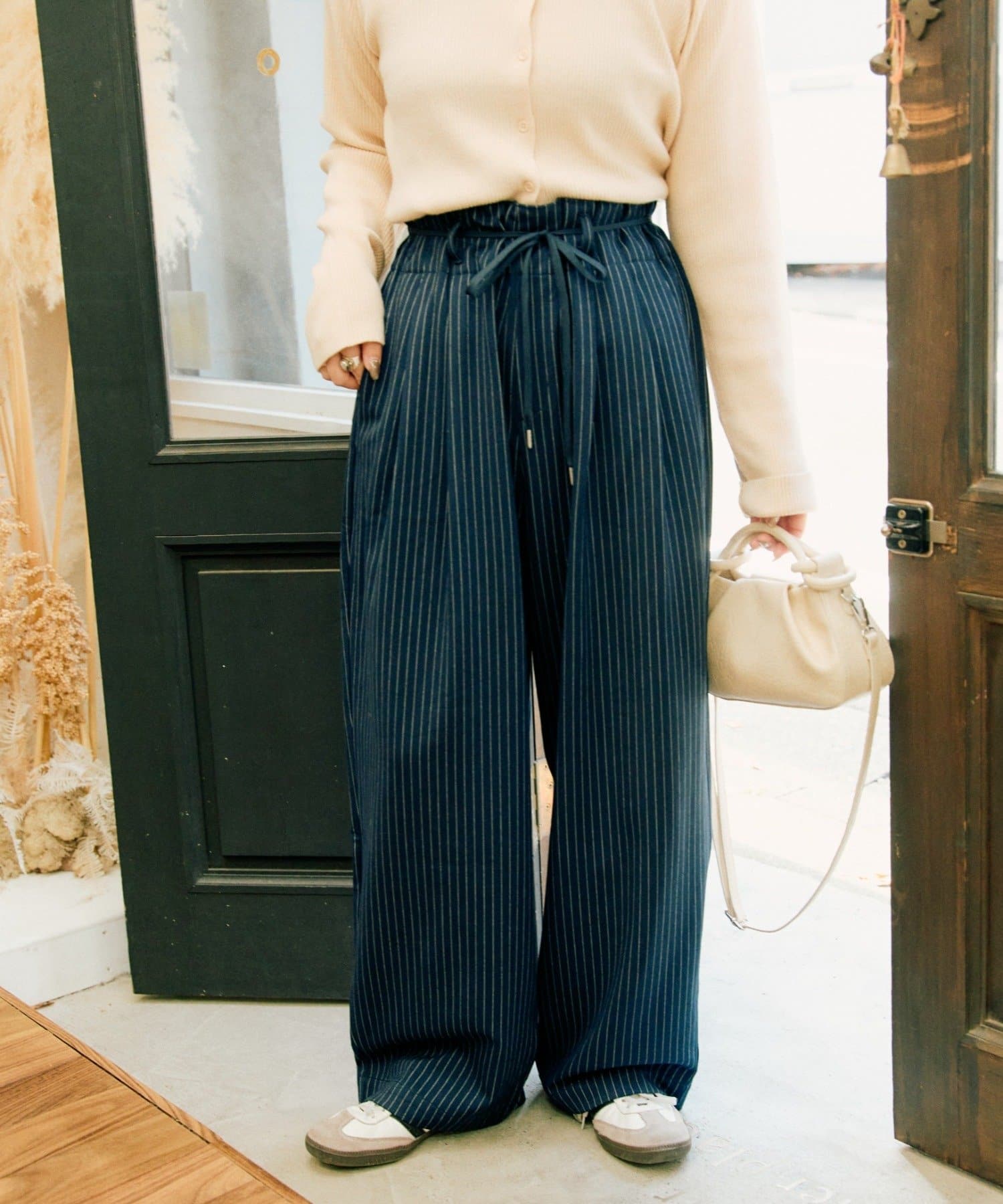ワイドシルエットなので足元はスニーカーでラフにまとめても、ローファーやブーツで上品に格上げしても相性抜群。