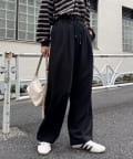 ストレートワイドシルエットで、脚のラインもすっきり細見え◎
