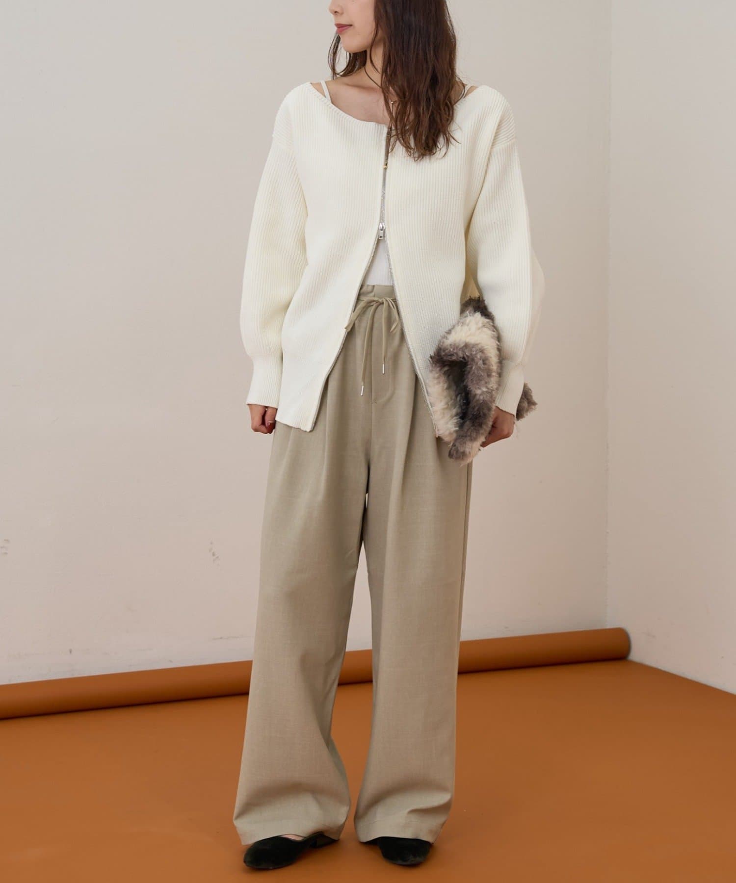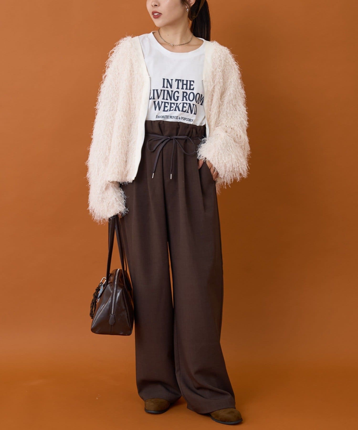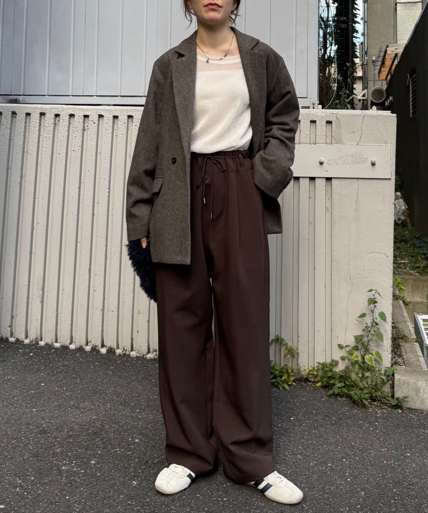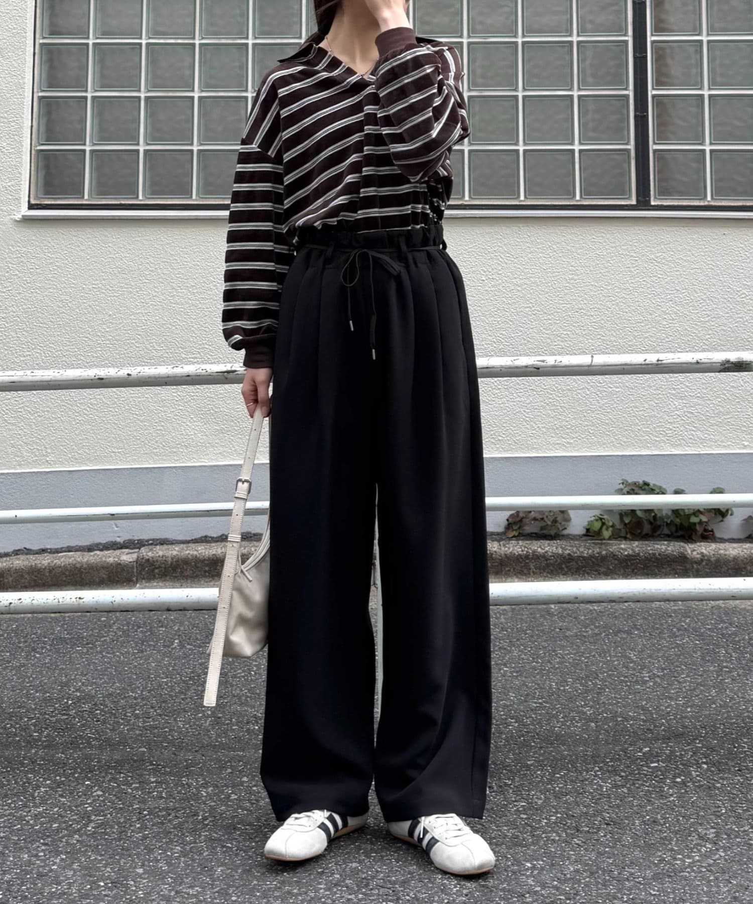 ワイドシルエットなので足元はスニーカーでラフにまとめても、ローファーやブーツで上品に格上げしても相性抜群。