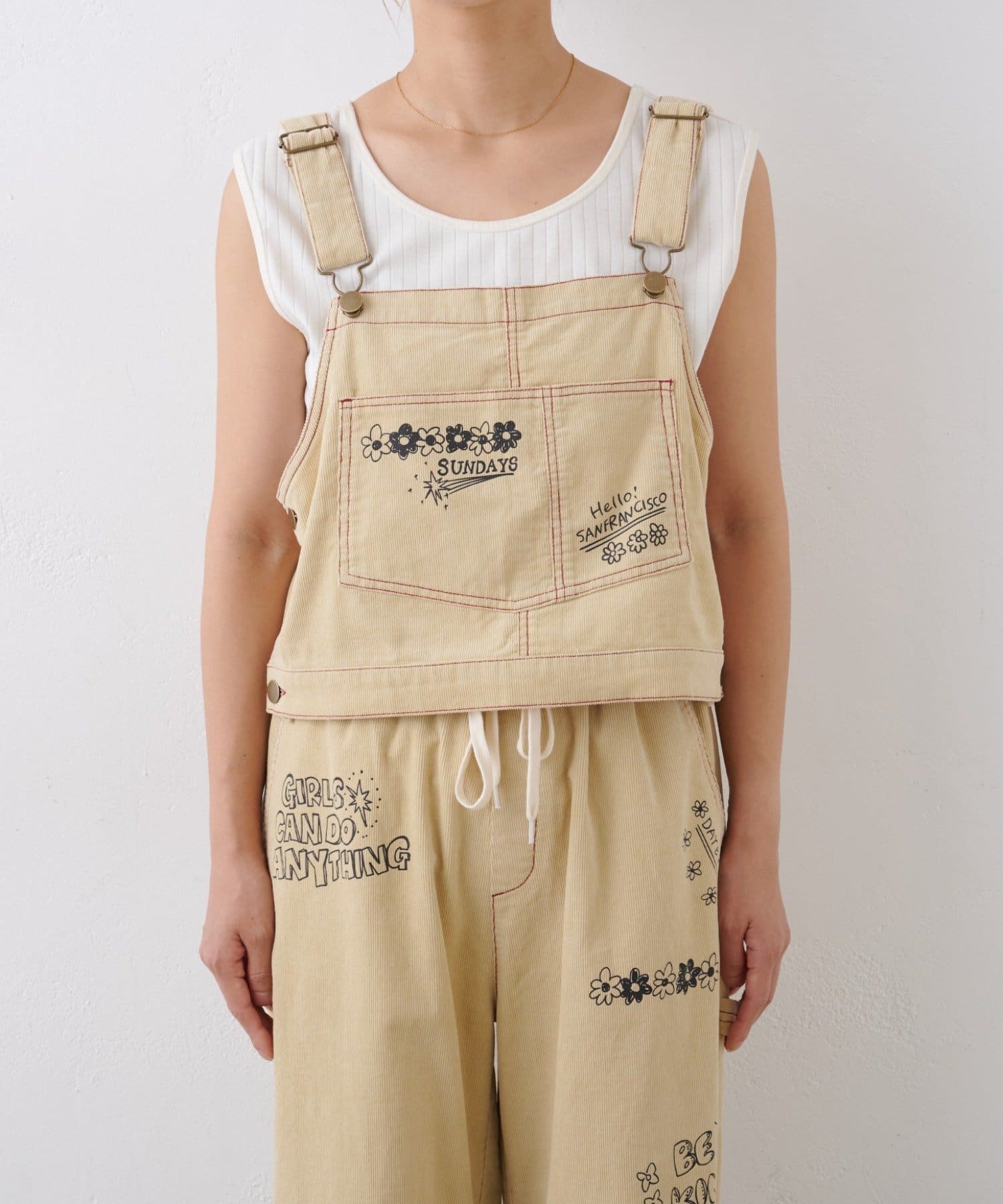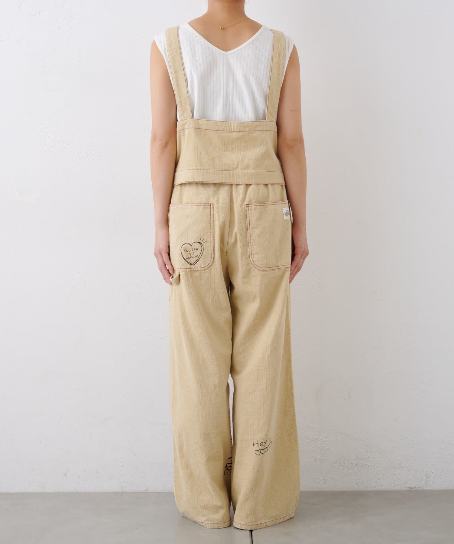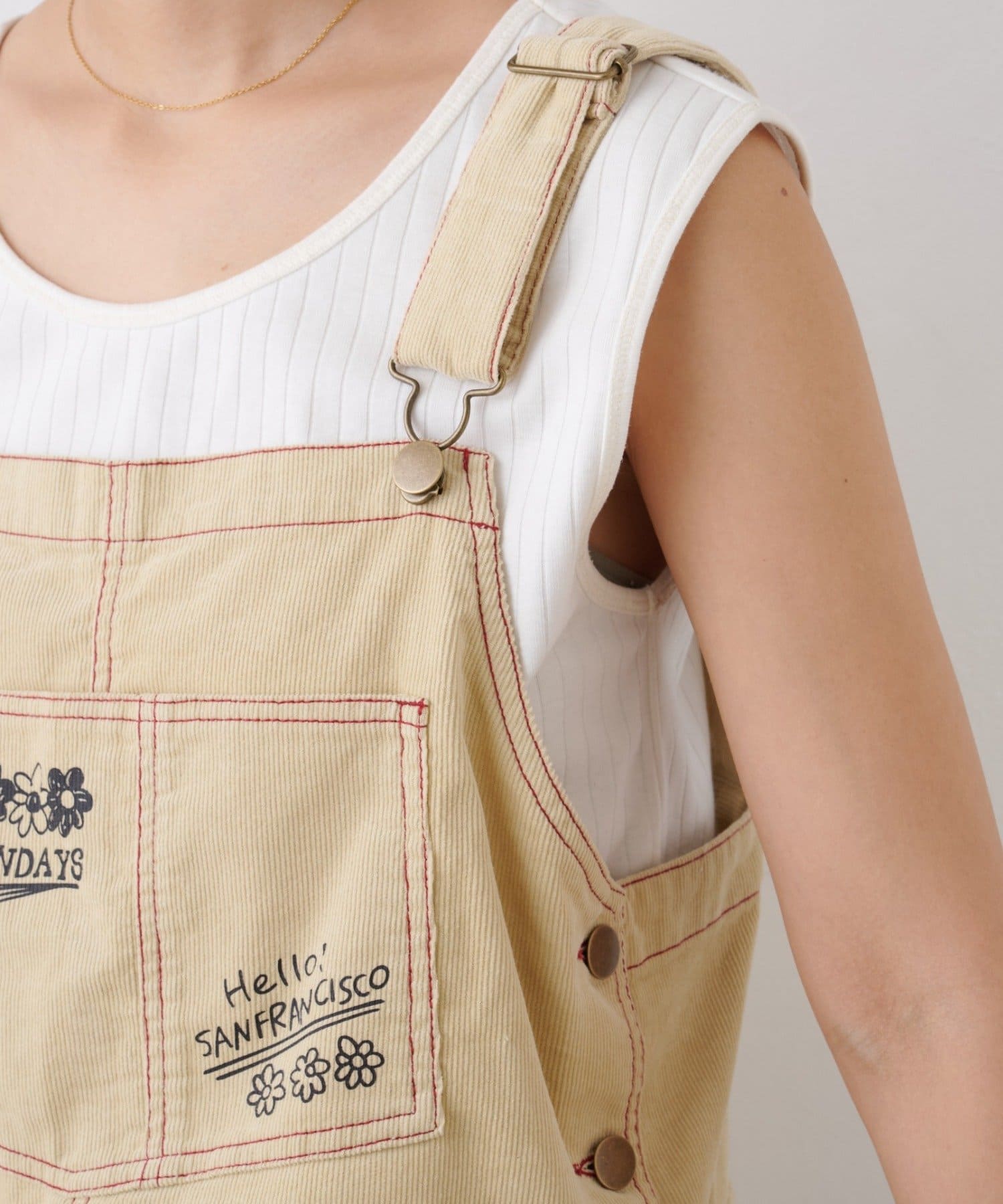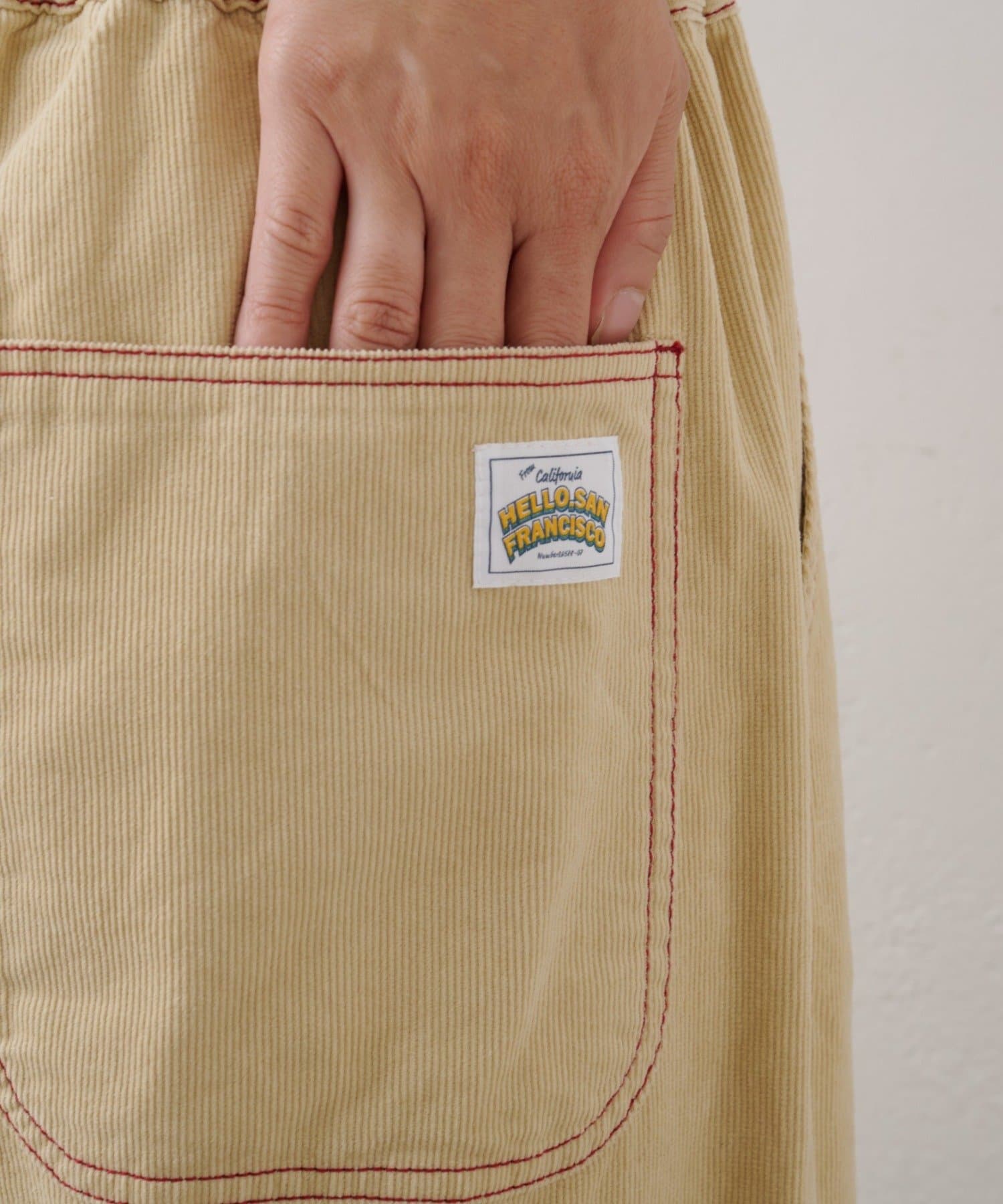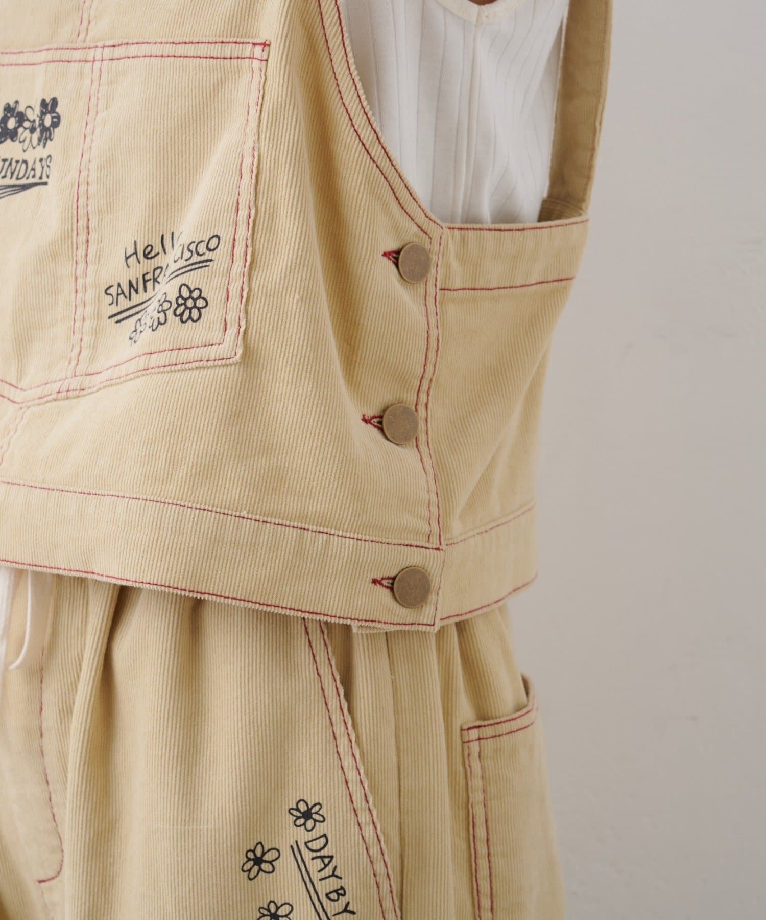 ★【HELLO.SANFRANCISCO/ハローサンフランシスコ】マルチウェイ落書きコーデュロイ配色ステッチサロペット