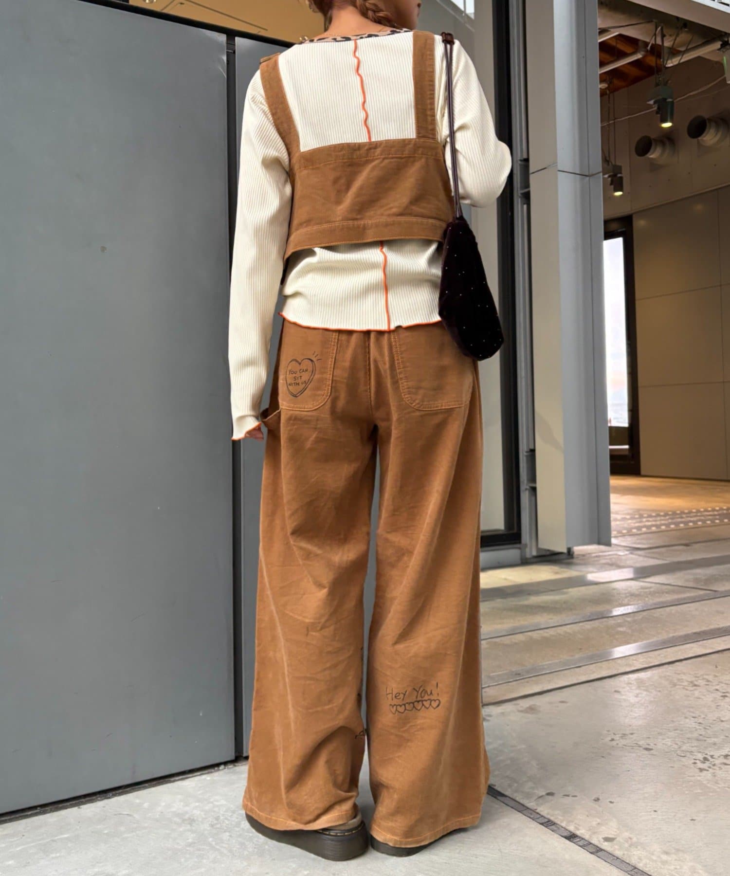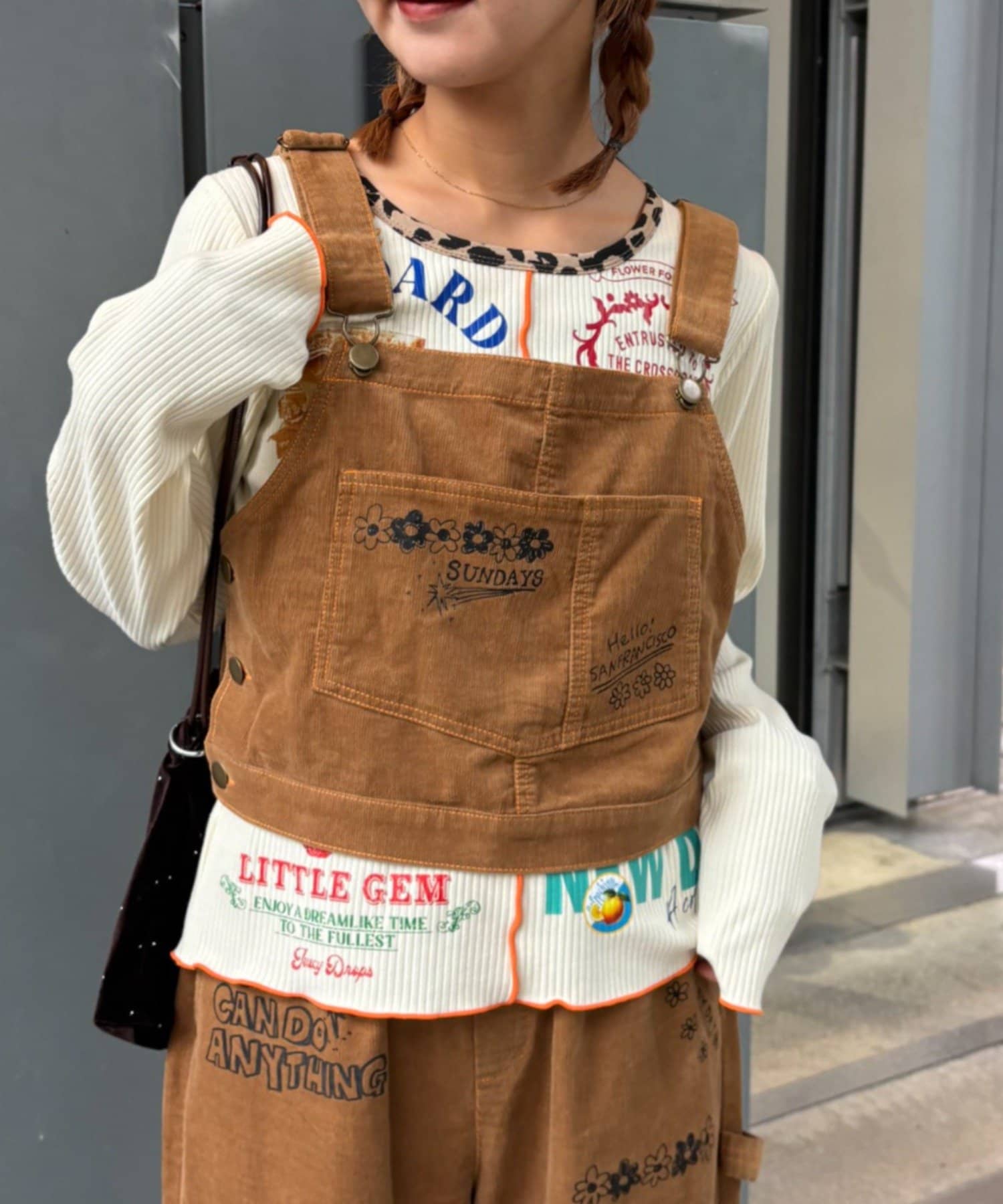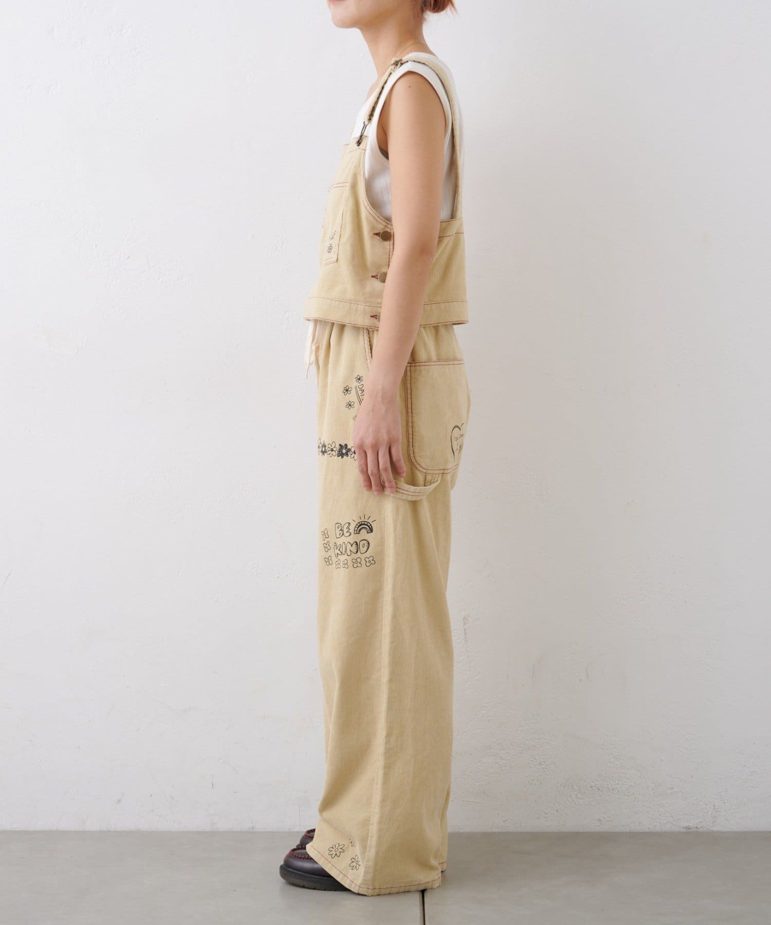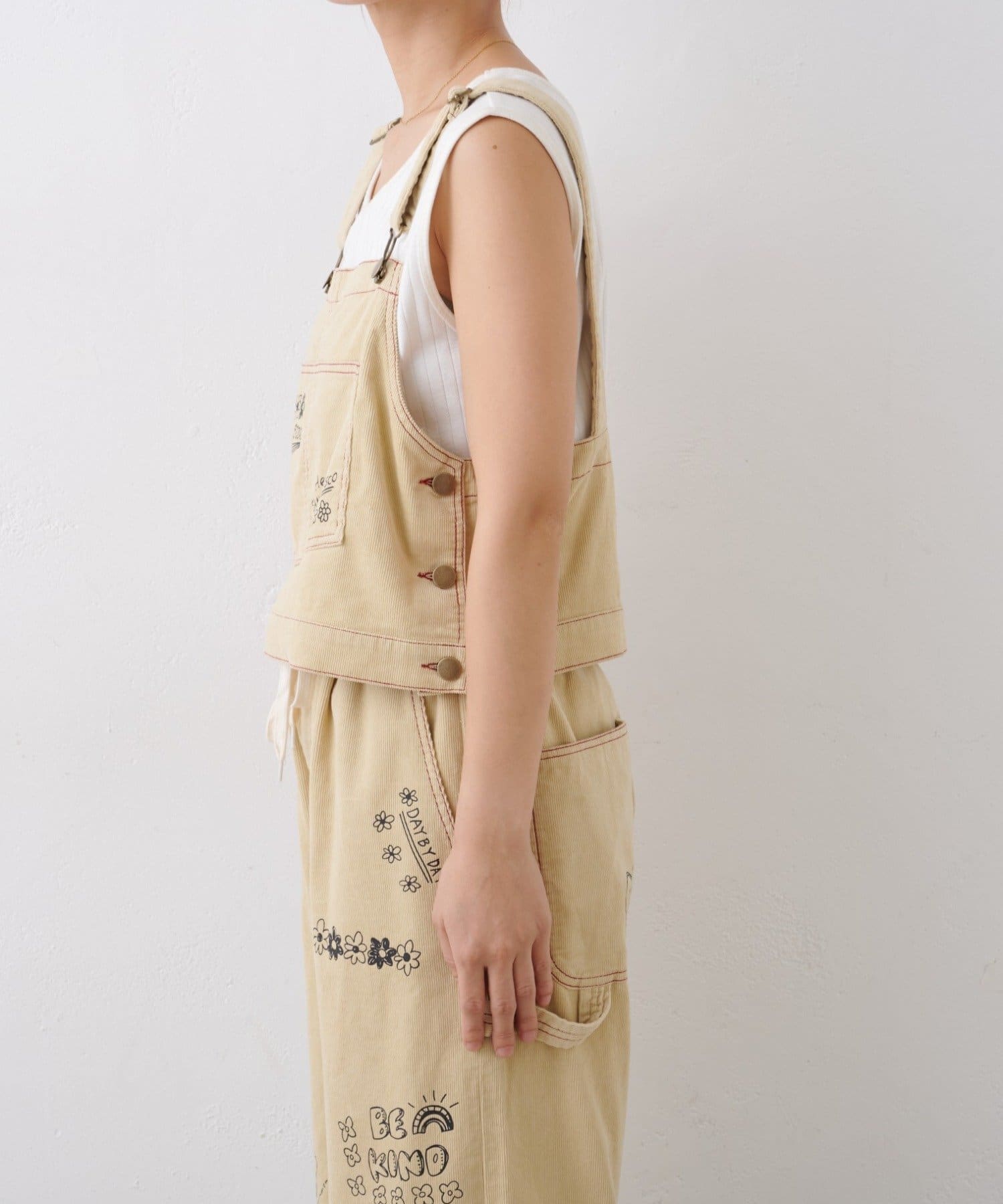 ★【HELLO.SANFRANCISCO/ハローサンフランシスコ】マルチウェイ落書きコーデュロイ配色ステッチサロペット