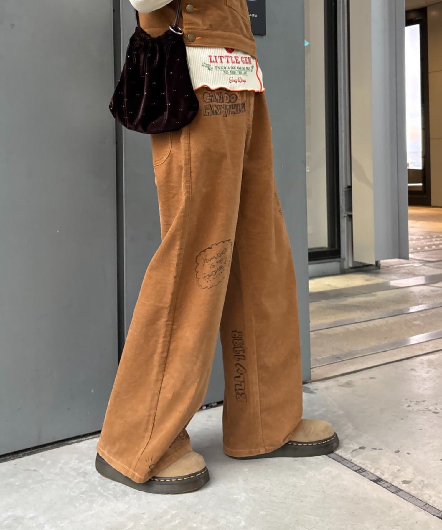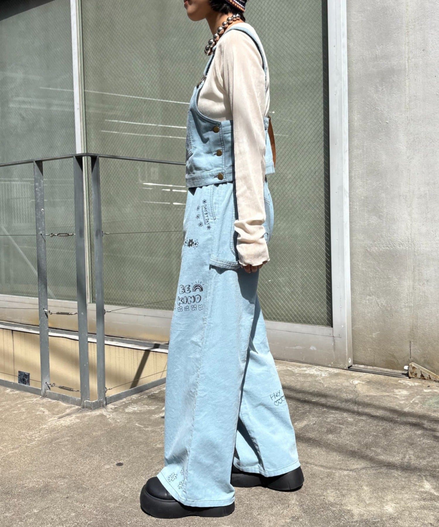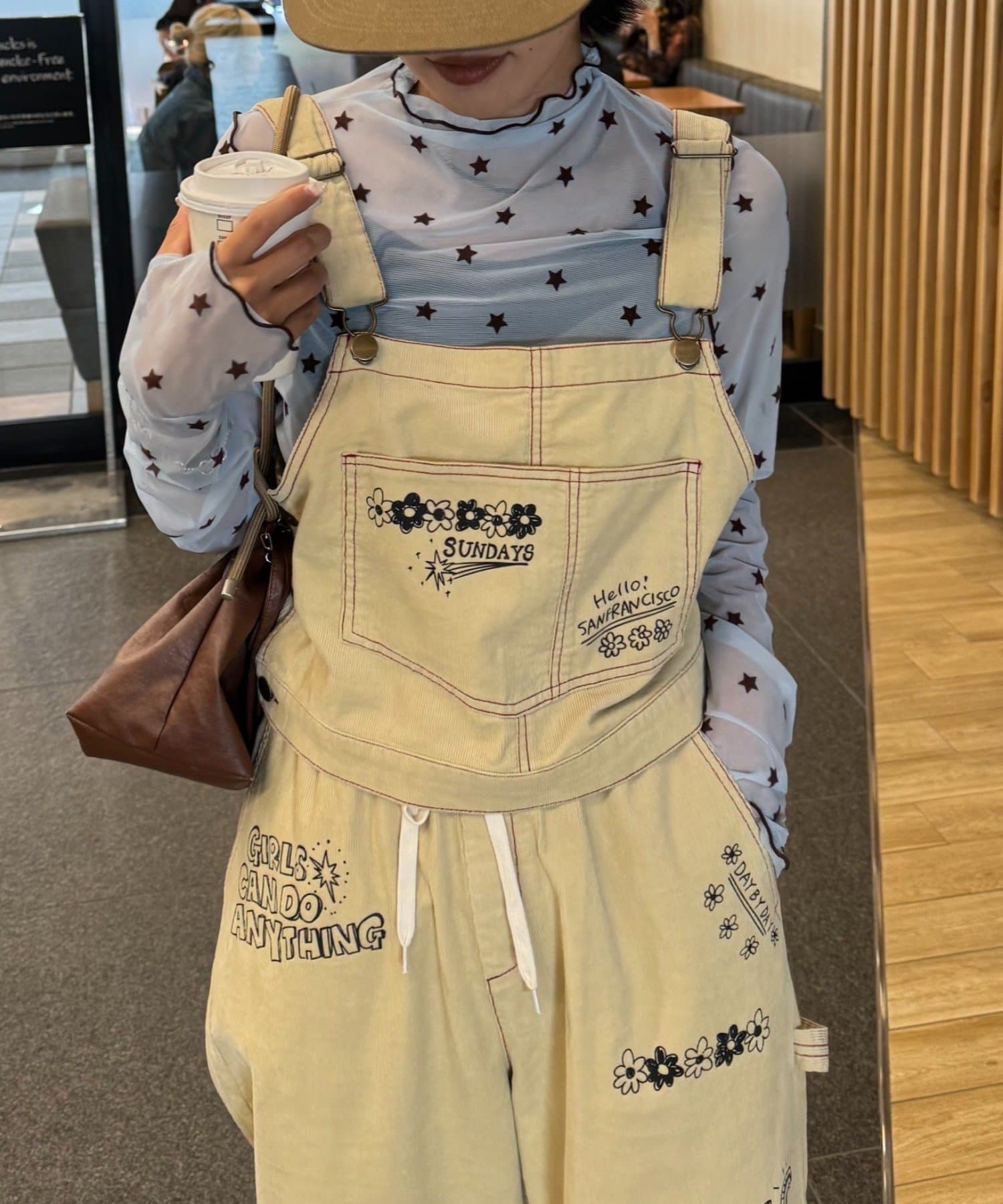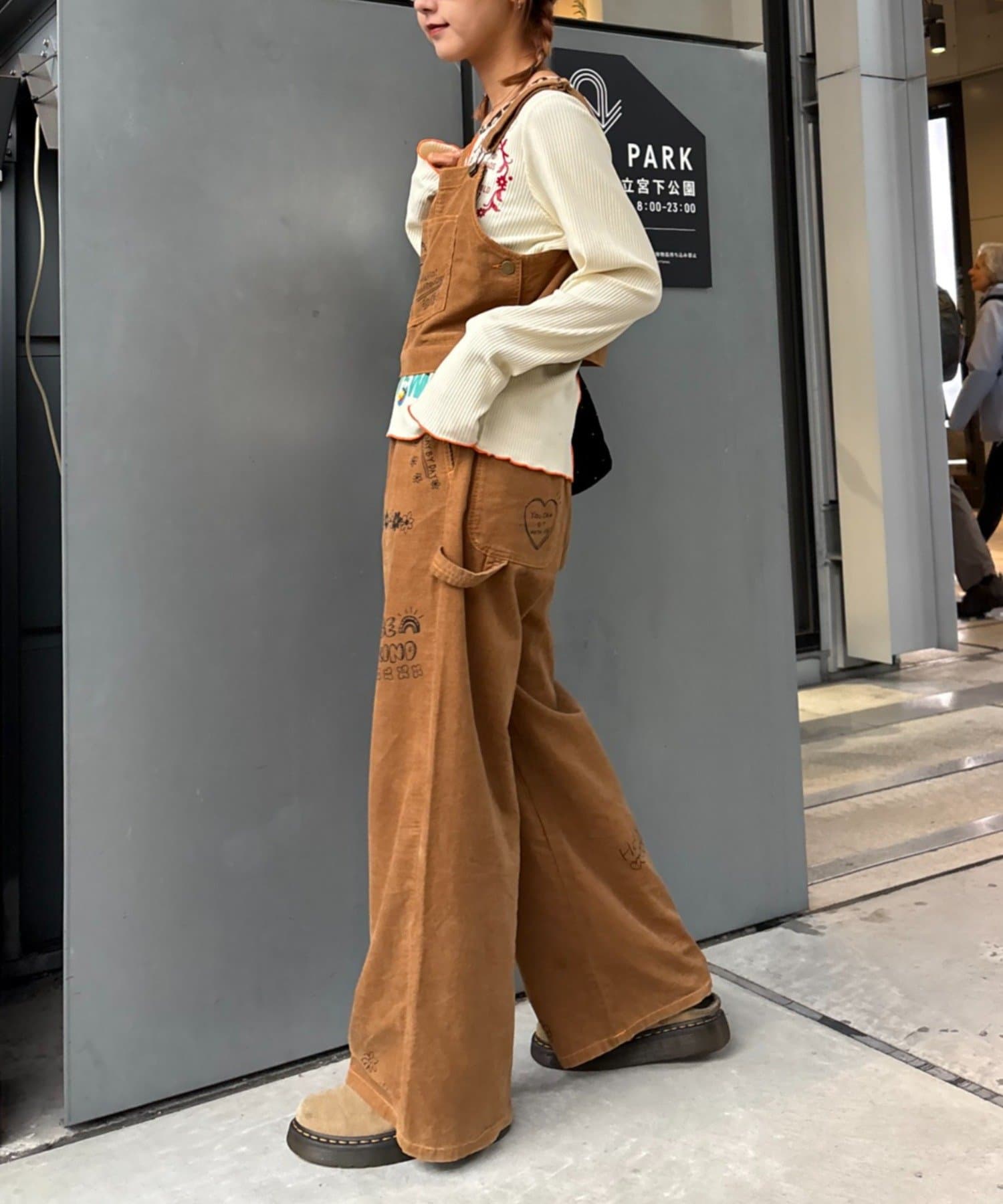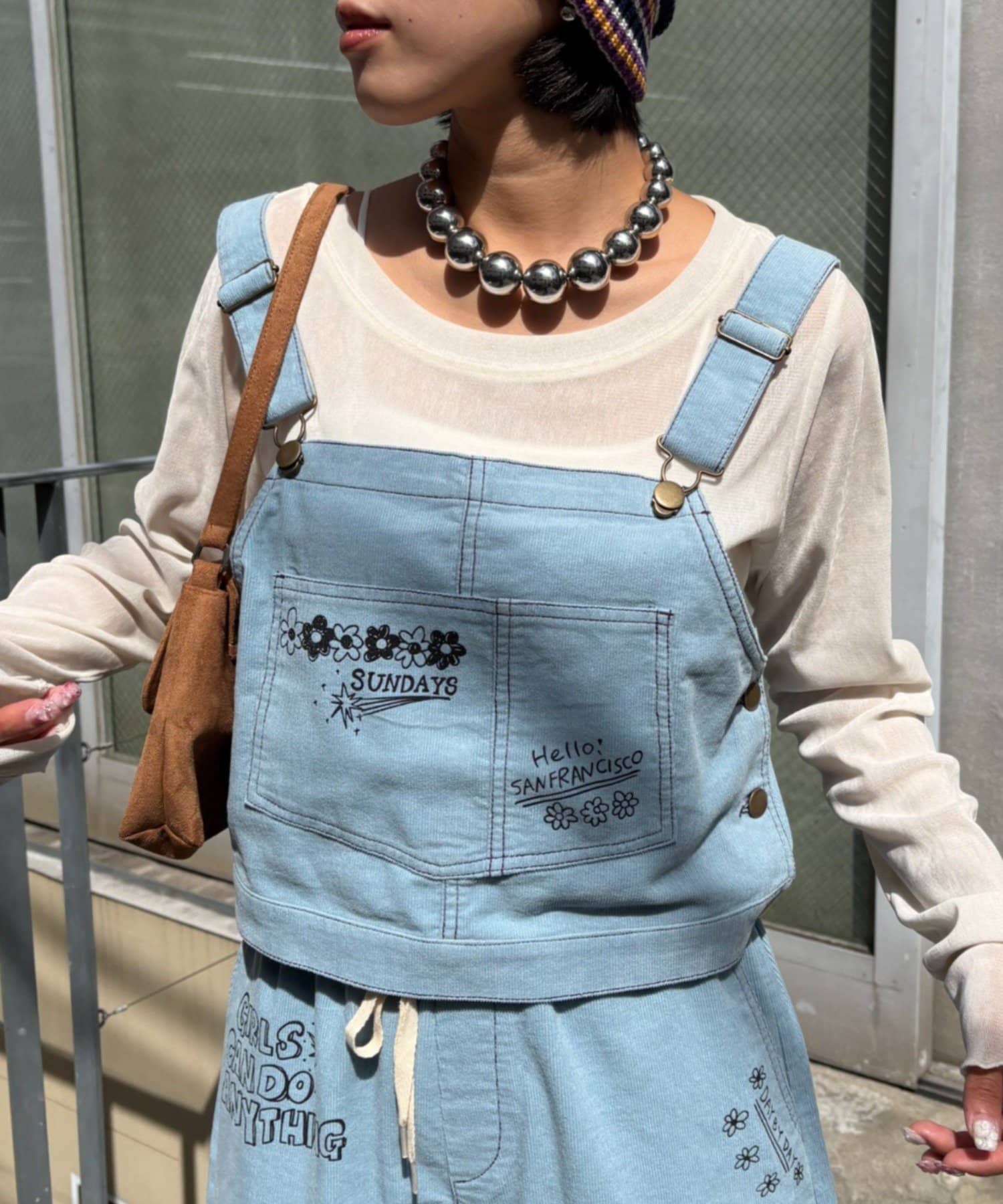 ★【HELLO.SANFRANCISCO/ハローサンフランシスコ】マルチウェイ落書きコーデュロイ配色ステッチサロペット
