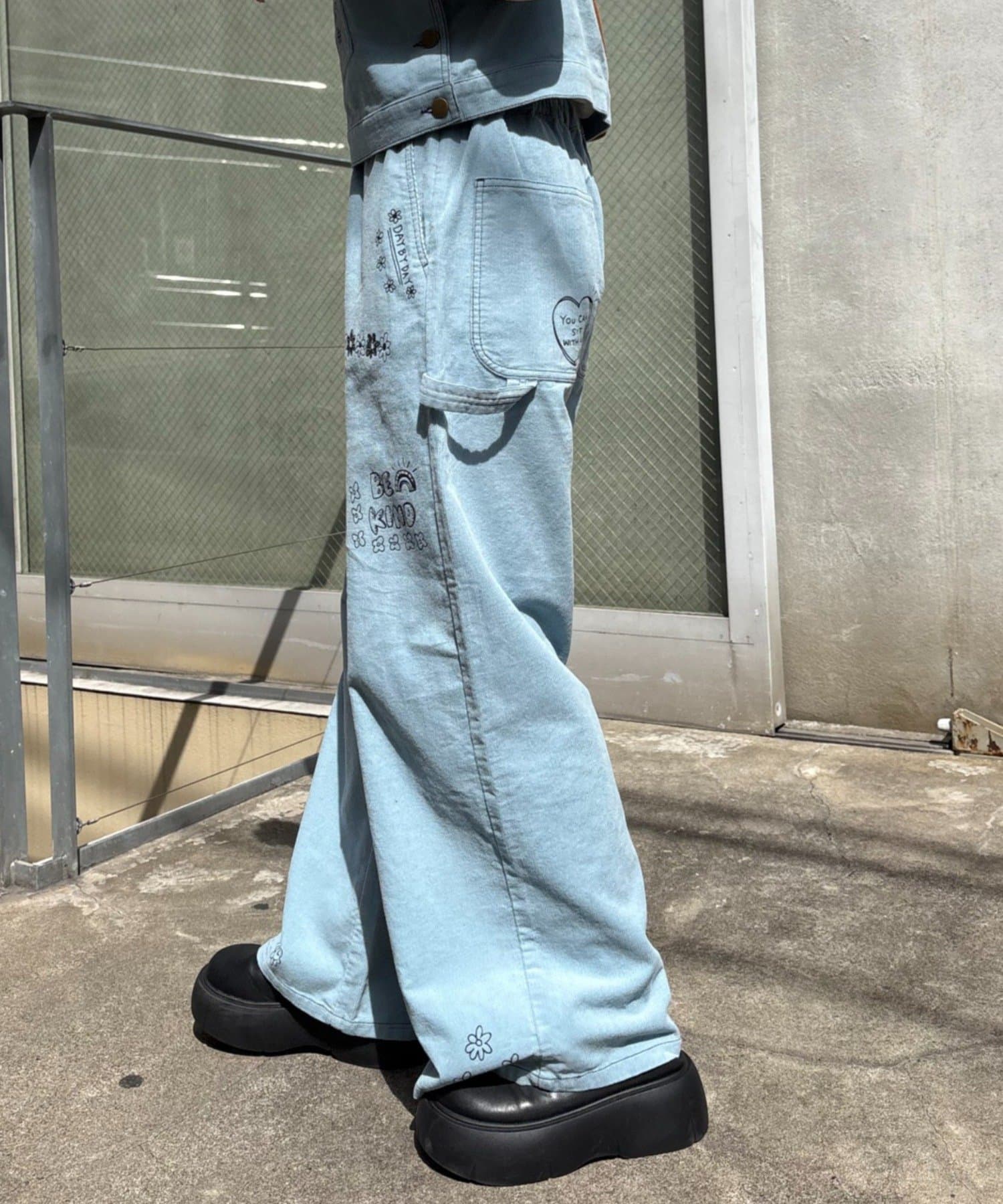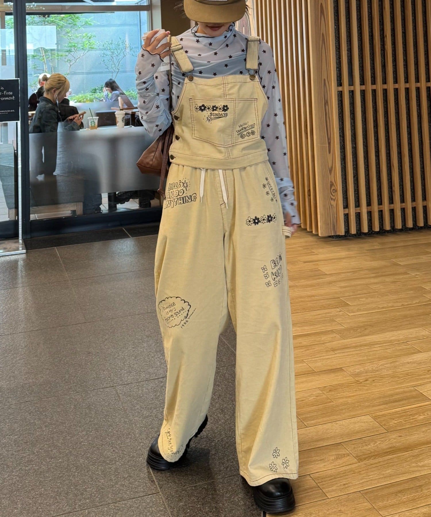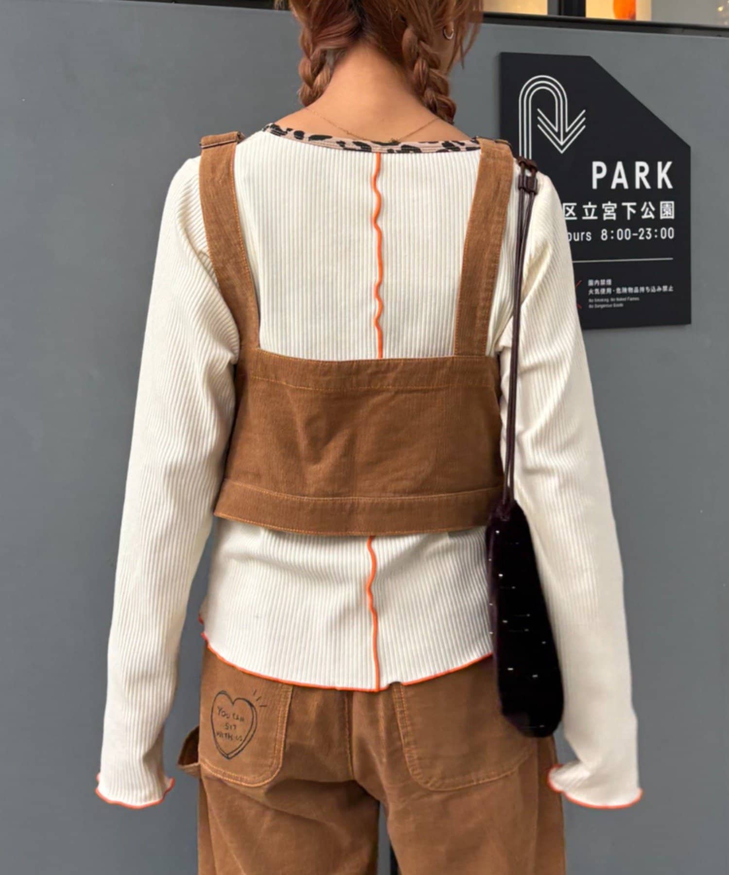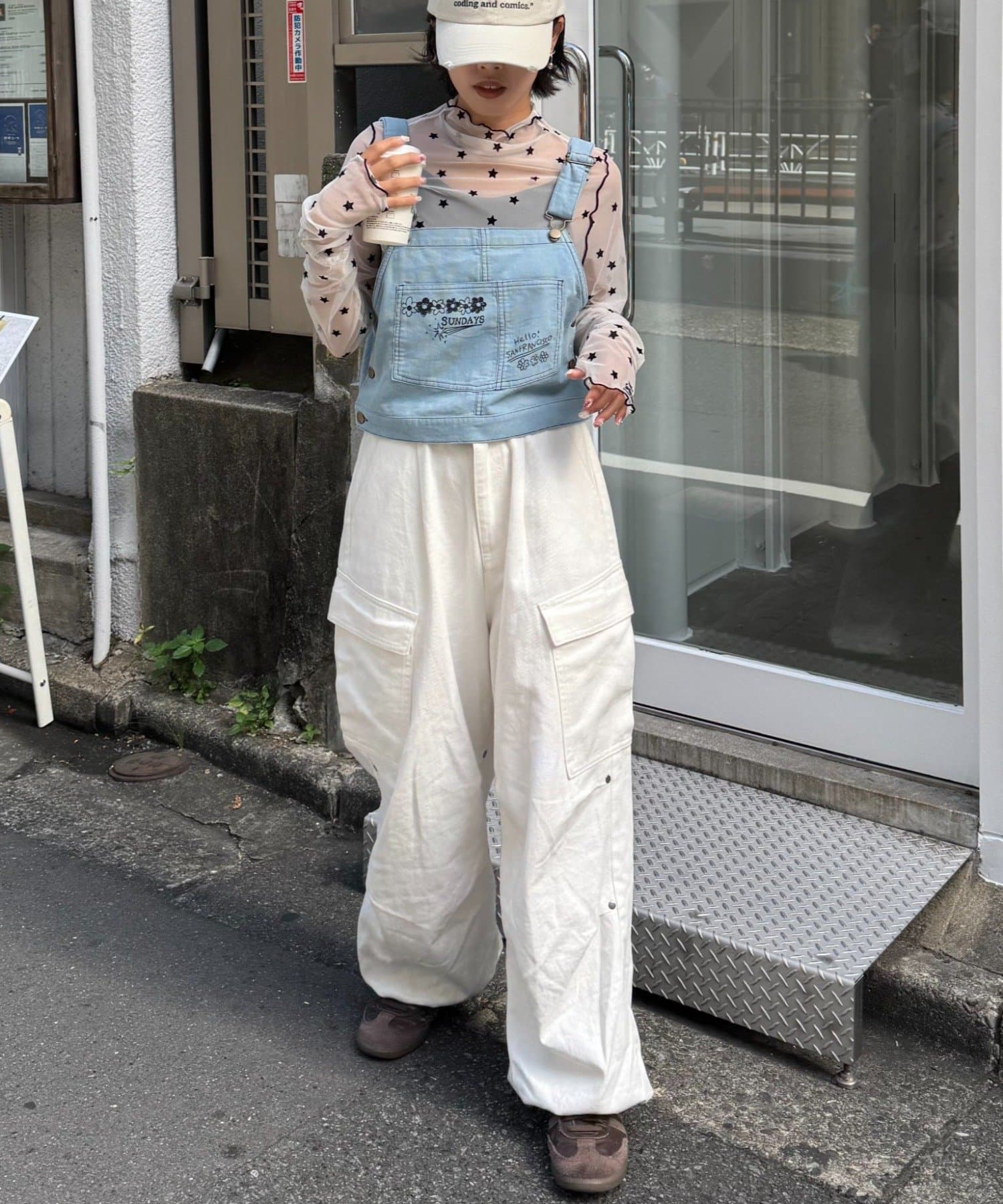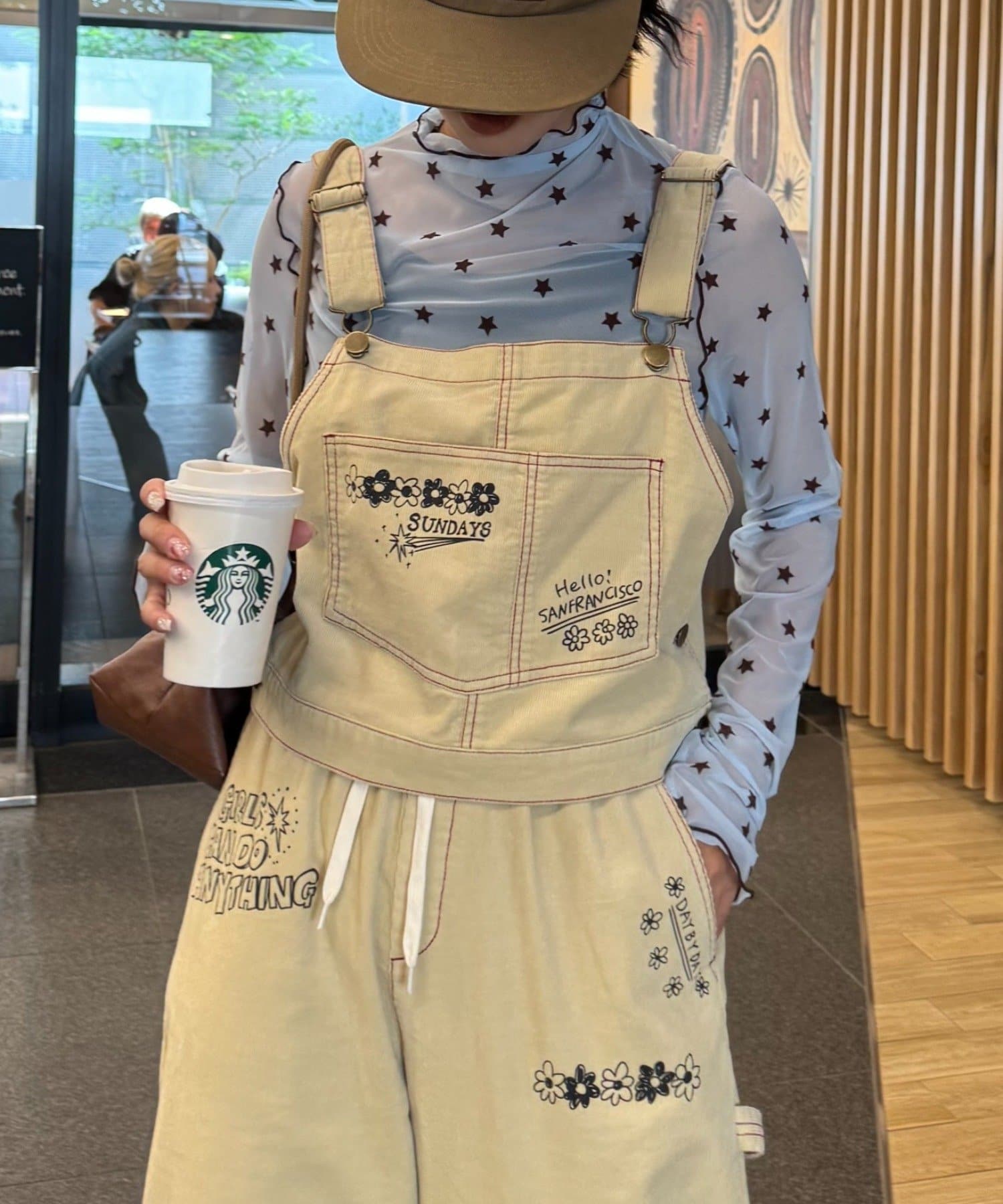 ★【HELLO.SANFRANCISCO/ハローサンフランシスコ】マルチウェイ落書きコーデュロイ配色ステッチサロペット