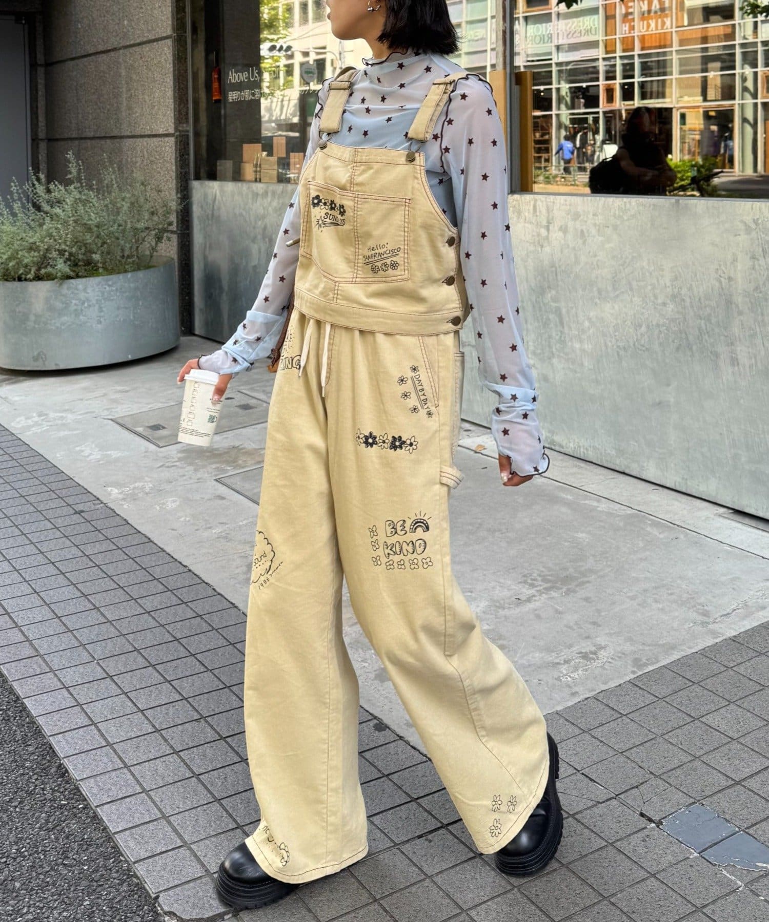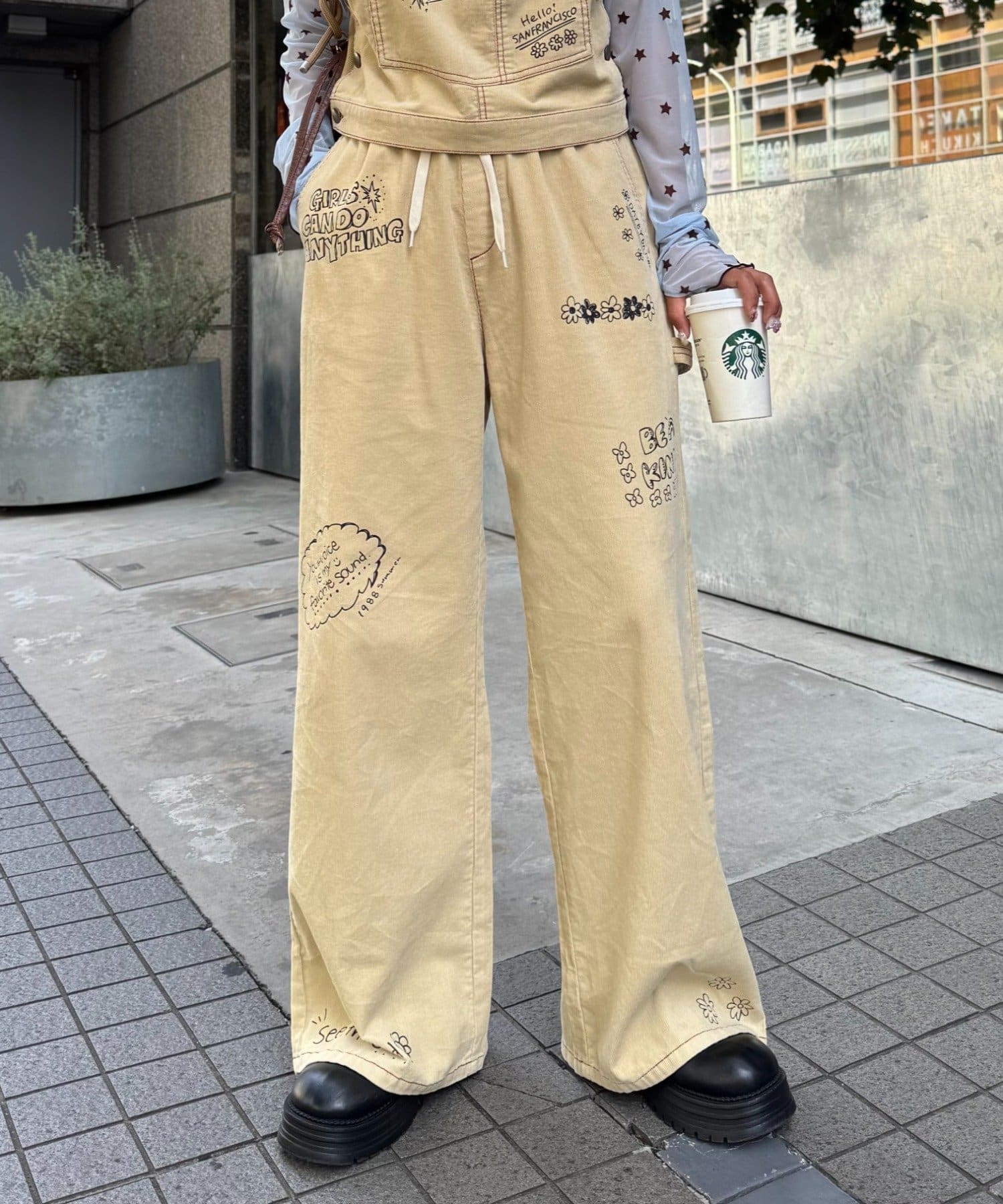 • CIAOPANIC TYPY(チャオパニックティピー) ★【HELLO.SANFRANCISCO/ハローサンフランシスコ】マルチウェイ落書きコーデュロイ配色ステッチサロペット