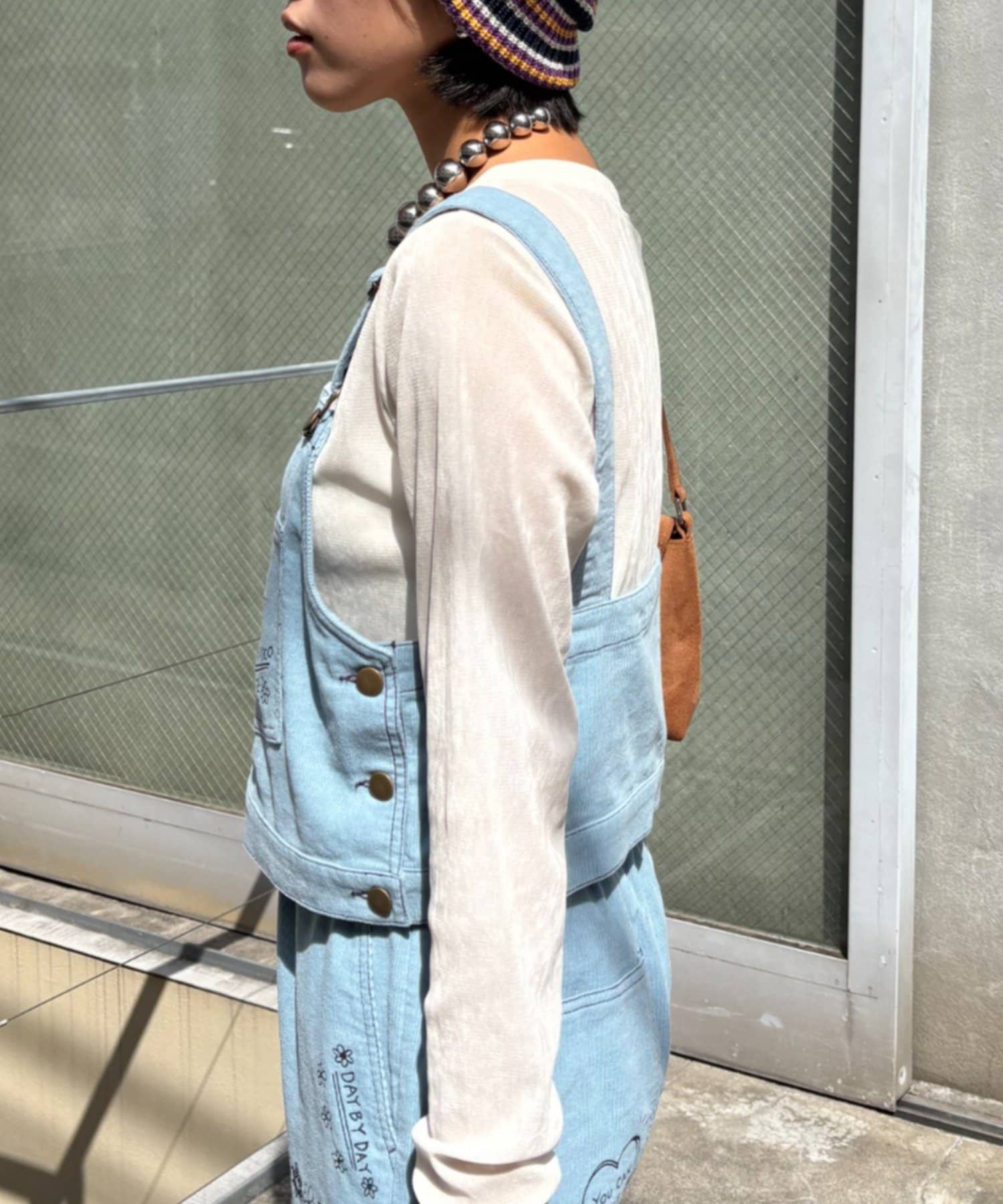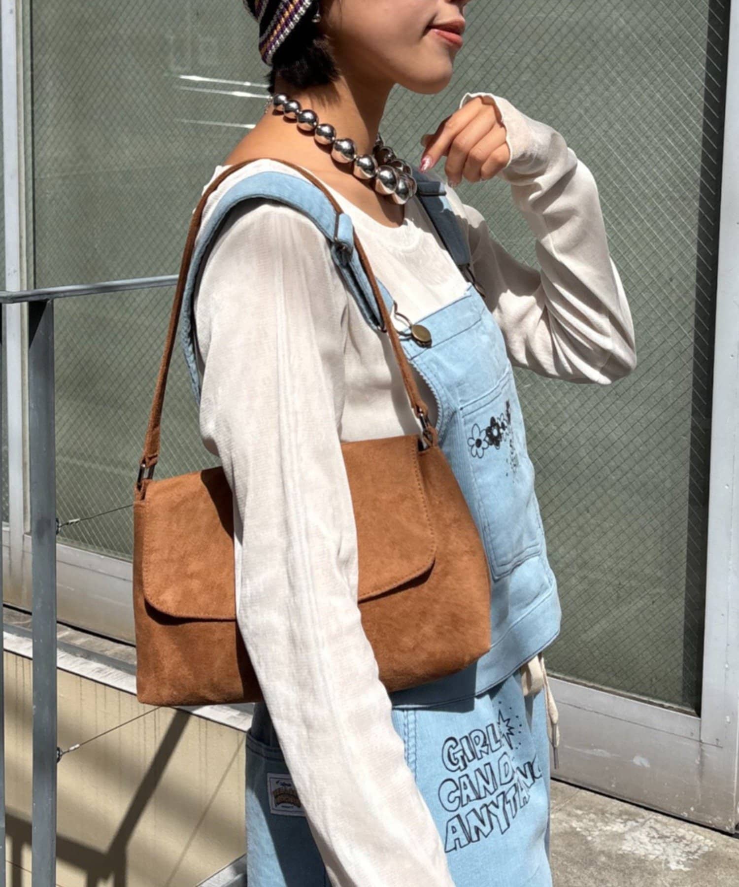 アクセサリーは、シルバー系のネックレスやピアスで、さらに個性をプラスしちゃおう!