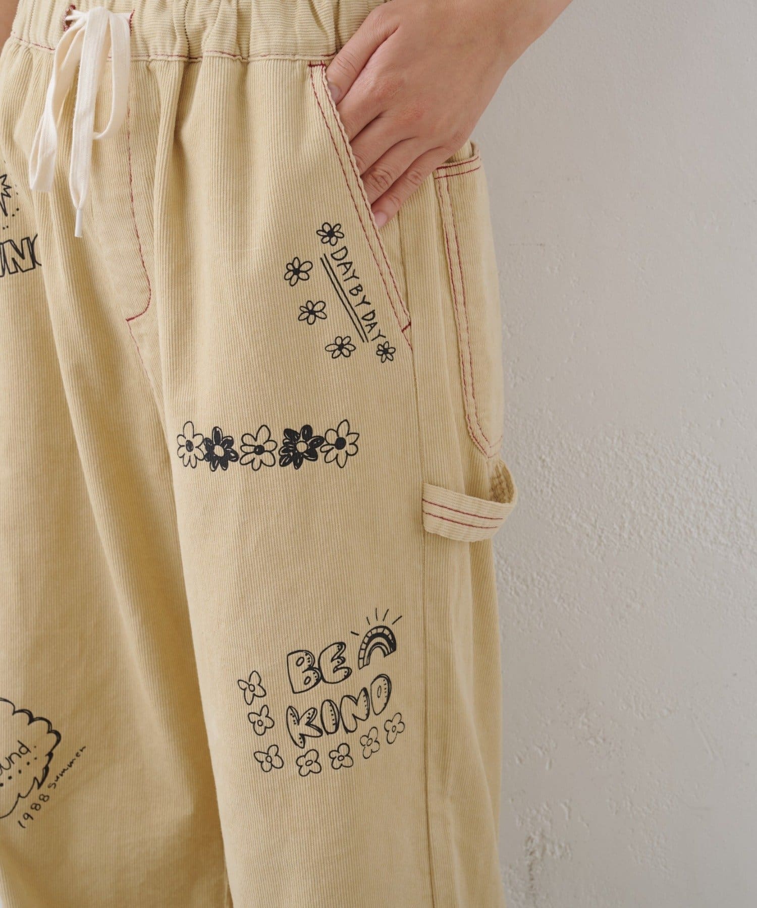 TOP > CIAOPANIC TYPY > レディース > オールインワン/サロペット > サロペット/オーバーオール > ★【HELLO.SANFRANCISCO/ハローサンフランシスコ】マルチウェイ落書きコーデュロイ配色ステッチサロペット