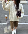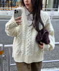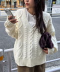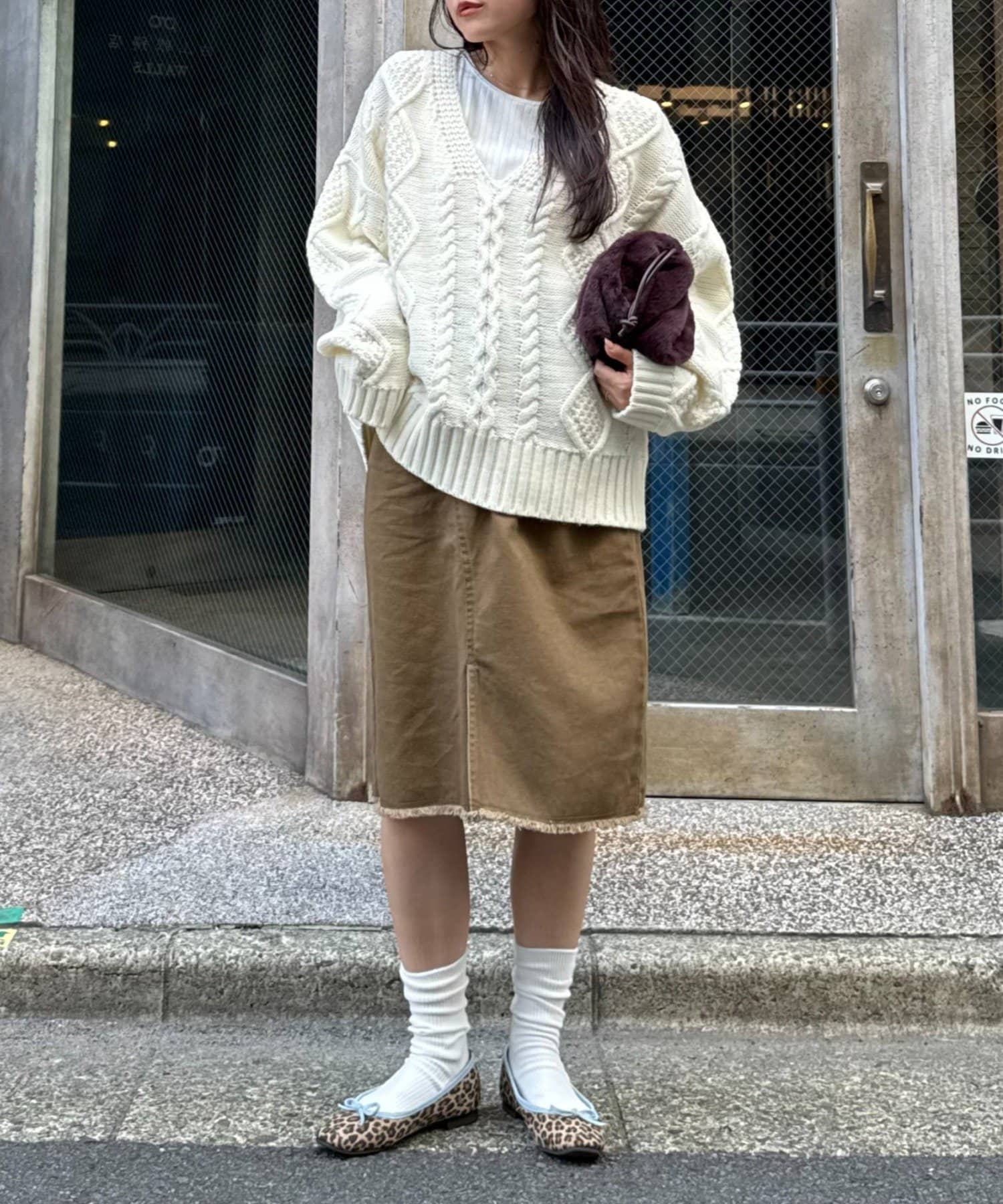 ケーブル編みのデザイン感がスタイリングに奥行きをプラス。