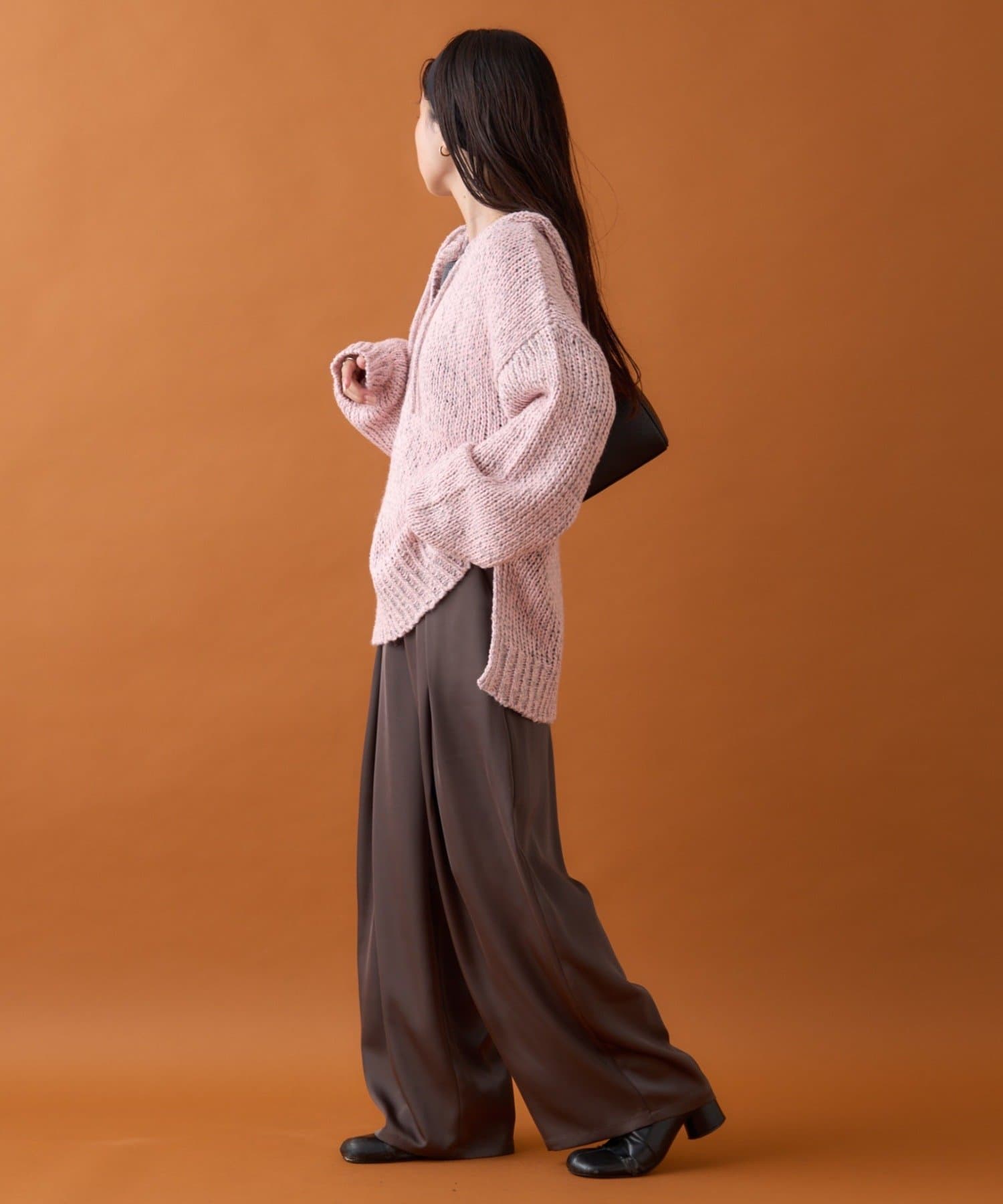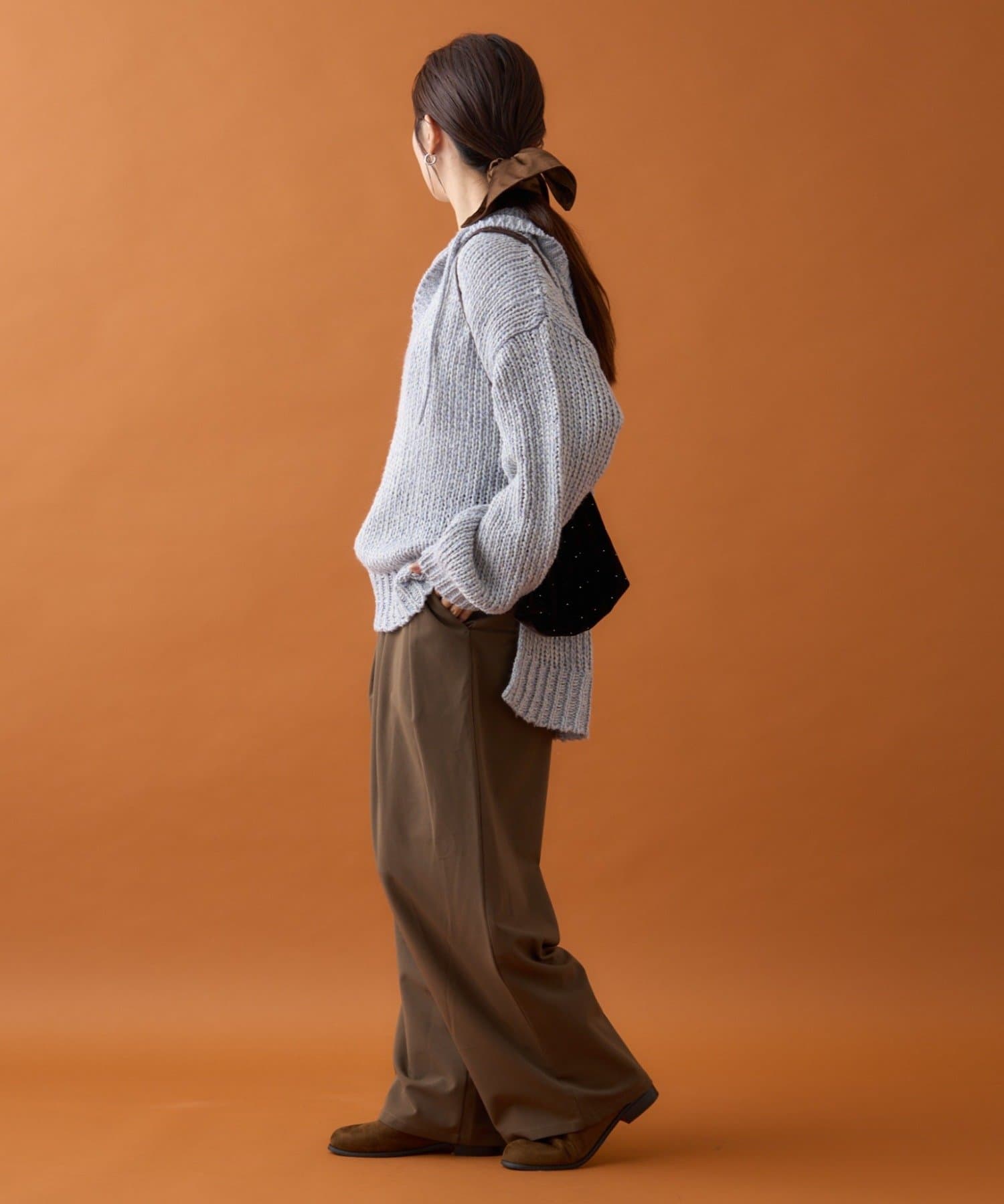 色が織り交ざり奥行ある風合いが魅力のメランジニットを使用。