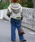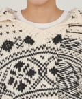 モノトーンの柄編みが、個性的ながらも着回しやすいデザインです。