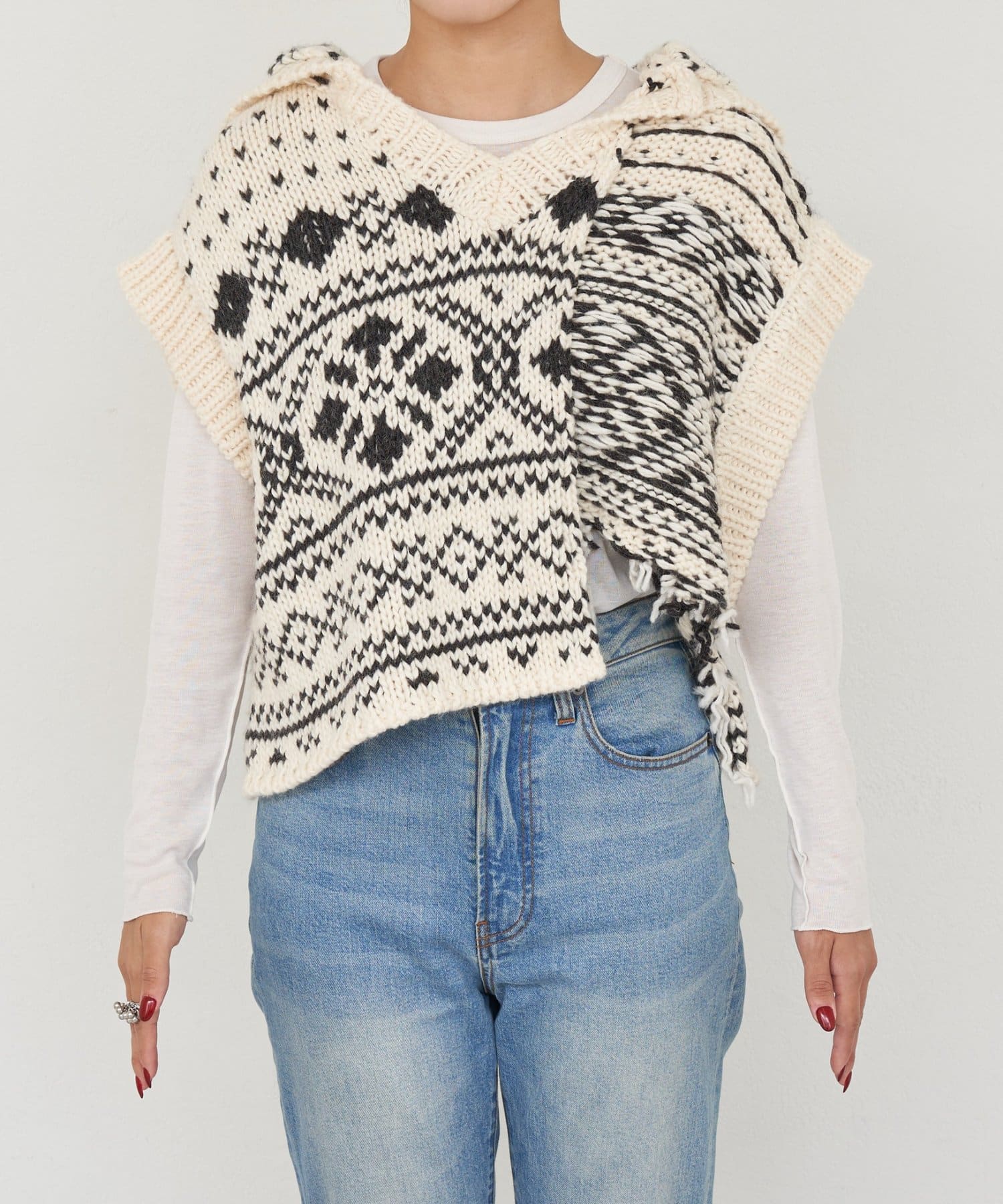 【etsinta/エシンタ】ジャガードリメイクショートフードベスト