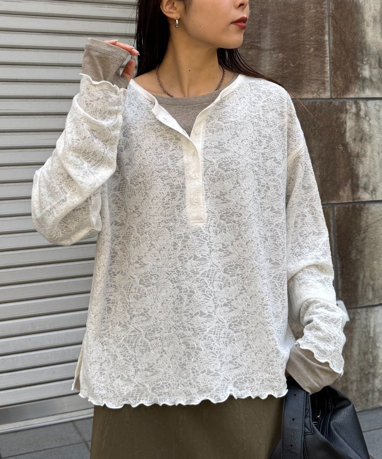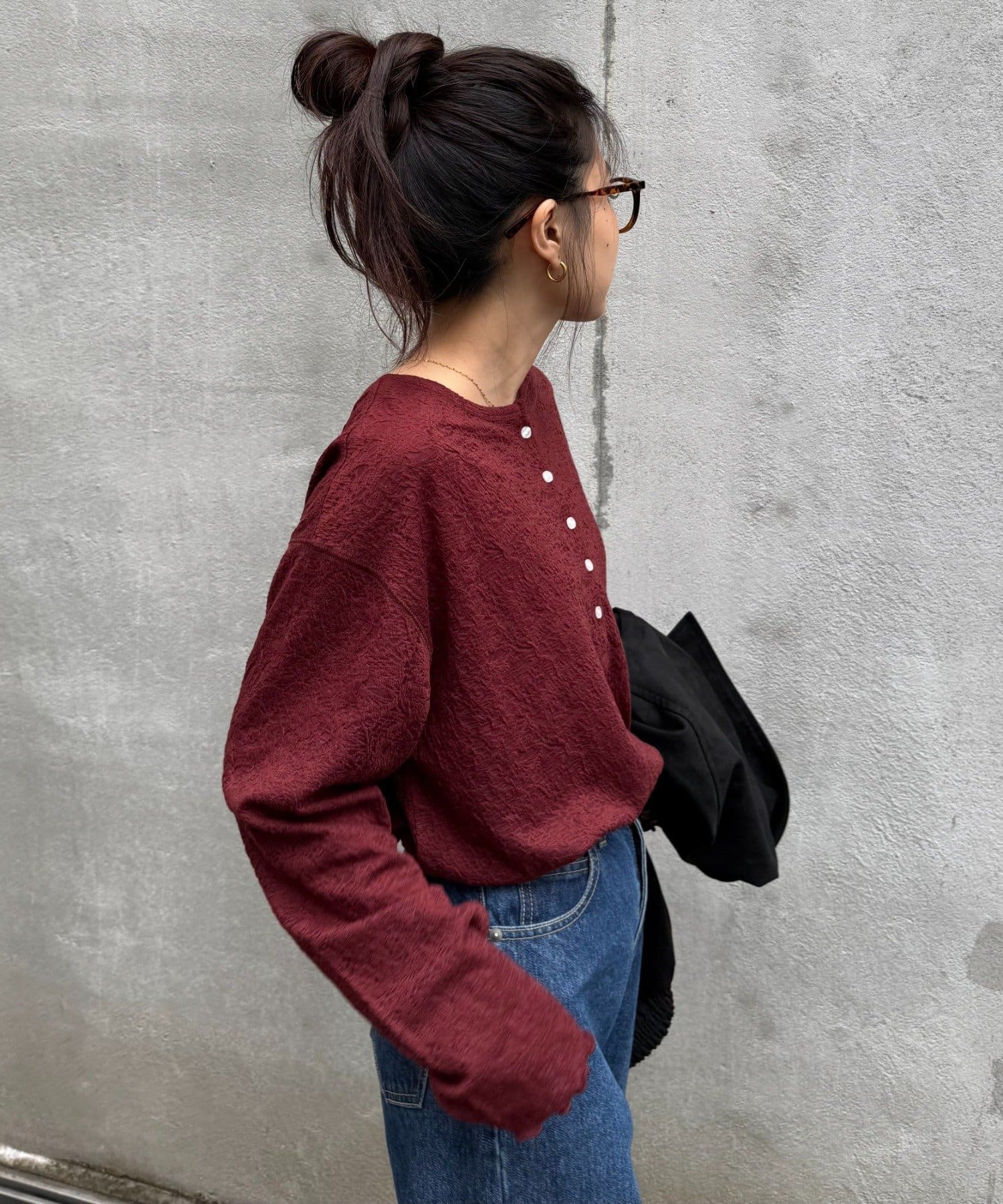 さりげない立体的な模様がお洒落なヘンリーネックTee!